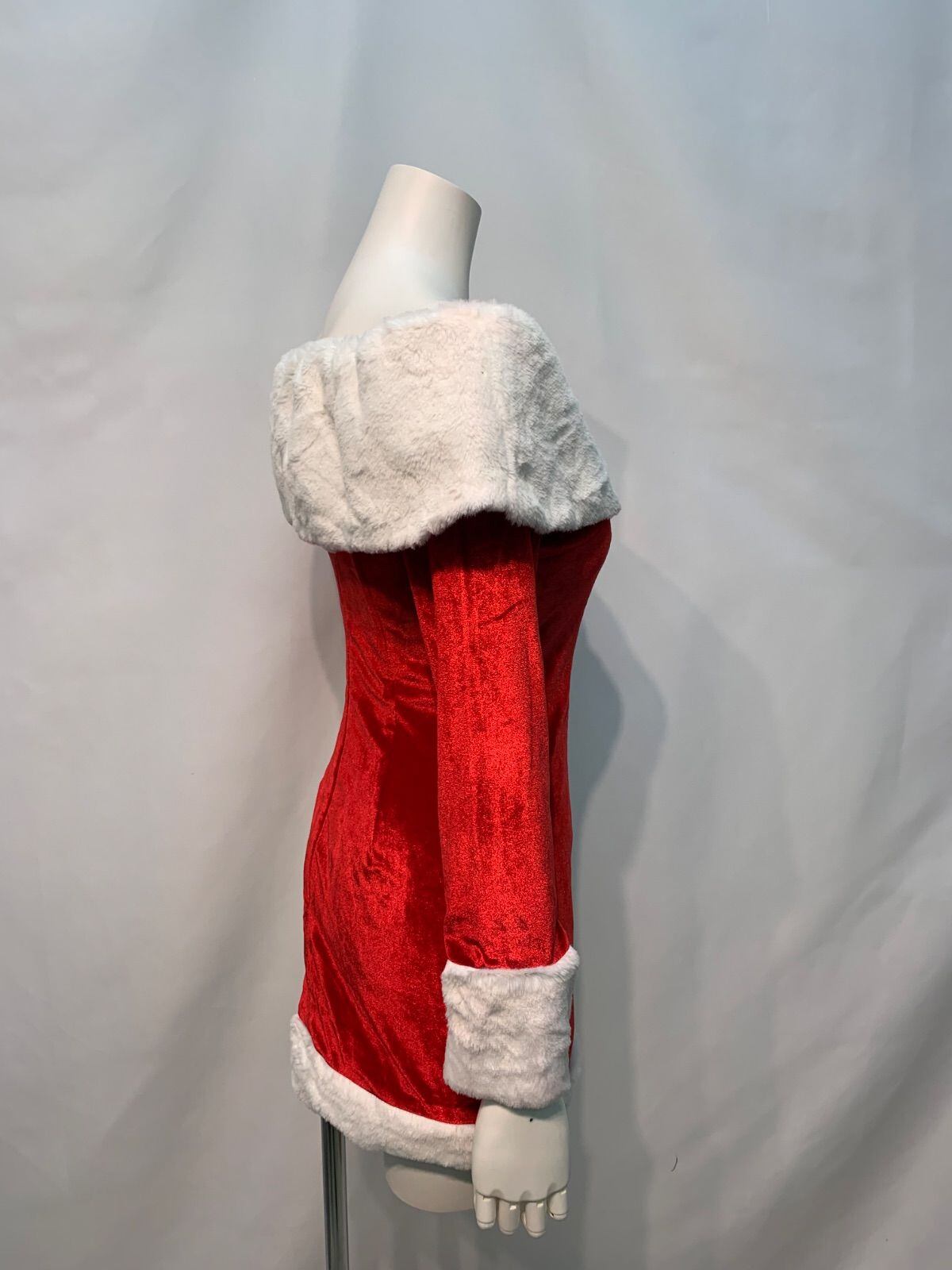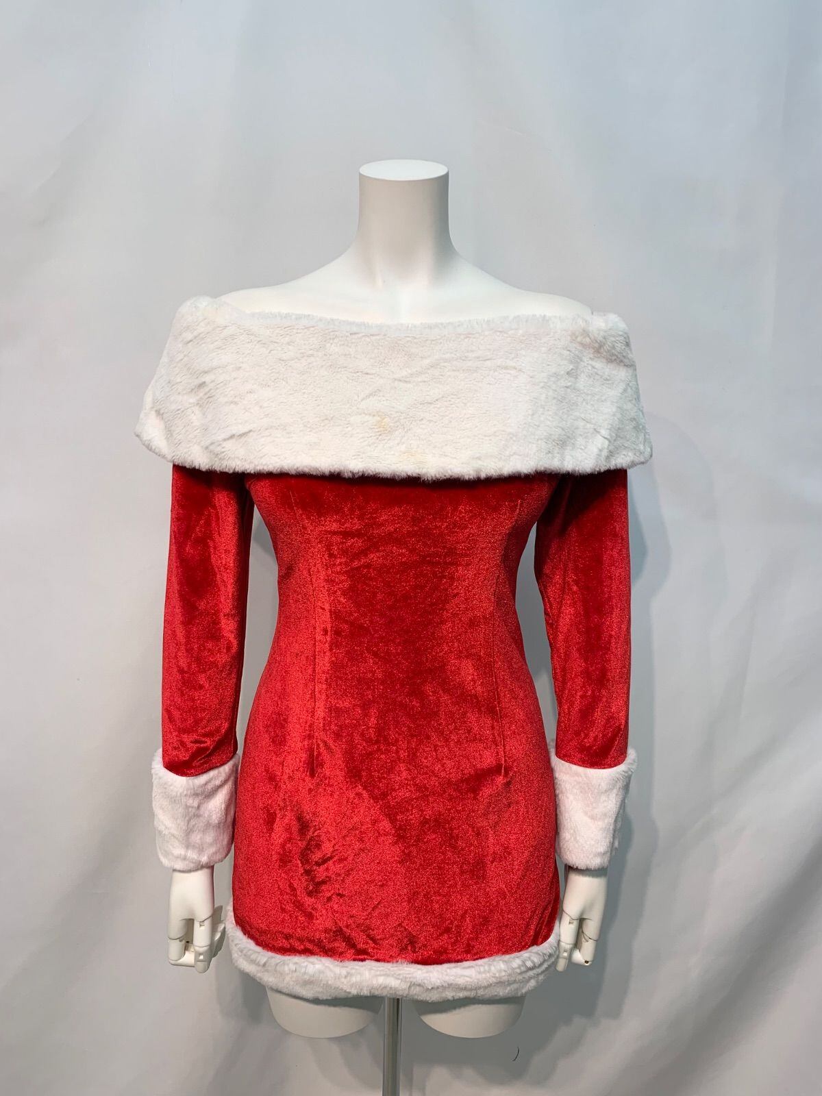 1810 VANITY ME バニティーミー キャバクラ ドレス サンタコス ファー タイト ミニ オフショル イベント 伸縮性 キャバドレスM
