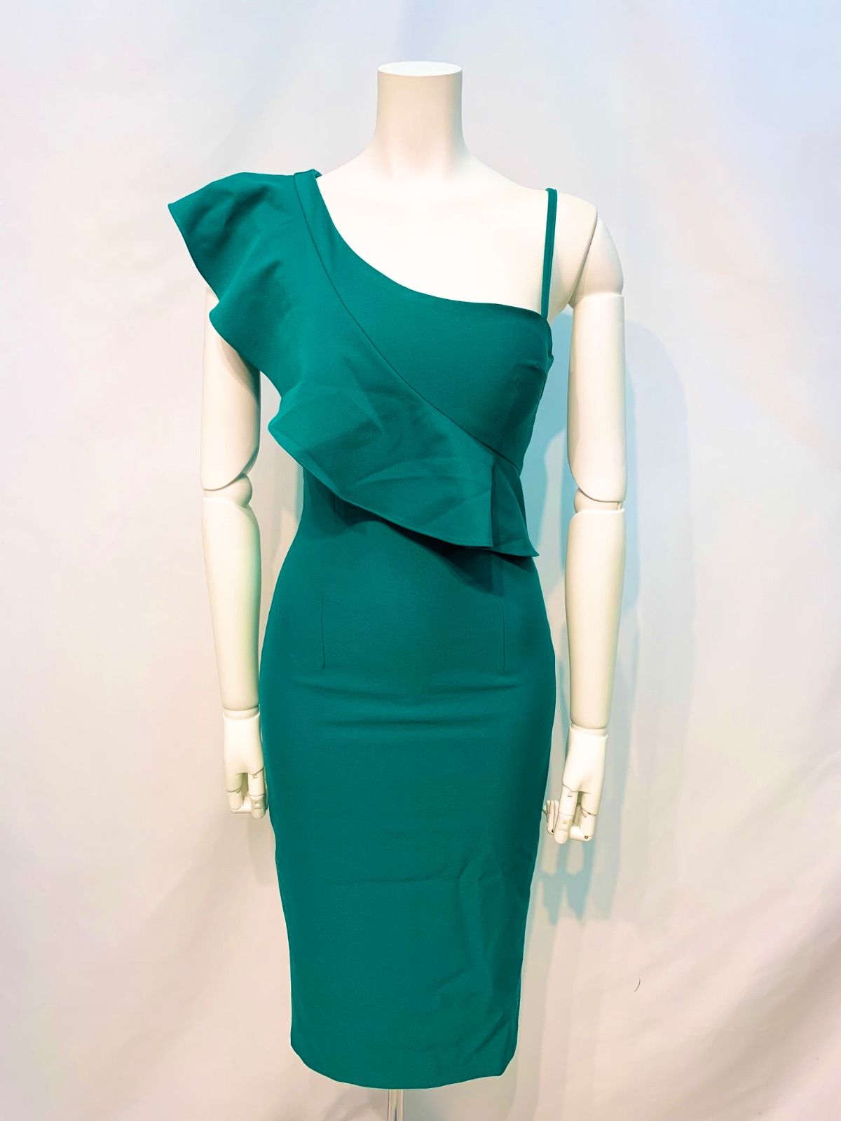 1835 タグ付き rinfarre リンファーレ キャバクラ ドレス フリル ミディ 伸縮性 シンプル キャバドレス S