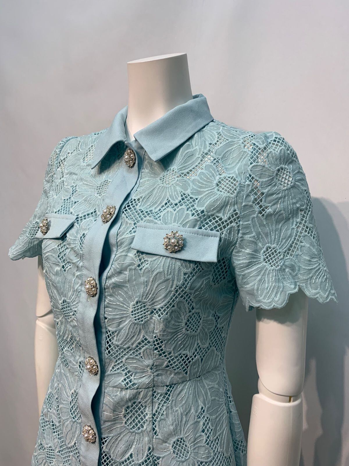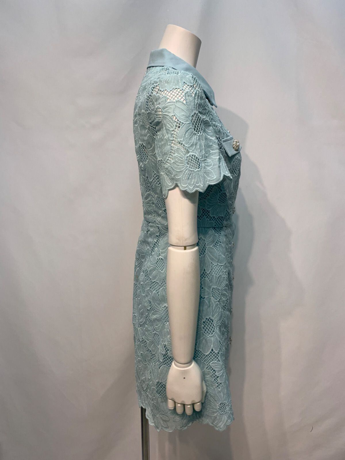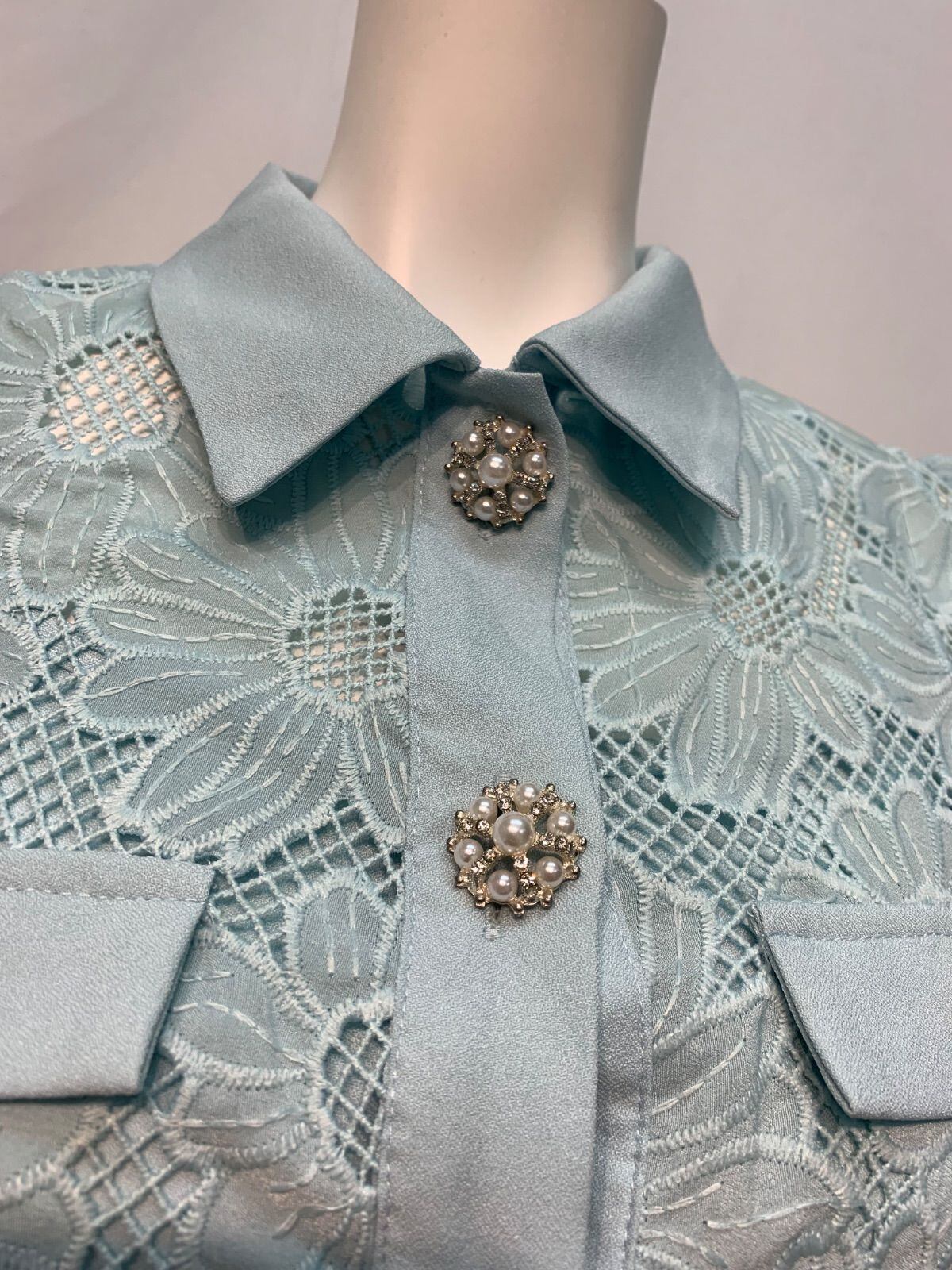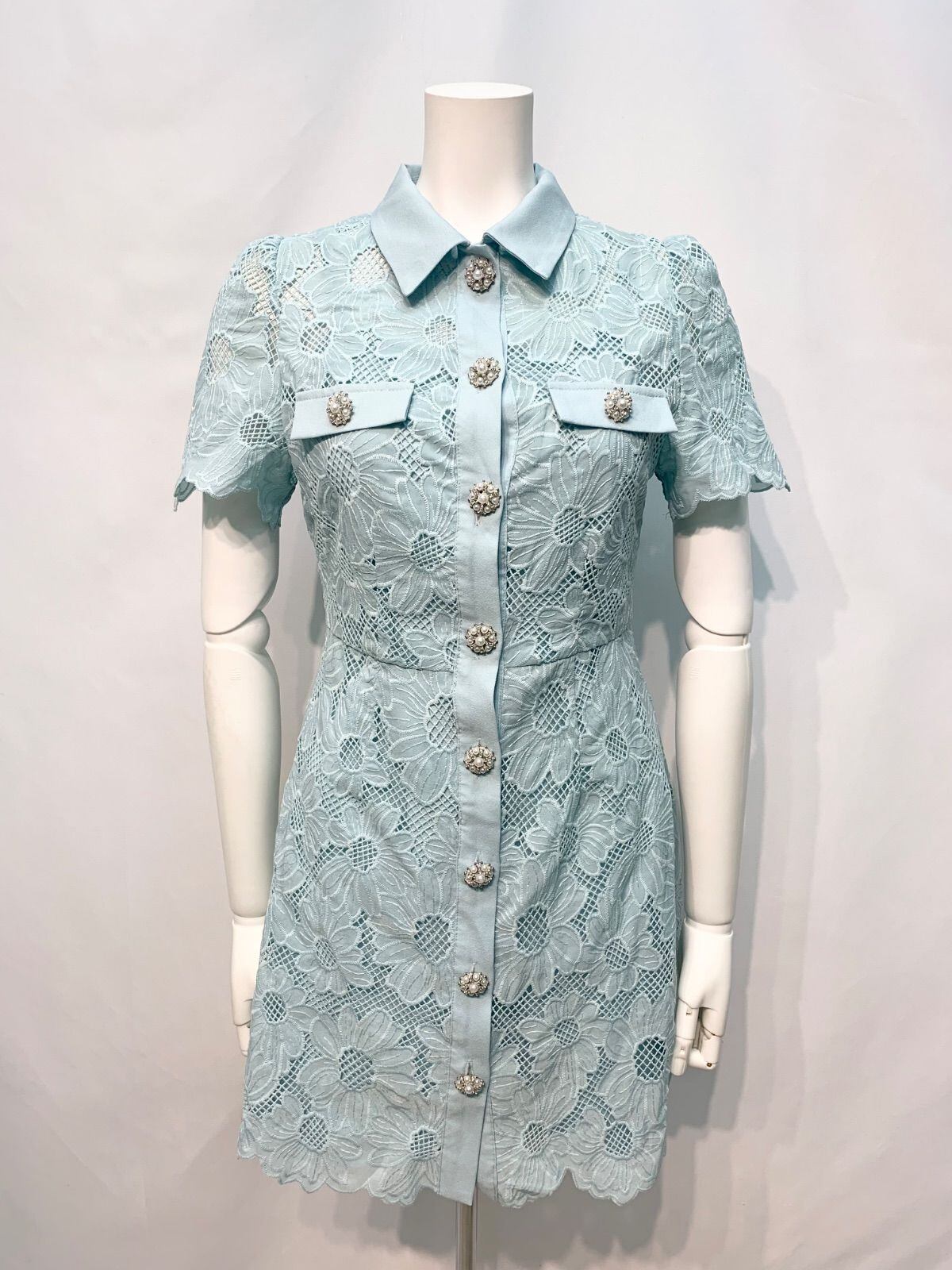 1838 SATUDAYCLUB サタデークラブ キャバクラ ドレス フラワー レース シャツワンピース ビジューボタン キャバドレス XXS