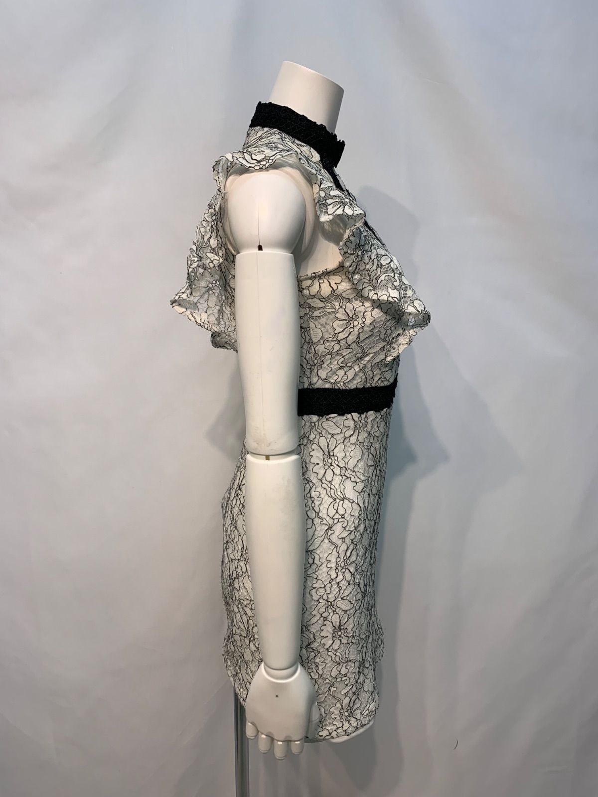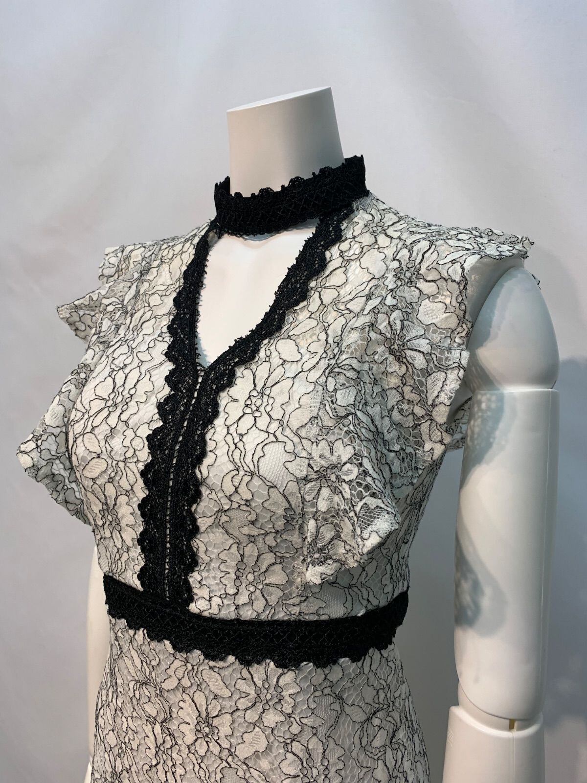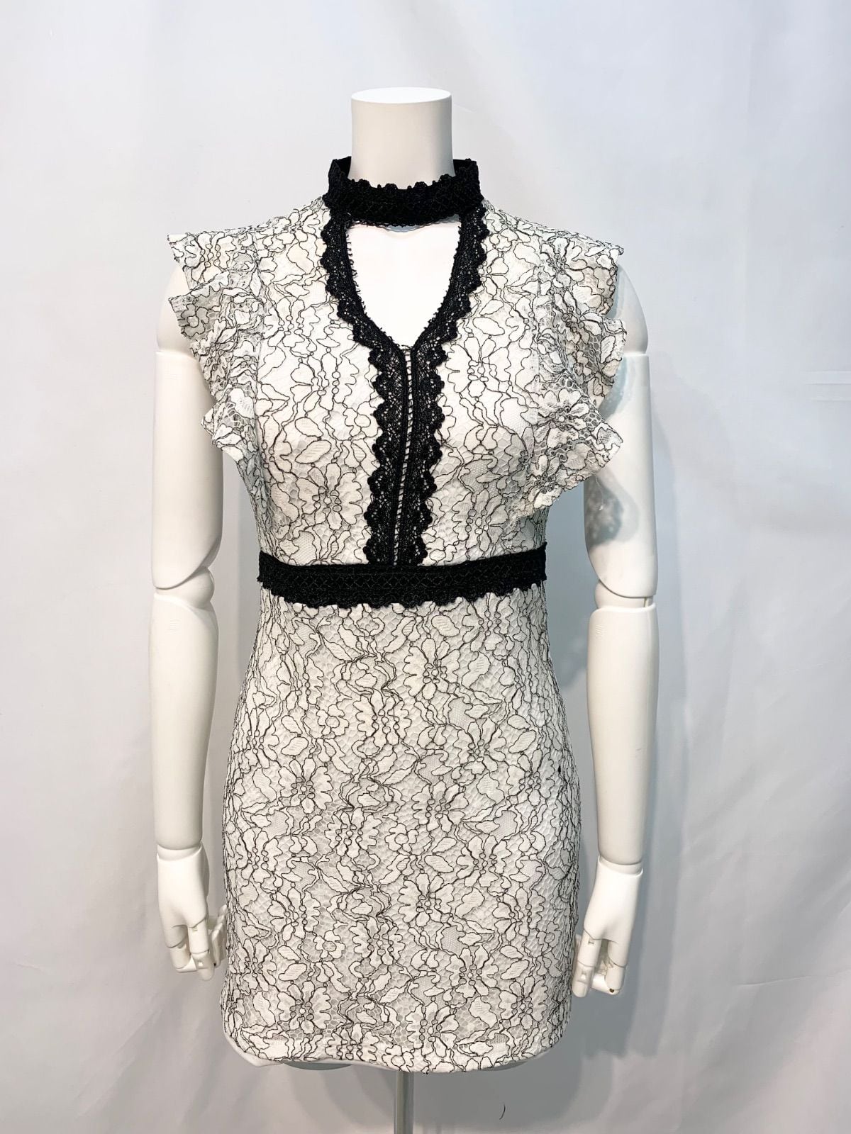 1842 Tika ティカ キャバクラ ドレス 総レース フリル タイト ミニ キャバドレス S