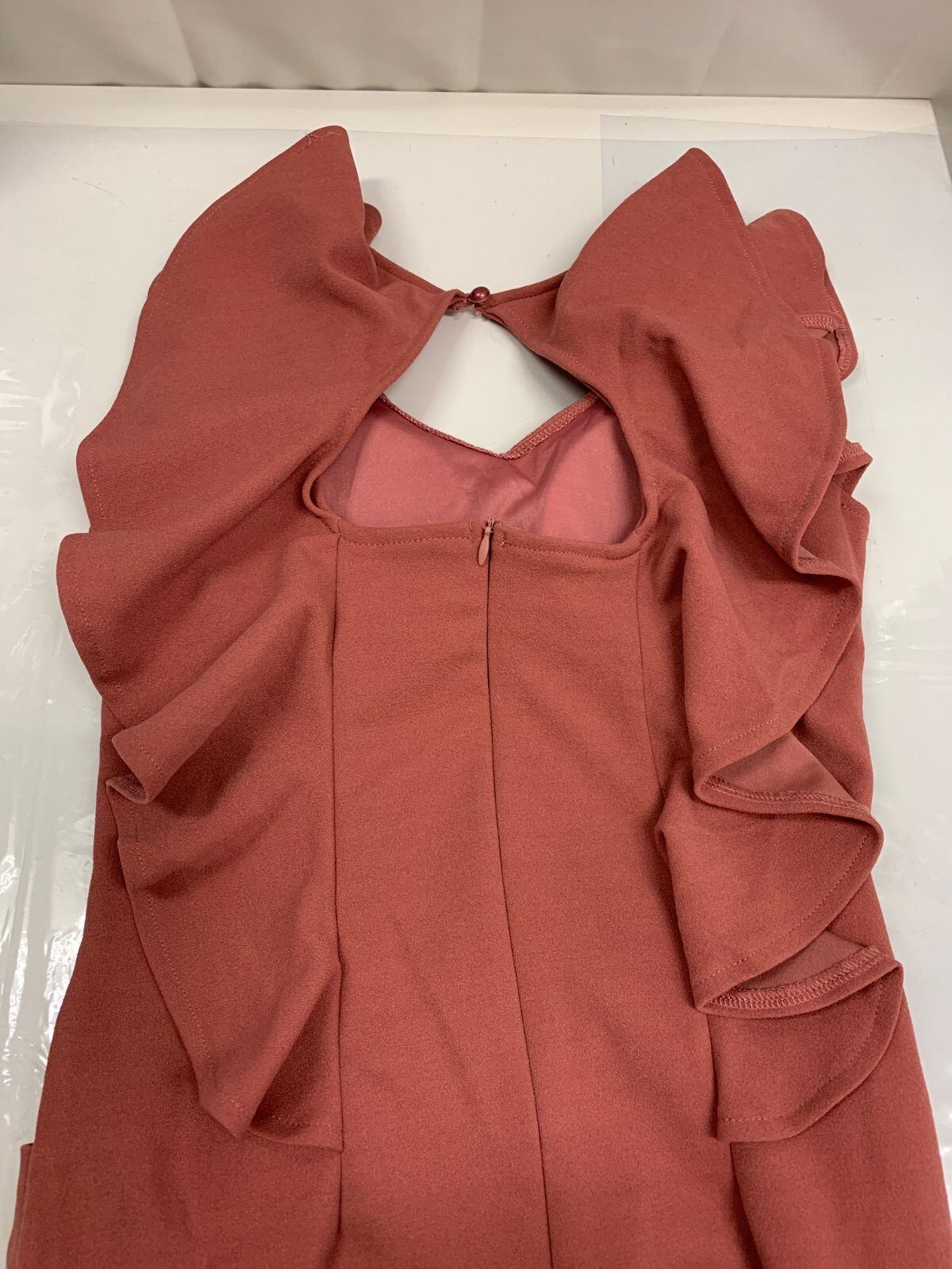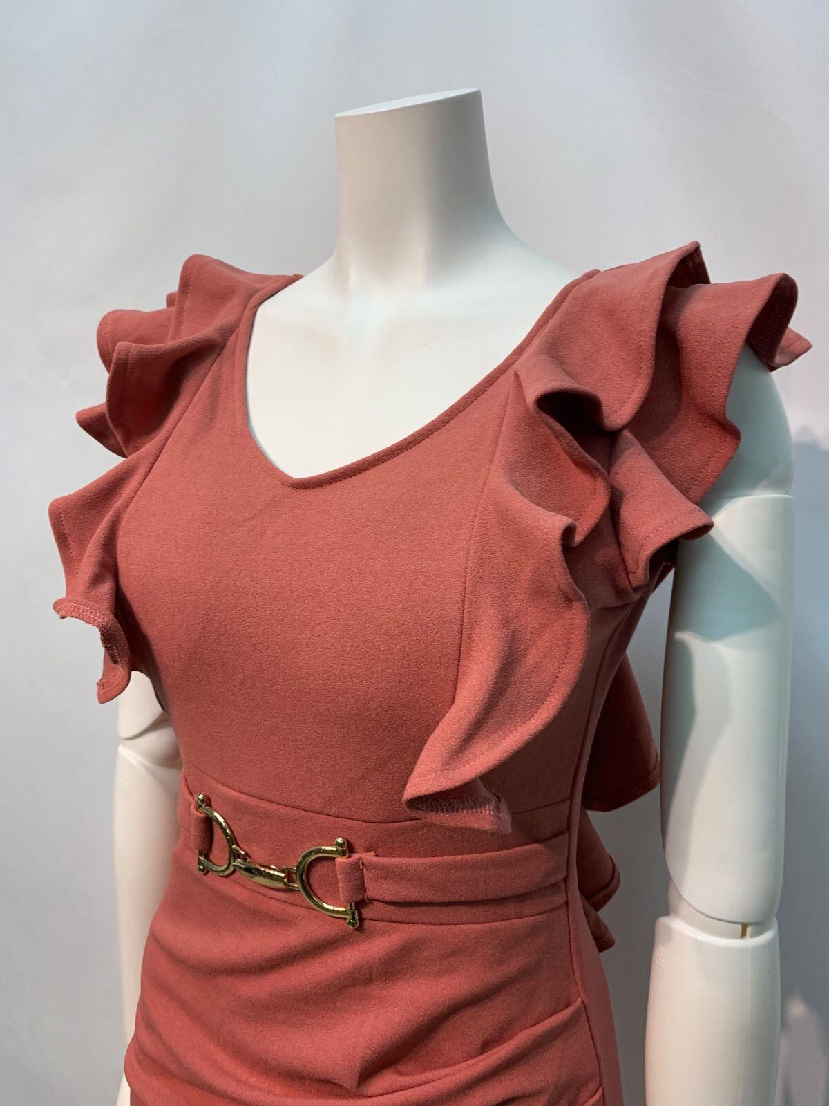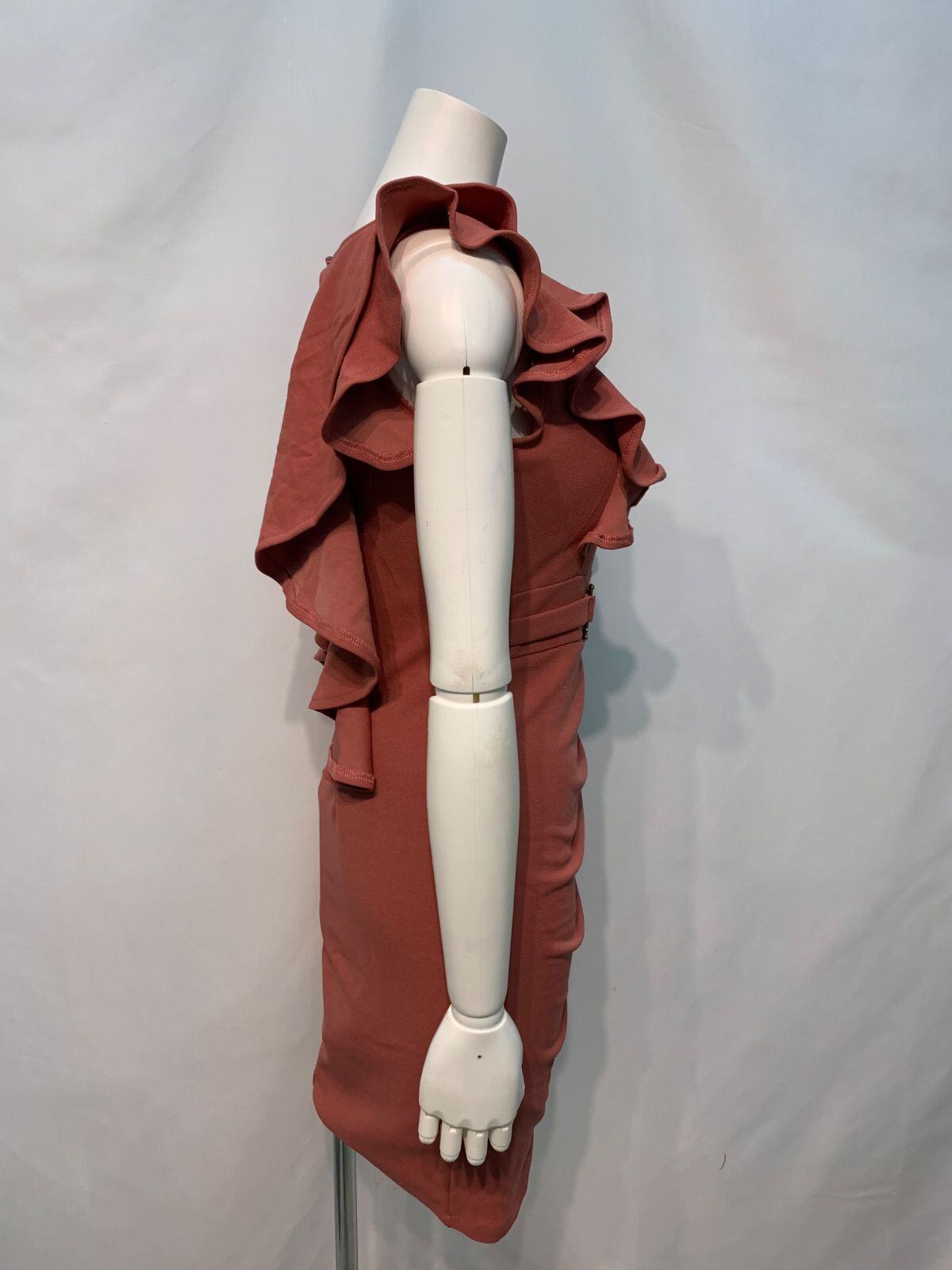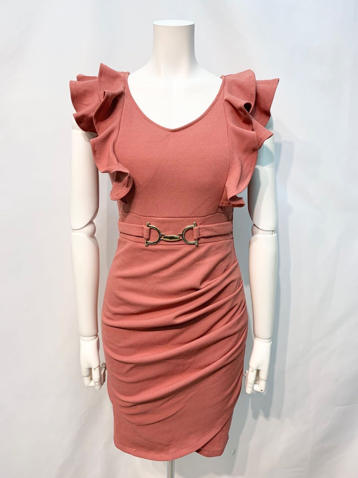 1844 Tika ティカ キャバクラ ドレス 伸縮性 フリル ゴールド金具 ノースリーブ タイト ミニ キャバドレス S