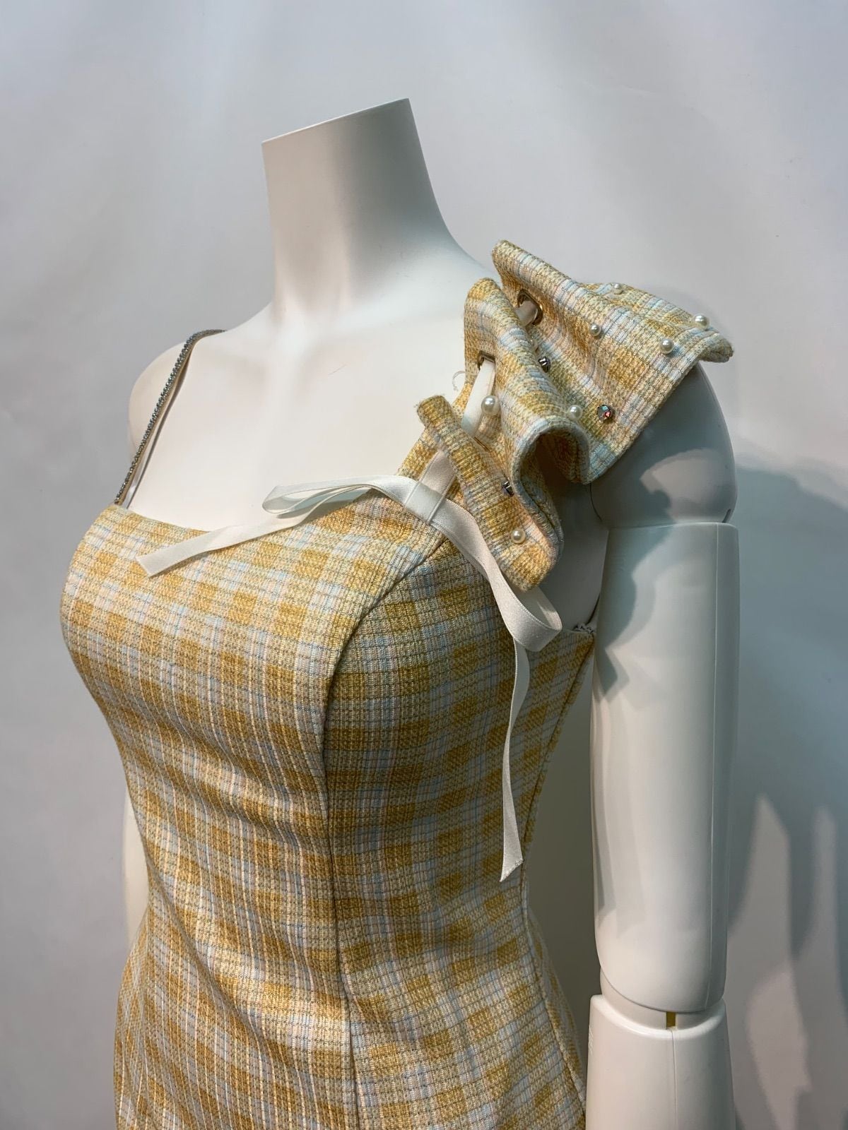1849 AR Angel R エンジェルアール キャバクラ ドレス ツイード ラメ キラキラ フリル タイト ミニ ストーンストラップ キャバドレス M