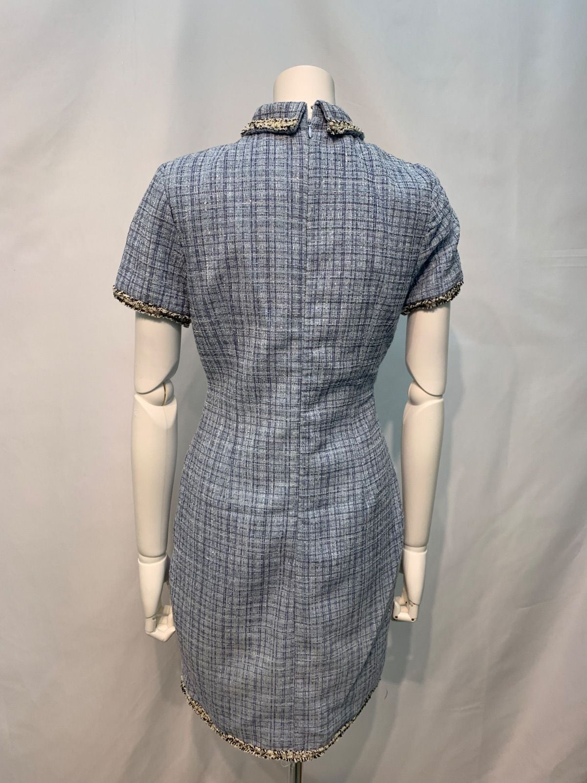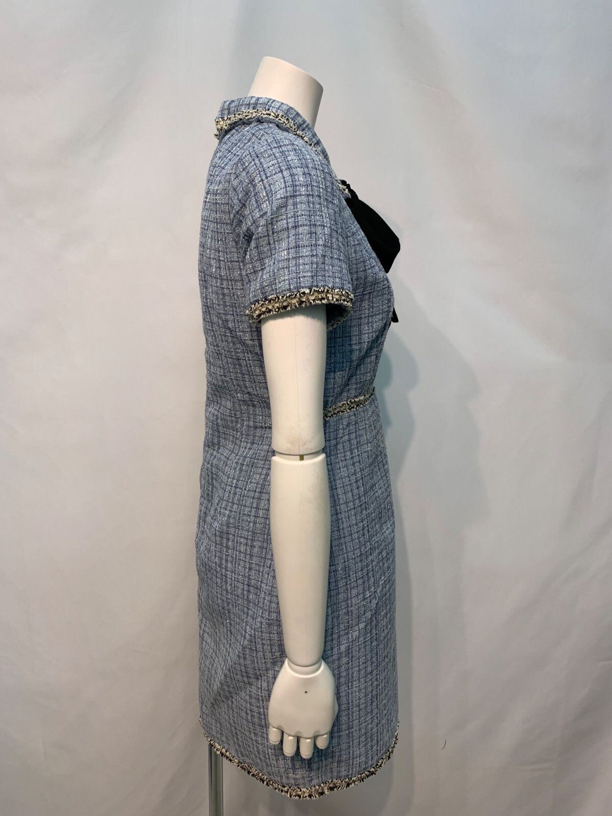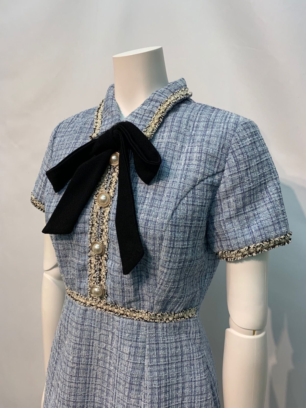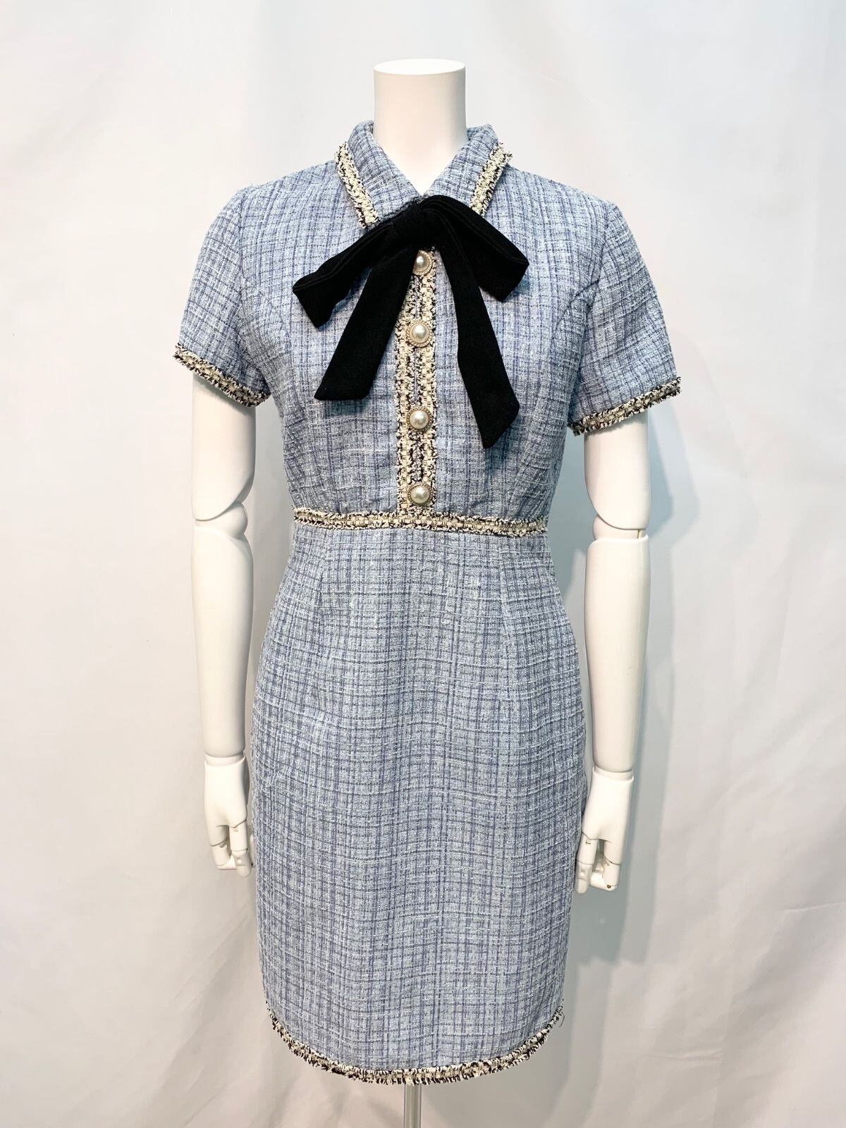 1852 DAZZY デイジー キャバクラ ドレス ツイード ラメ キラキラ リボン パールボタン ミディ キャバドレス M