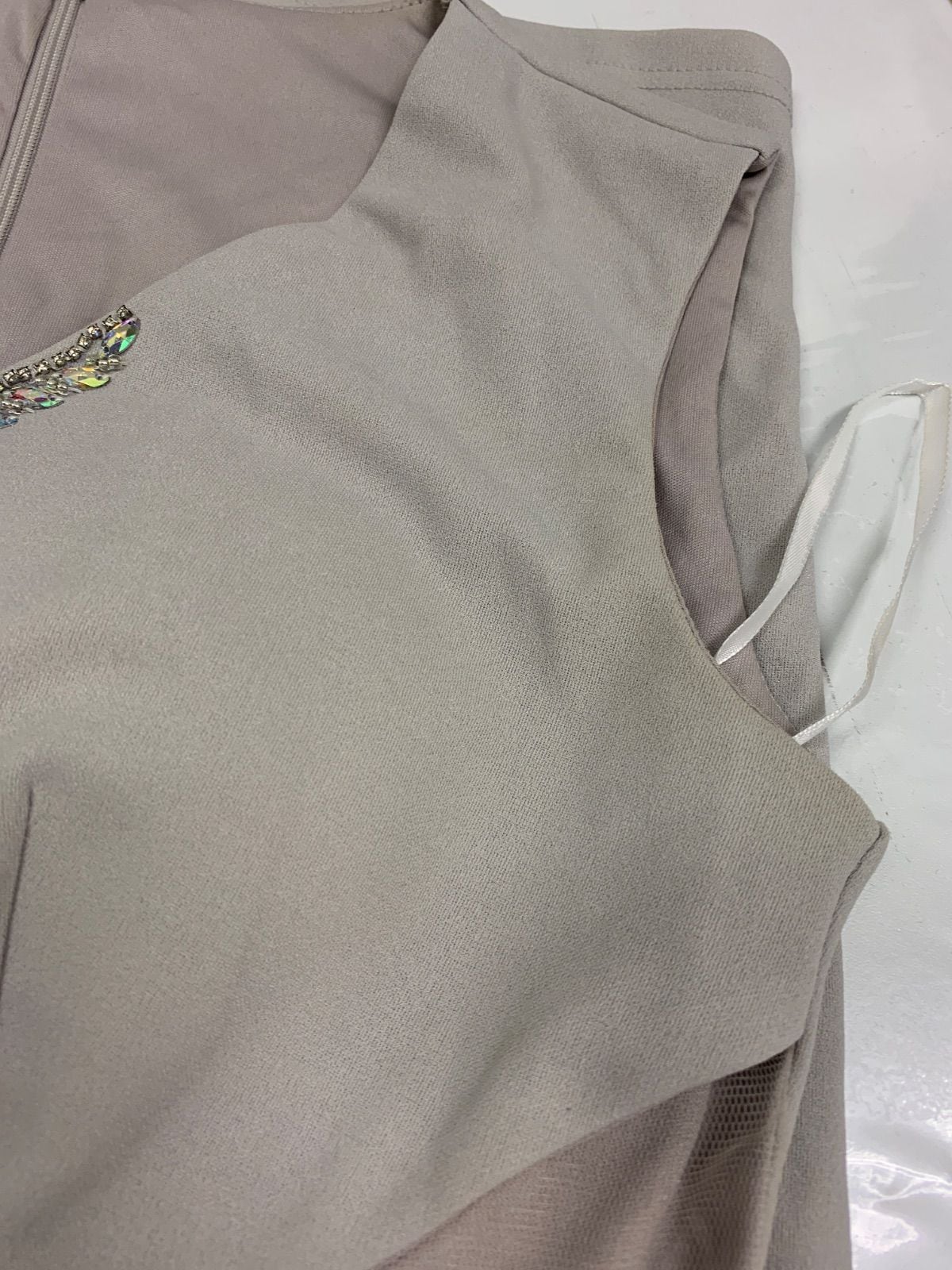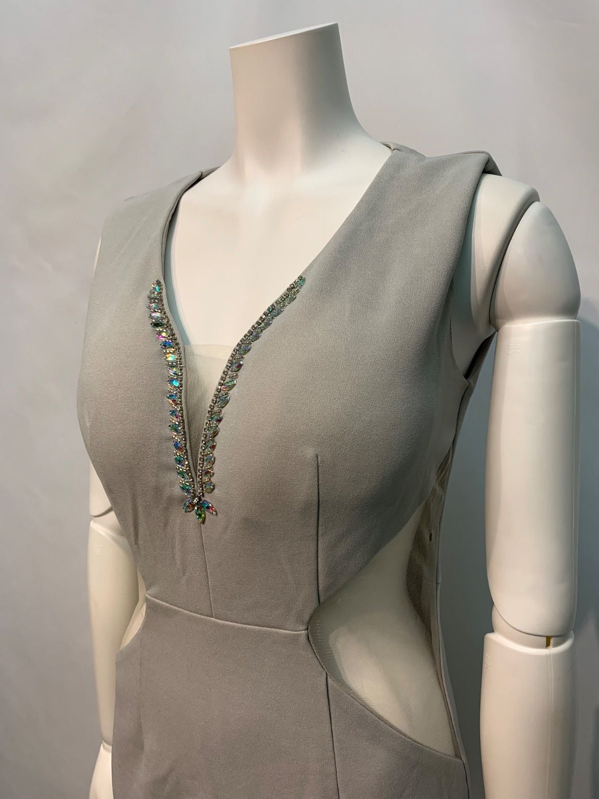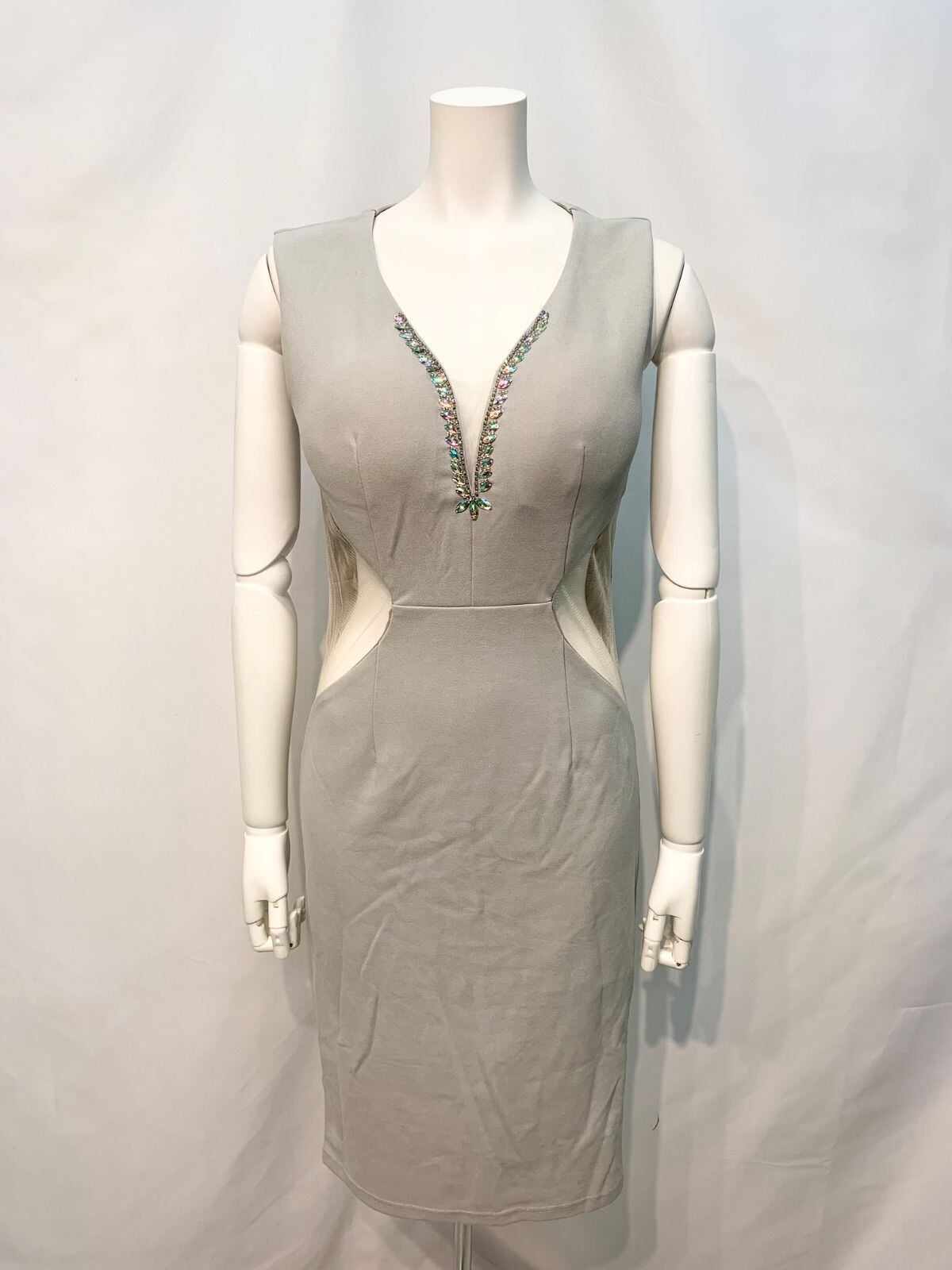 1863 DAZZY デイジー キャバクラ ドレス ミディ ノースリーブ シースルー ストーン タイト 伸縮性 キャバドレス L
