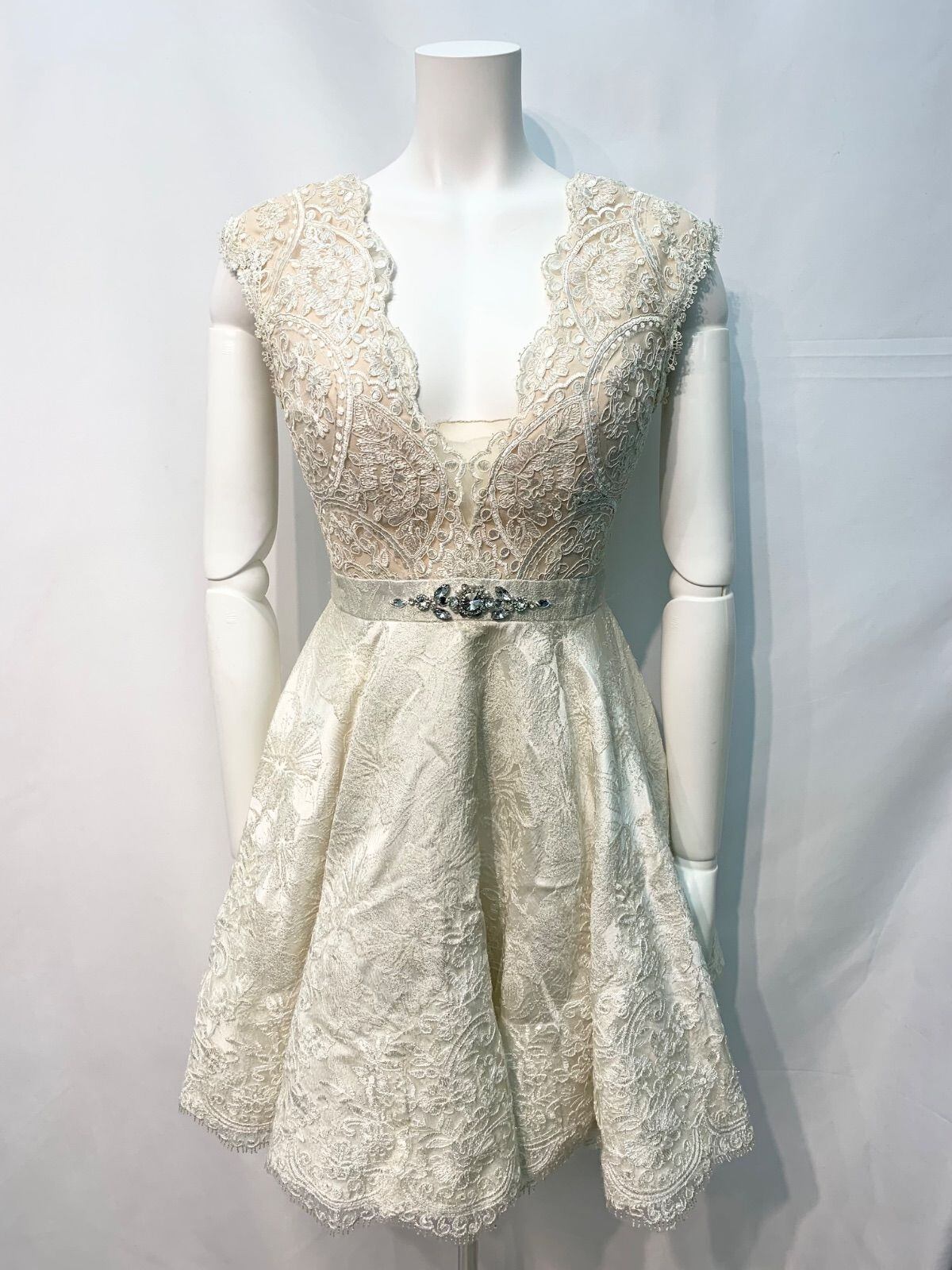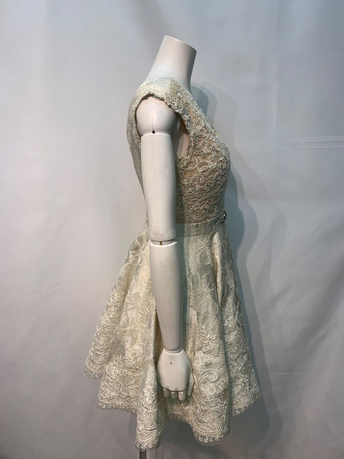 1881 ROBE de FLEURS ローブドフルール キャバクラ ドレス チュール 総レース フレア ビジュー ストーン ミニ タイト キャバドレス S