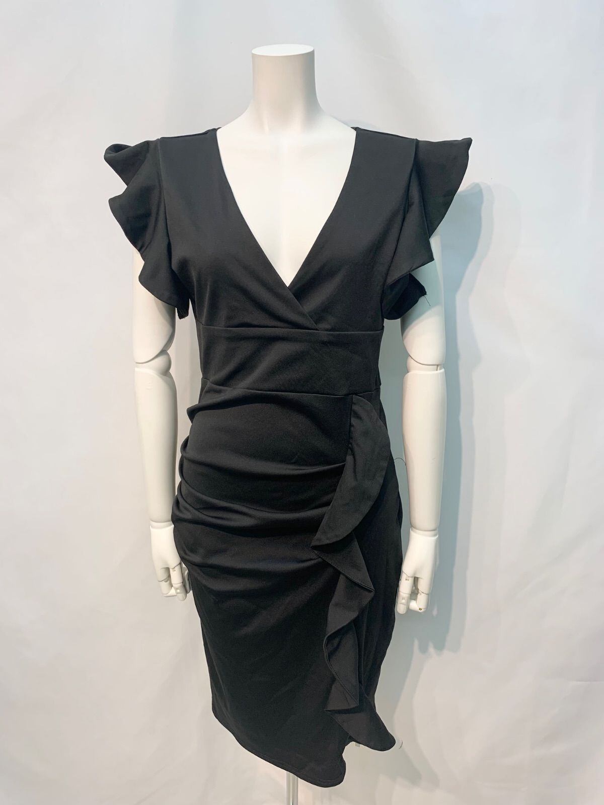 1887 Tika ティカ キャバクラ ドレス フリル 伸縮性 ミディ タイト キャバドレス L