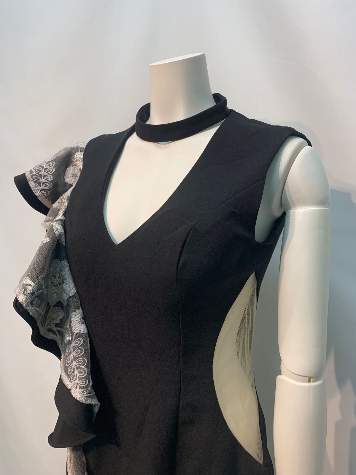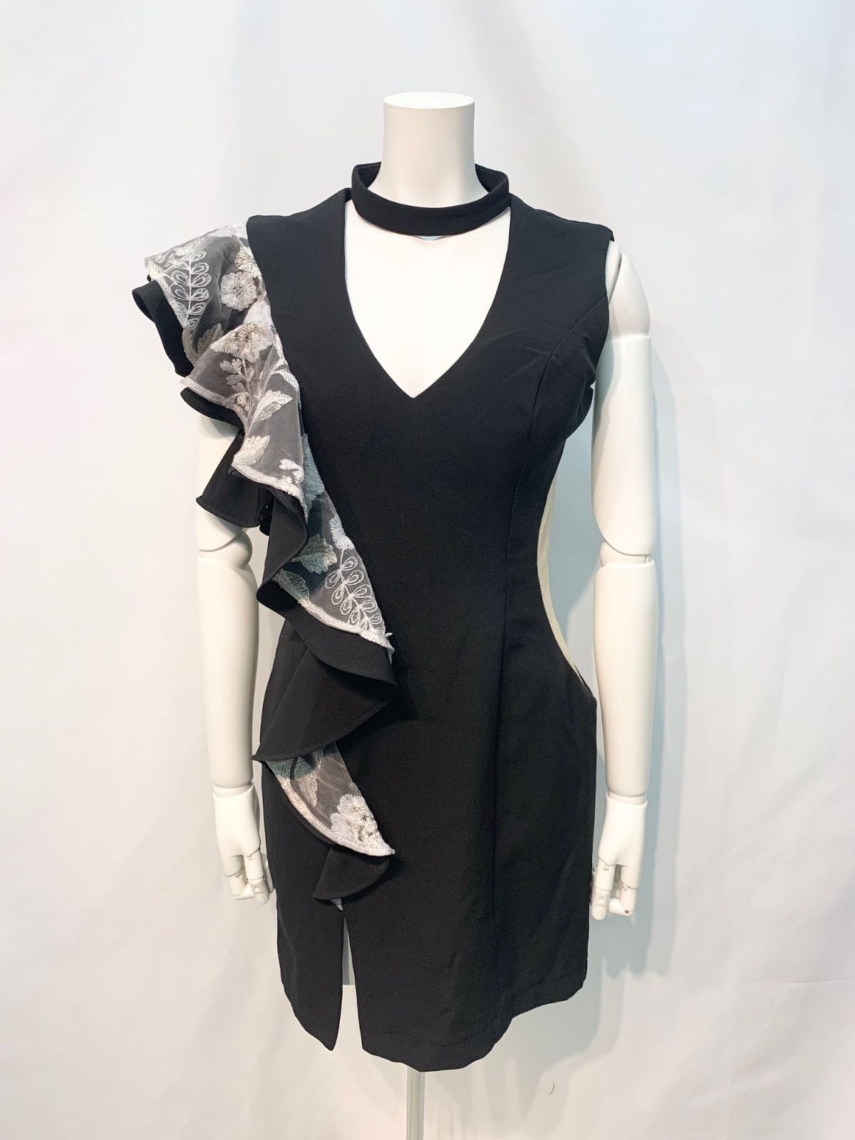 1888 JEWELS ジュエルズ キャバクラ ドレス フリル タイト 伸縮性 レース フラワー ミニ シースルー キャバドレス M