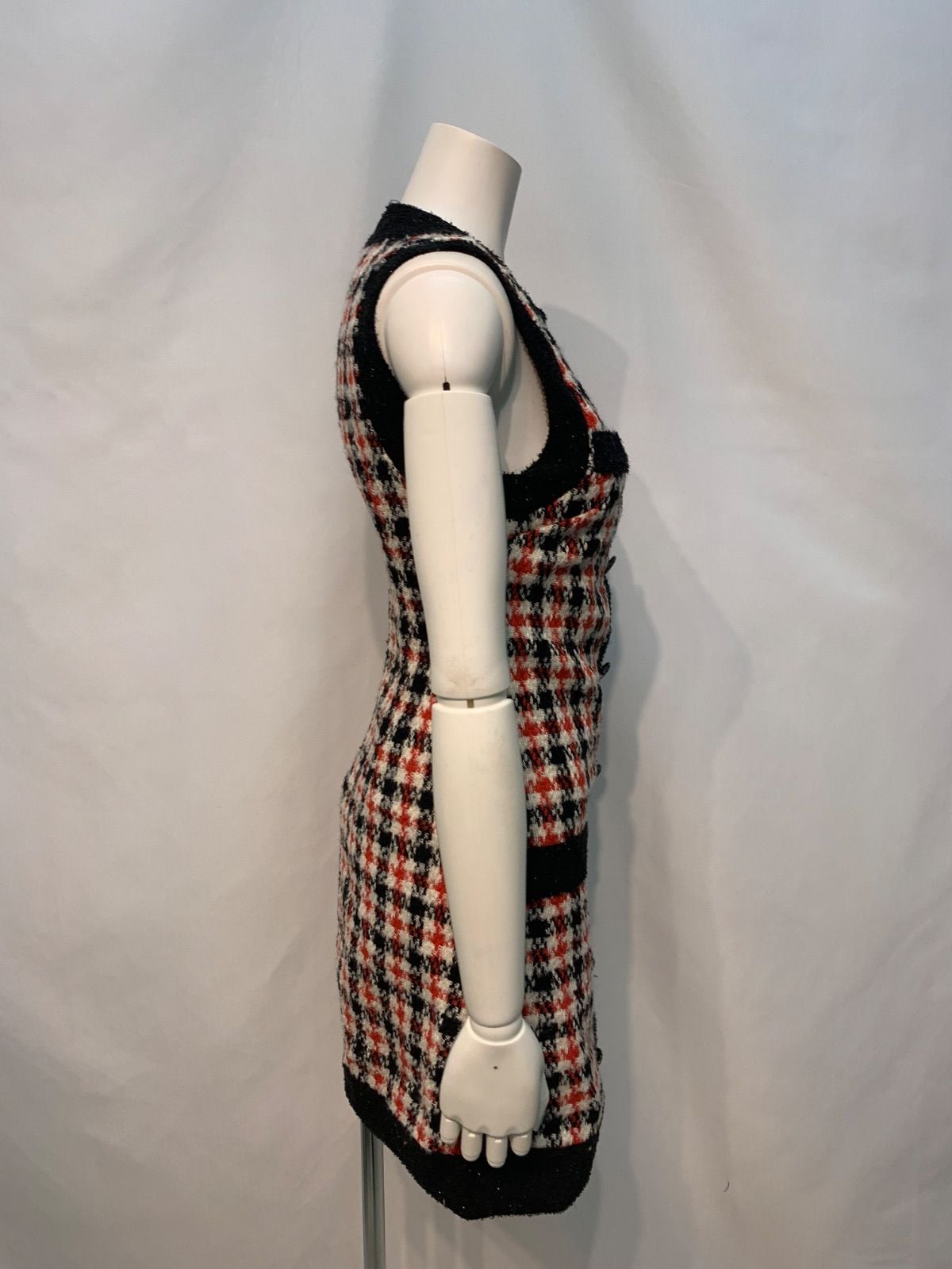 1896 SATUDAYCLUB サタデークラブ キャバクラ ドレス ツイード ウール ノースリーブ タイト ミニ チェック キャバドレス XXS
