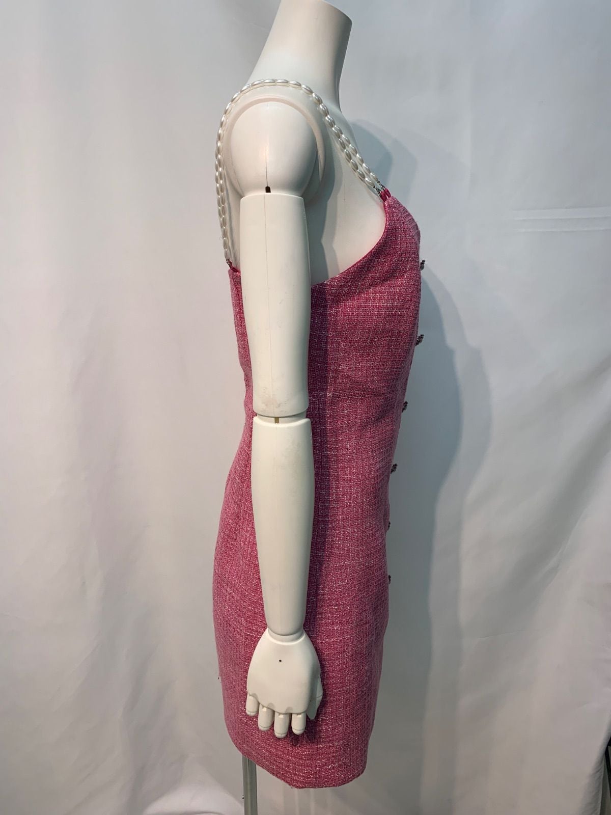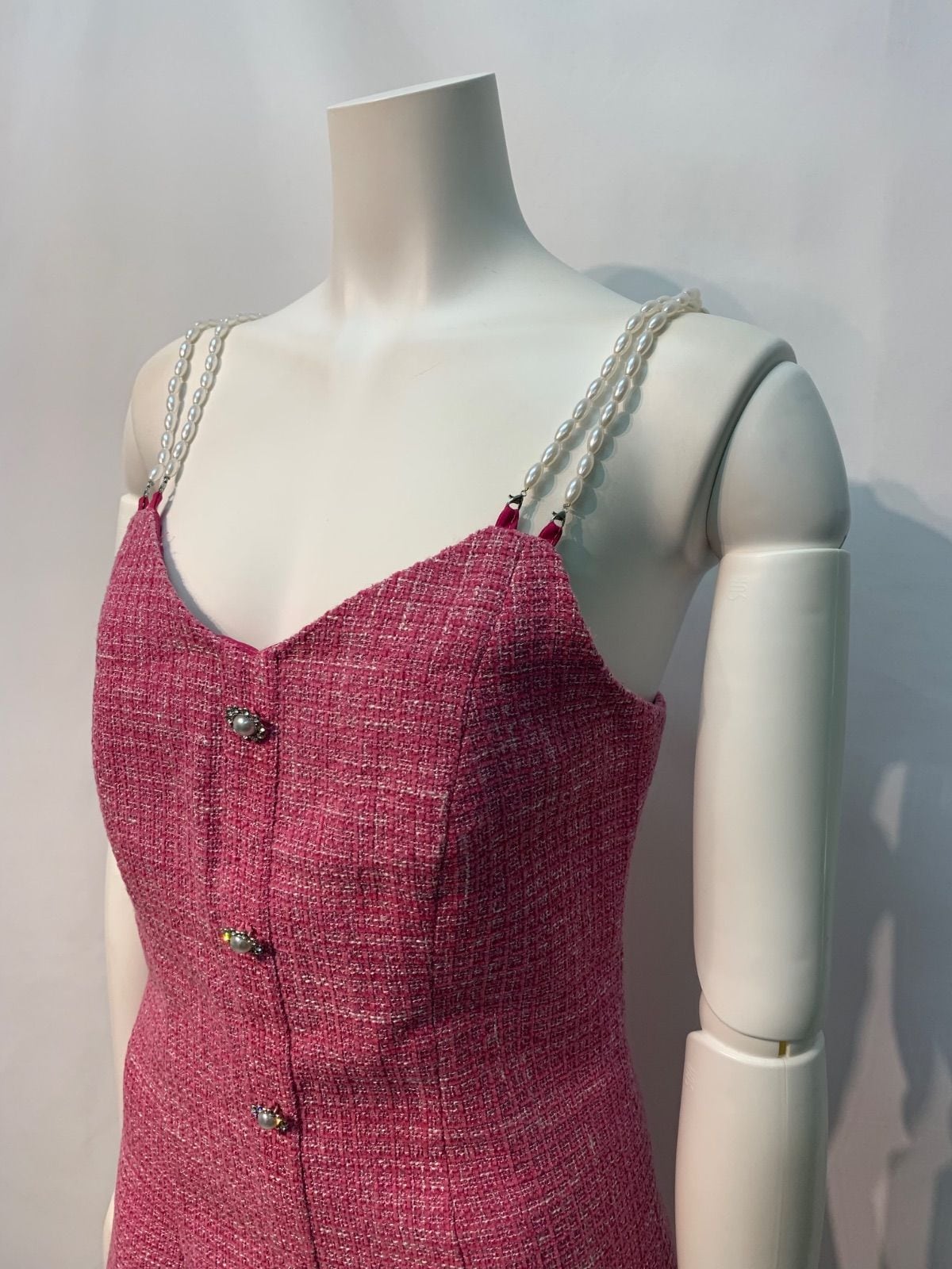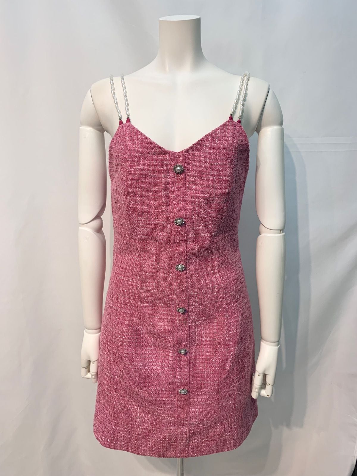 1920 キャバクラ ドレス ツイード ラメ パールストラップ ミニ キャミ ビジューボタン キャバドレス XS