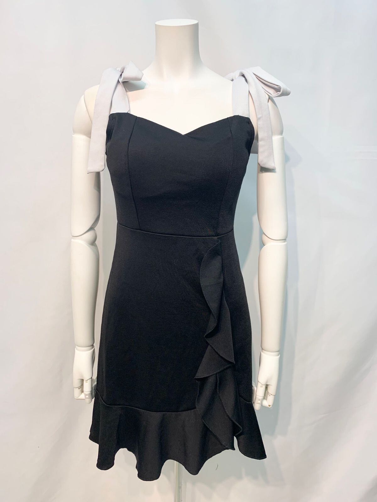 1959 DAZZY デイジー キャバクラ ドレス リボンストラップ フリル タイト 伸縮性 シンプル キャバドレス S