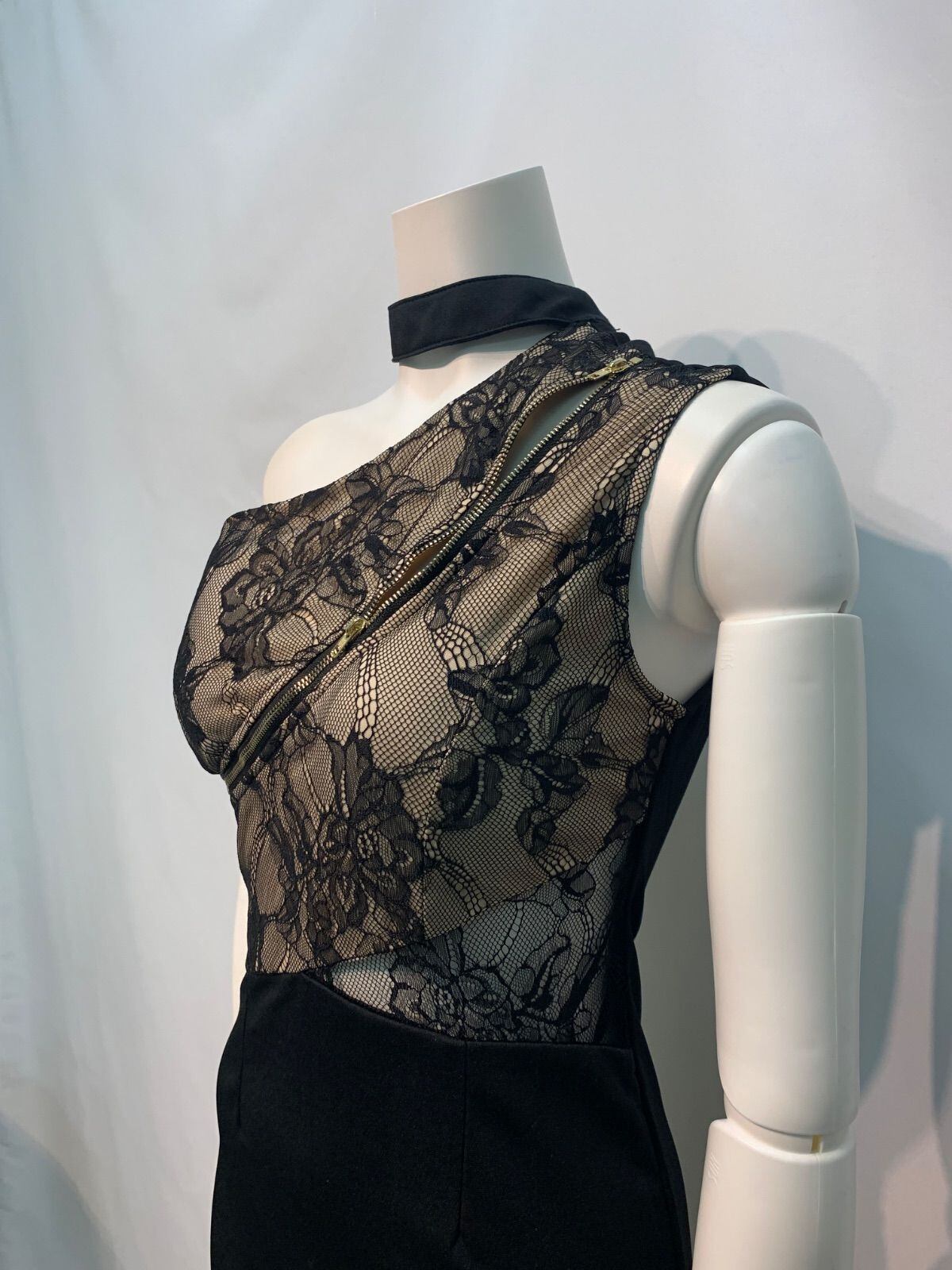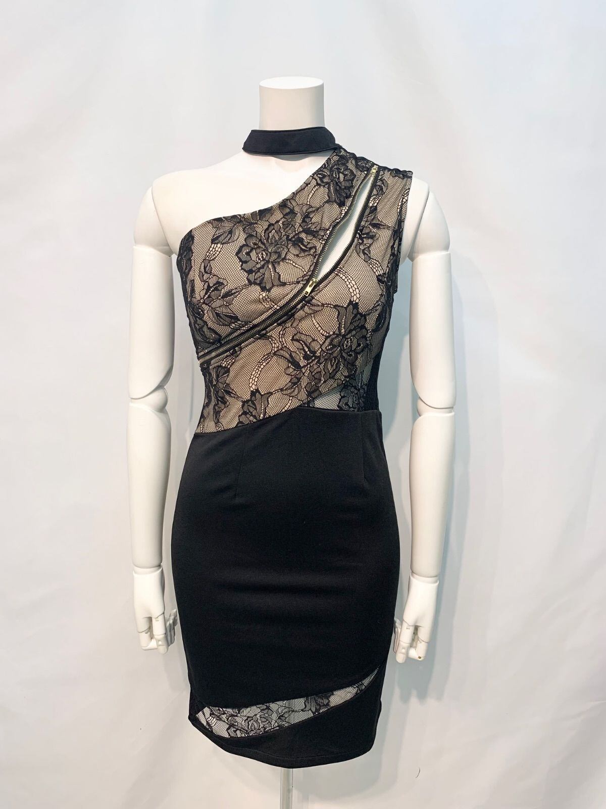 1960 Tika ティカ キャバクラ ドレス ワンショルダー レース タイト ミニ 伸縮性 キャバドレス S