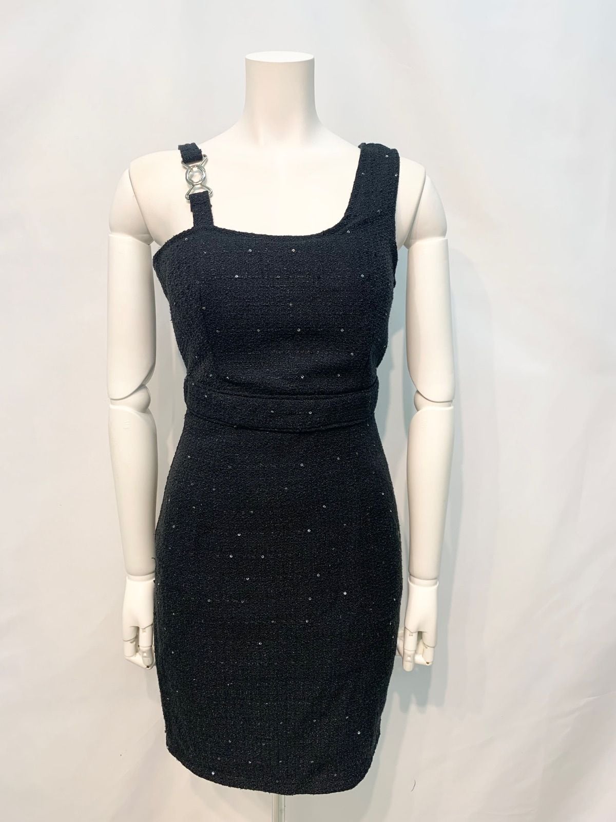 1963 DAZZY デイジー キャバクラ ドレス ツイード スパンコール タイト ミニ シンプル キャバドレス M
