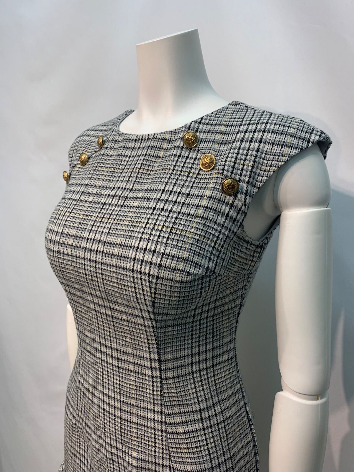 1964 JEWELS ジュエルズ キャバクラ ドレス チェック柄 マーメイド タイト ゴールドボタン キャバドレス S