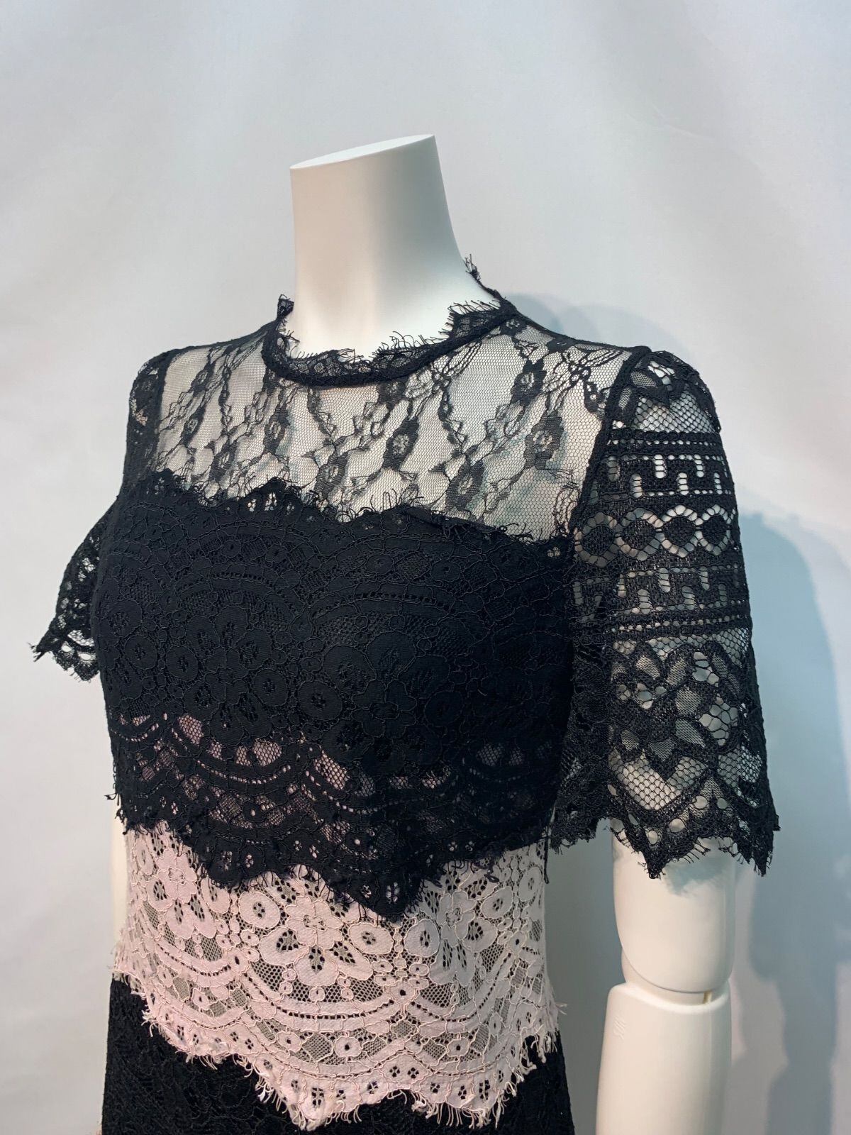 1970 キャバクラ ドレス 総レース バイカラー ミニ キャバドレス