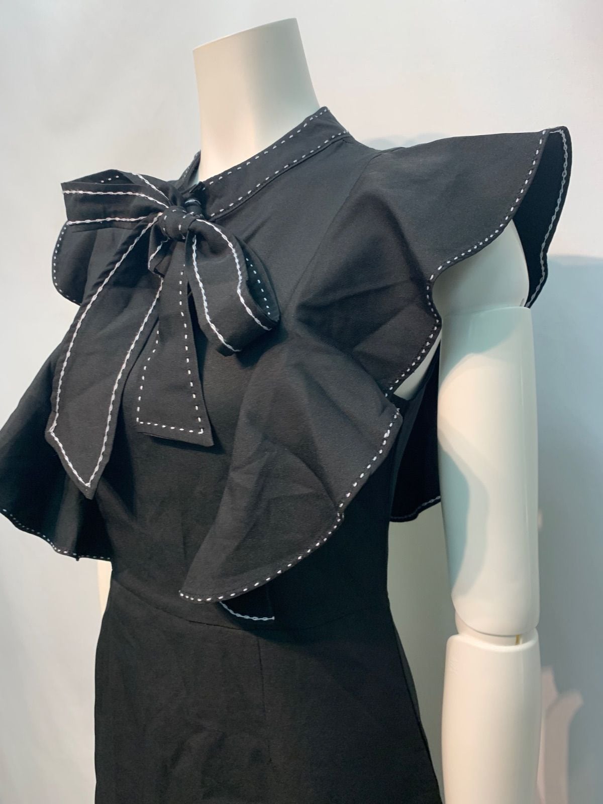 1971 キャバクラ ドレス フリル リボン ノースリーブ タイト ミニ キャバドレス
