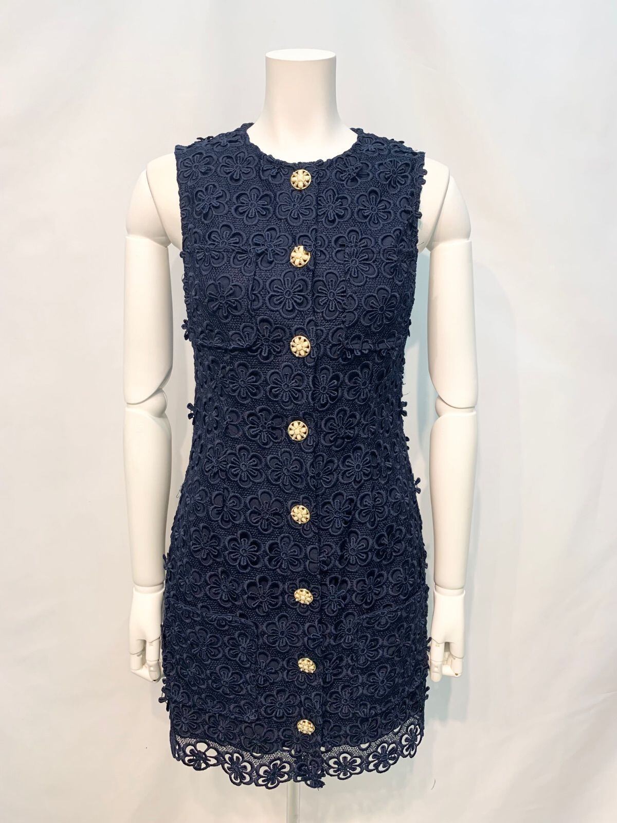 1981 SATUDAYCLUB サタデークラブ キャバクラ ドレス クロシェ レース ビジューボタン タイト ミニ お呼ばれ 二次会 ノースリーブ キャバドレス XS