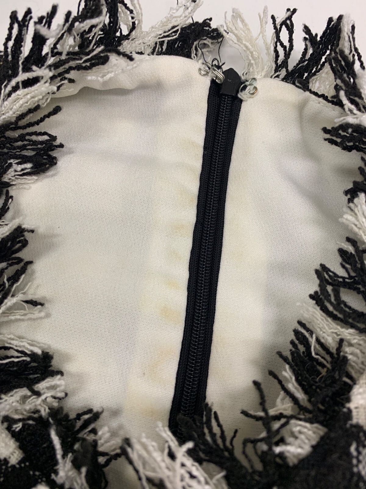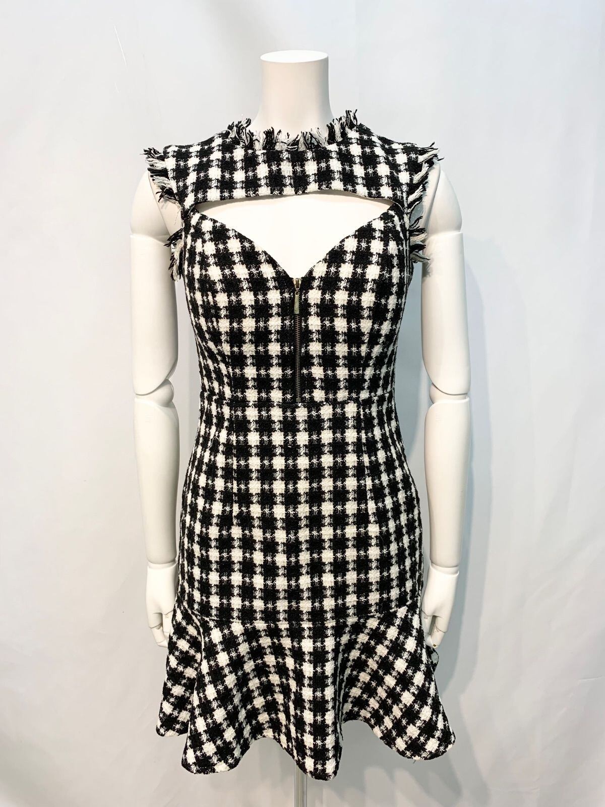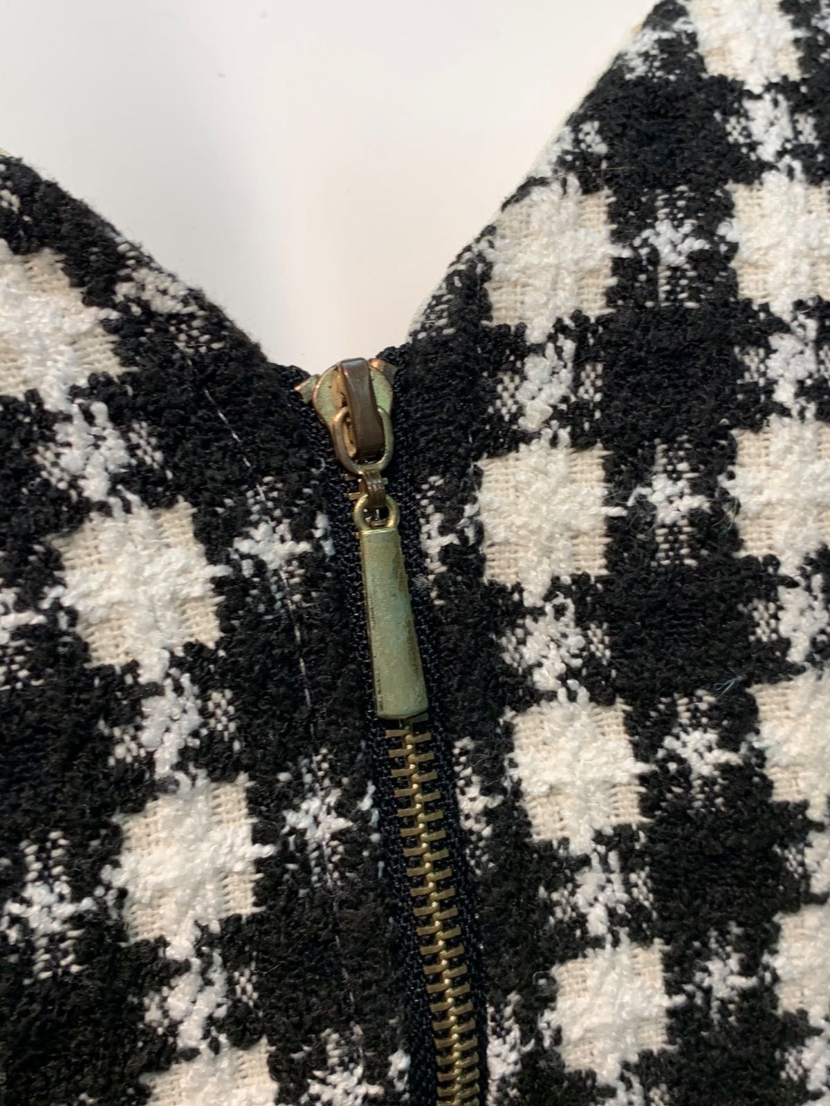 1987 JEWELS ジュエルズ キャバクラ ドレス ツイード チェック ジップ ノースリーブ フリンジ キャバドレス S