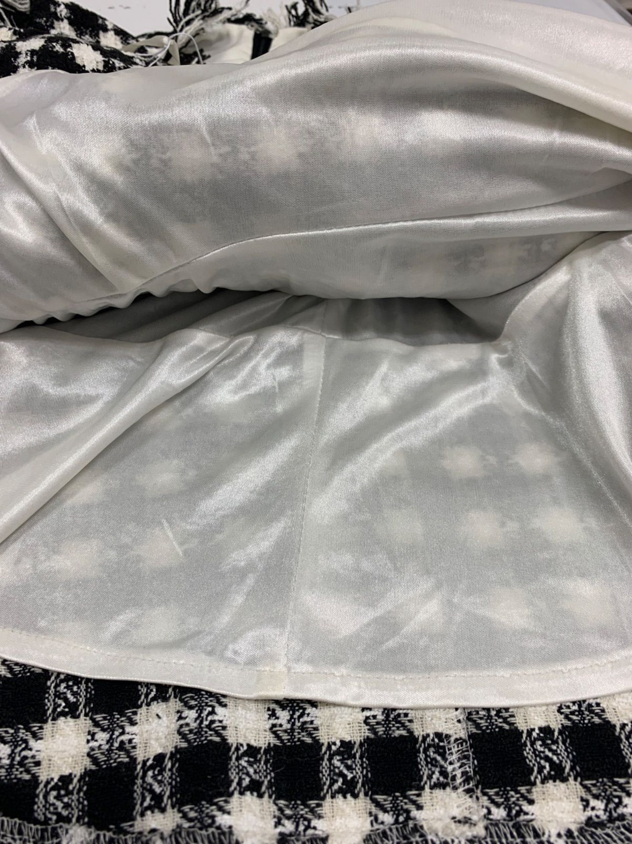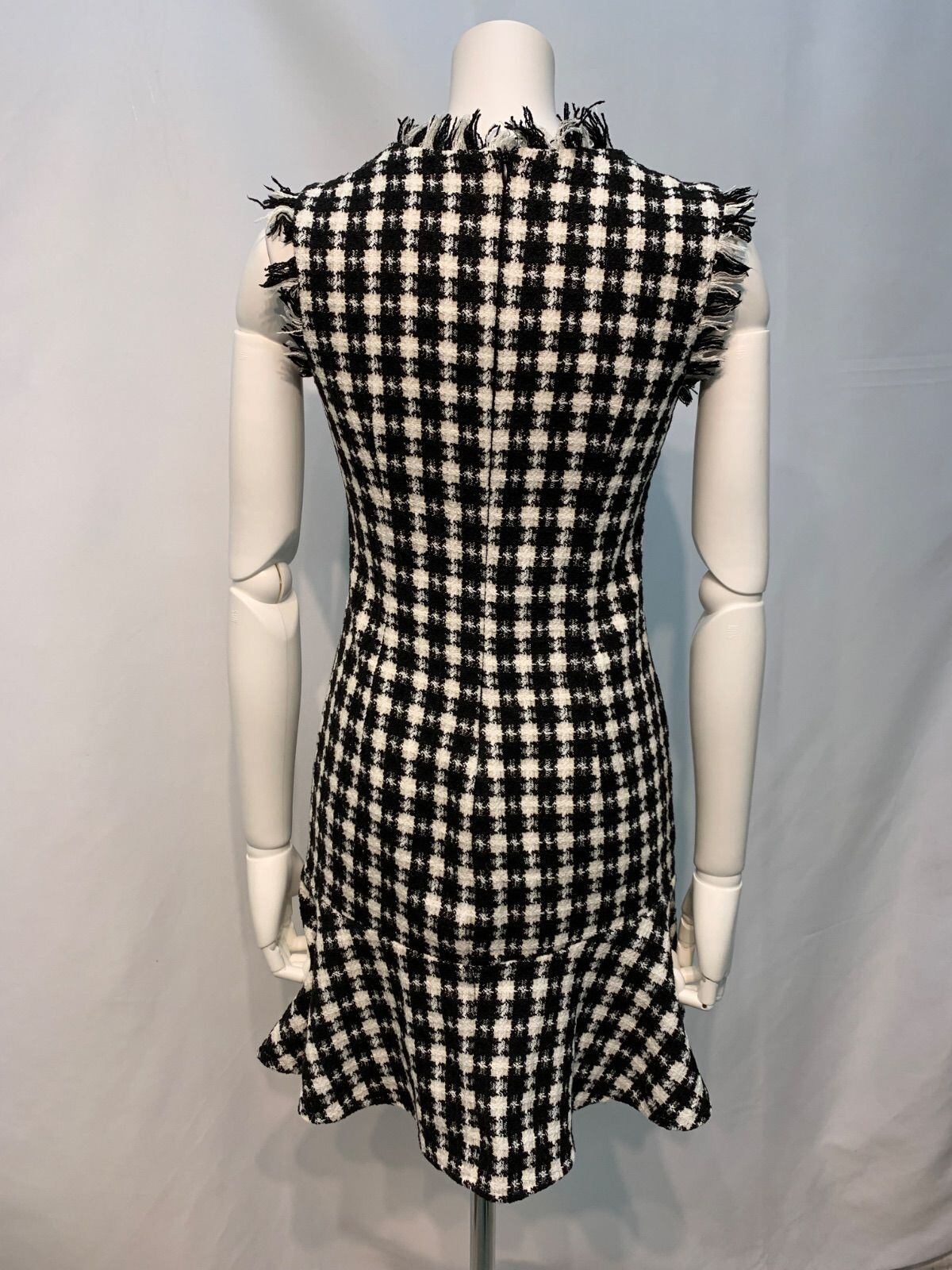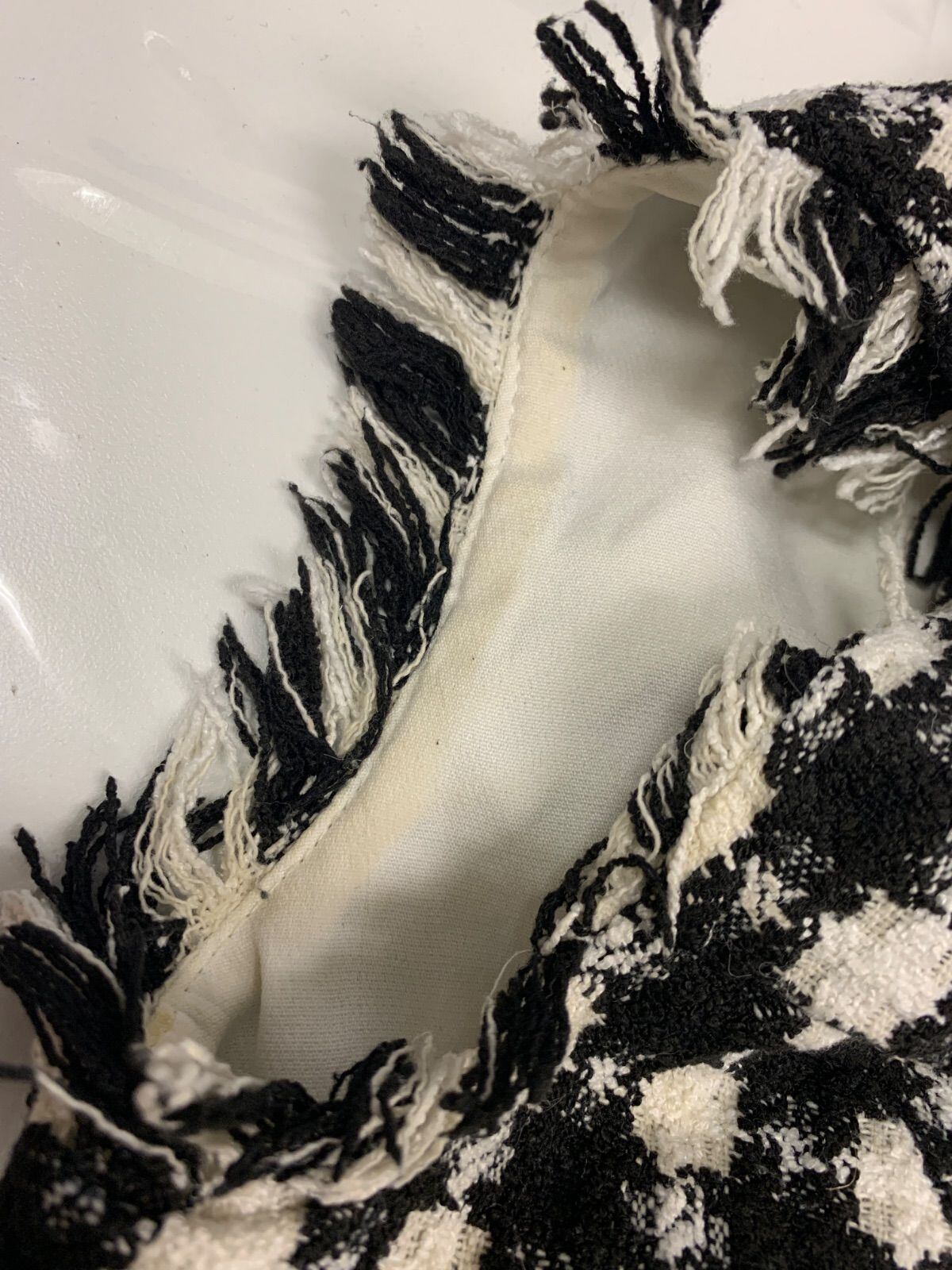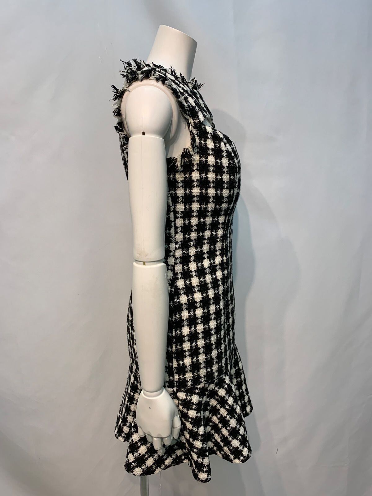 1987 JEWELS ジュエルズ キャバクラ ドレス ツイード チェック ジップ ノースリーブ フリンジ キャバドレス S