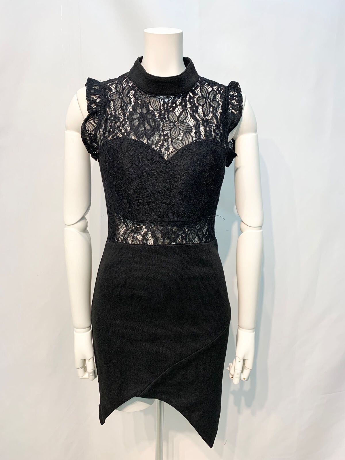 2015 DAZZY デイジー キャバクラ ドレス レース フリル タイト ミニ 伸縮性 キャバドレス S