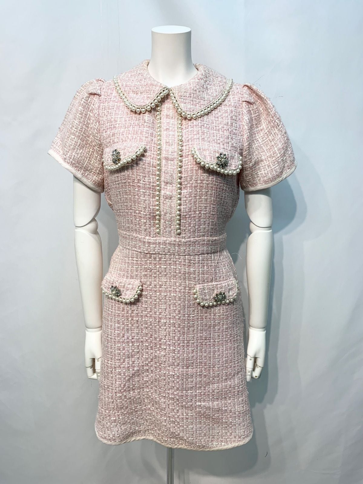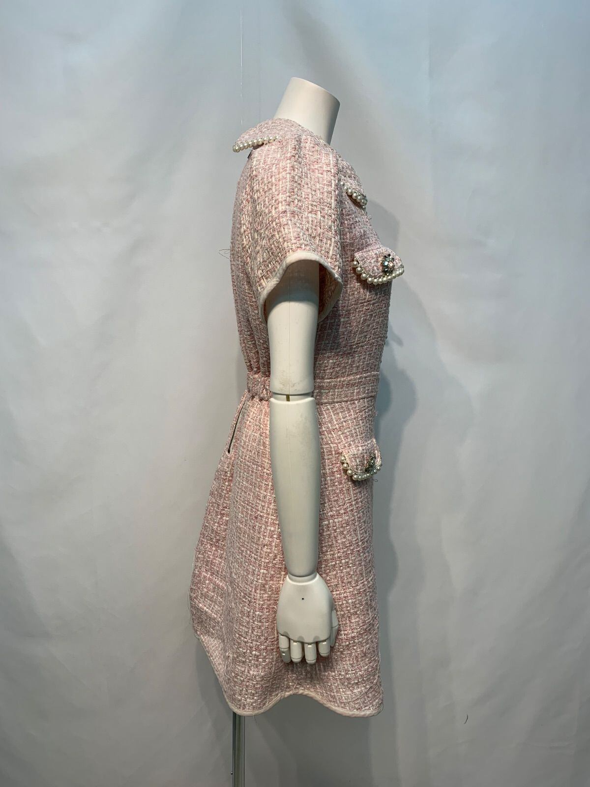 2016 SwanKiss キャバクラ ドレス ツイード パール ラメ 襟付き ミニ キャバドレス