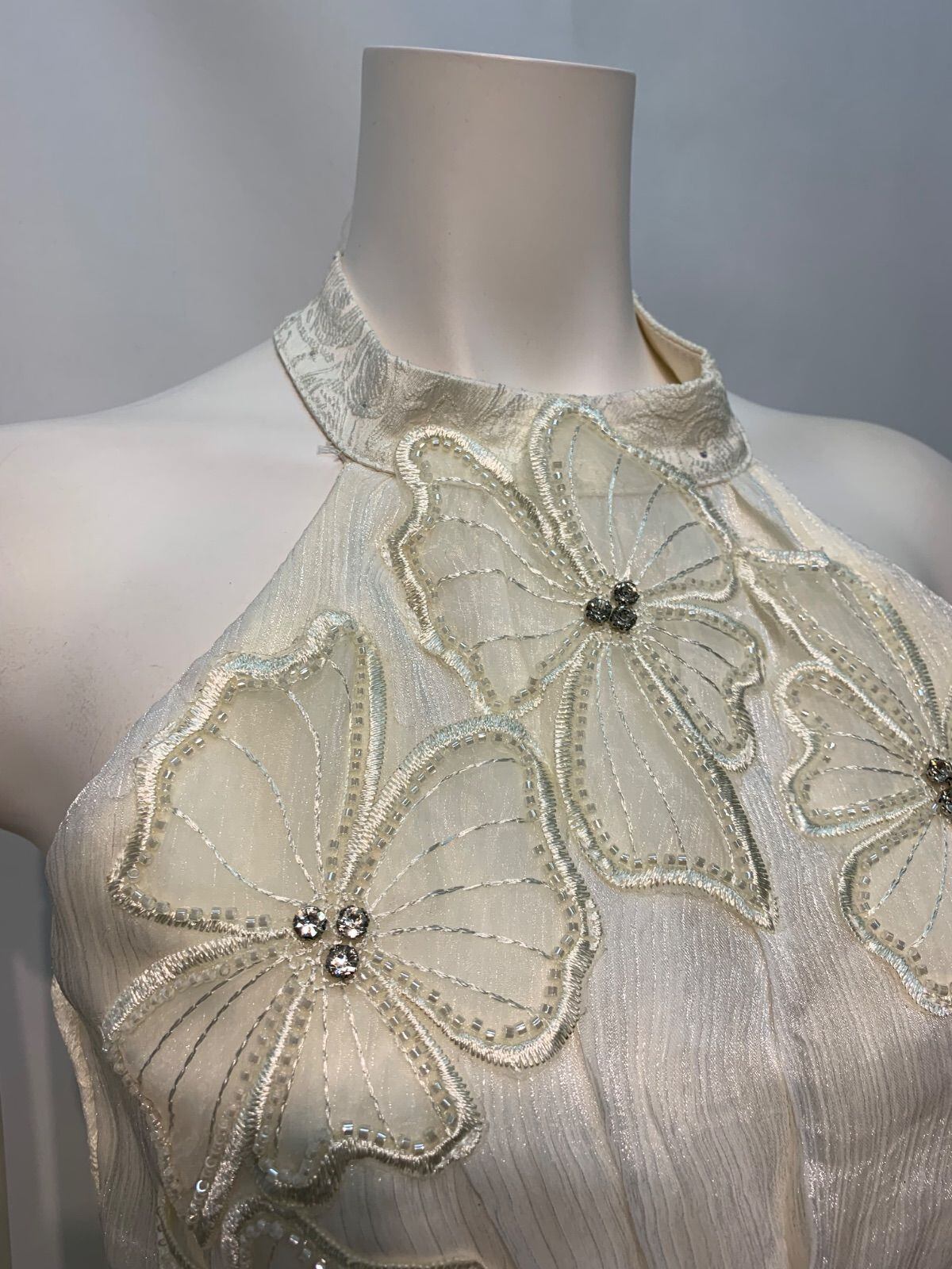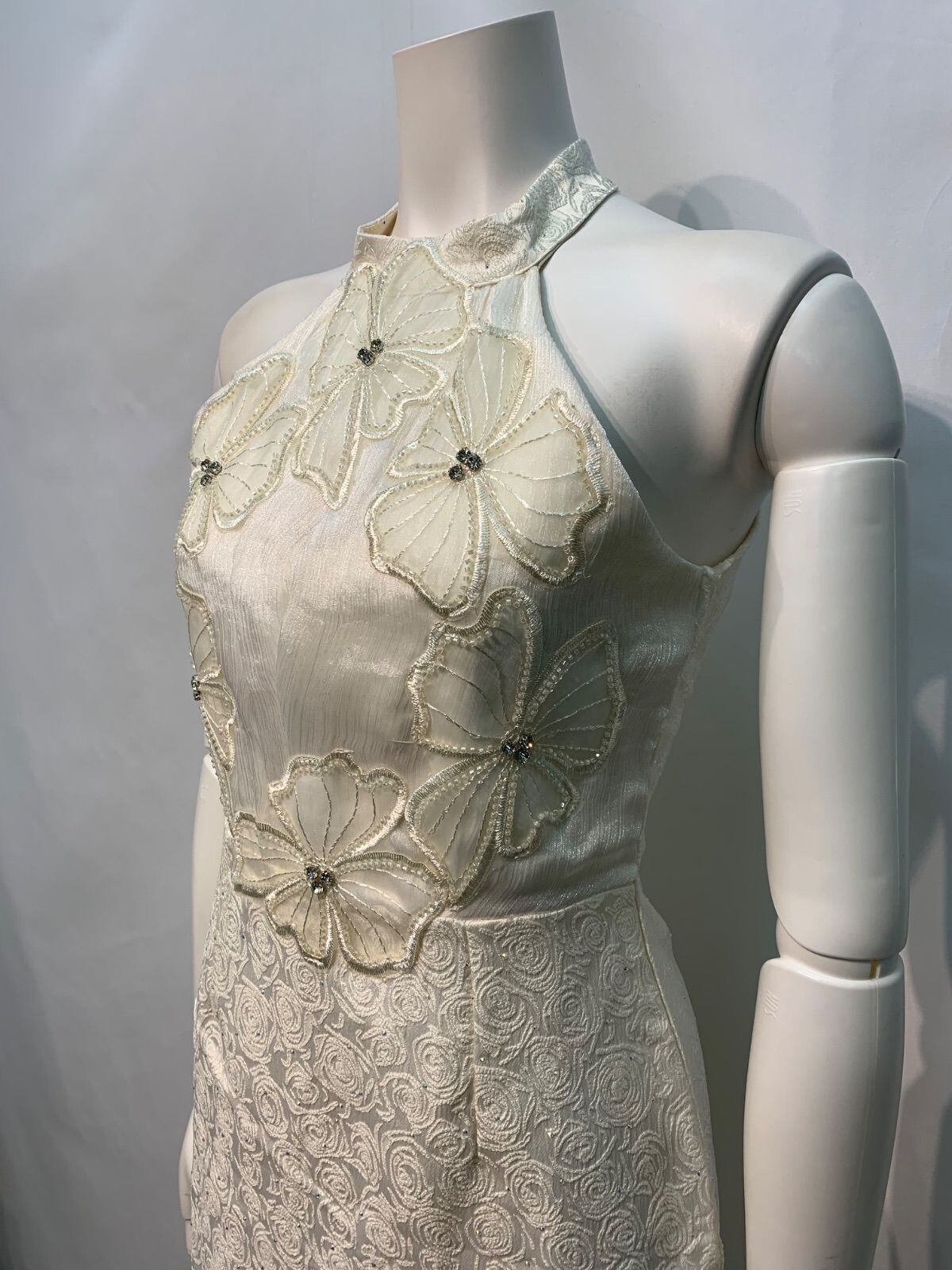 2027 キャバクラ ドレス ジャガード フラワー ストーン ビーズ ホルターネック キャバドレス S