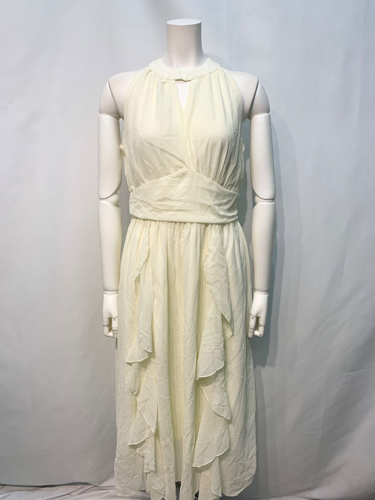 2028 キャバクラ ドレス シフォン ワンピース ホルターネック ロング フリル シンプル キャバドレス S