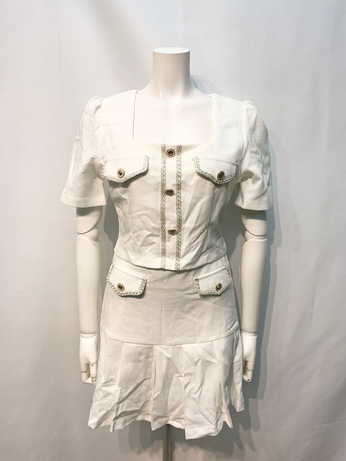 2030 GRAXIA キャバクラ ドレス セットアップ プリーツ ビジューボタン ミニ タイト キャバドレス M
