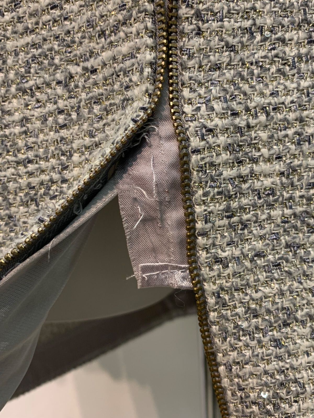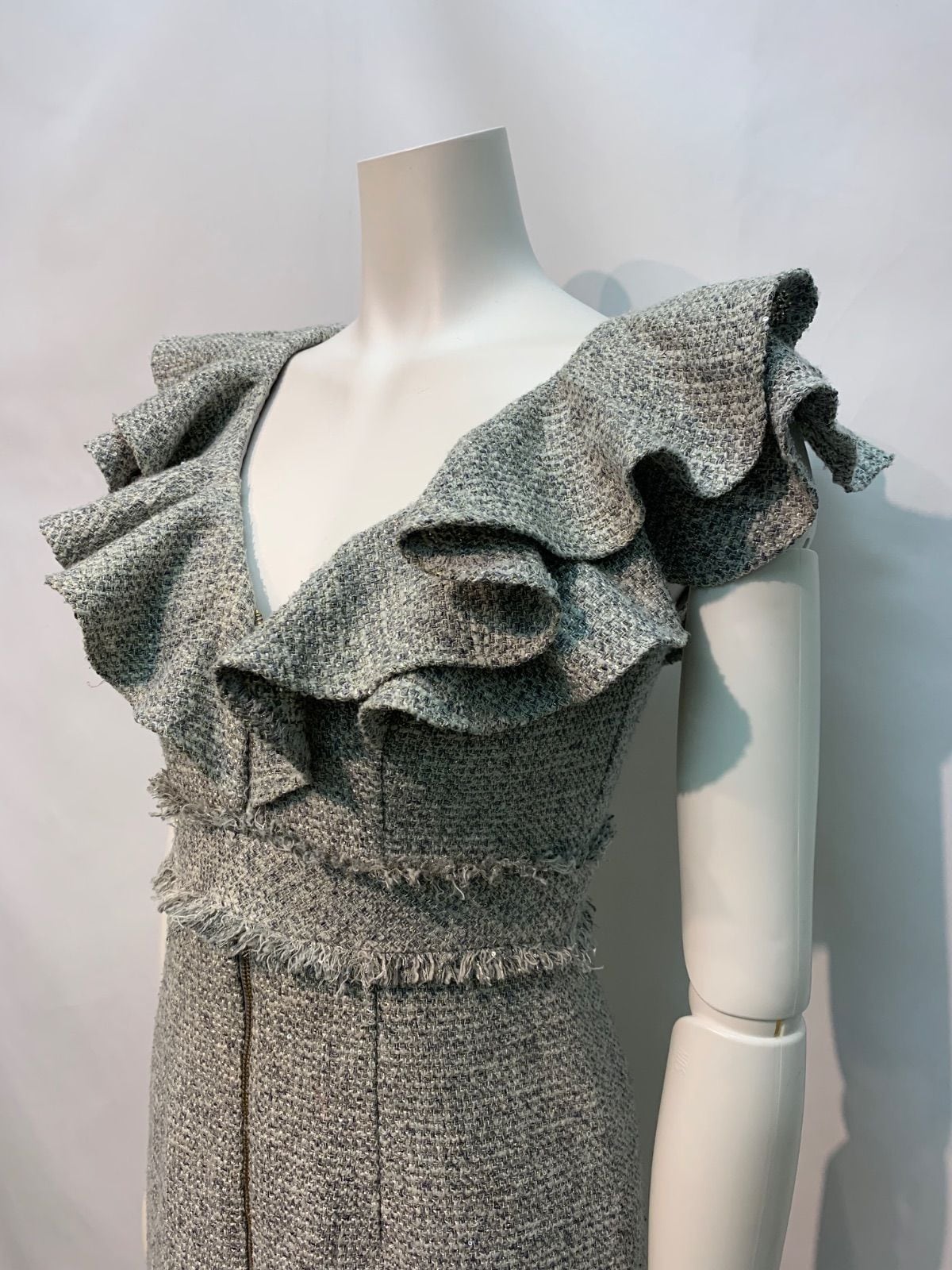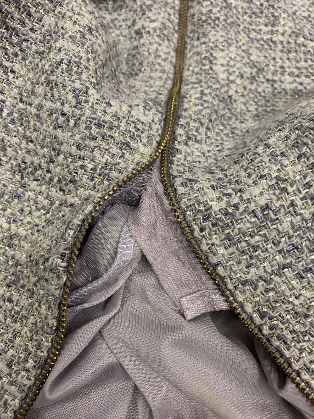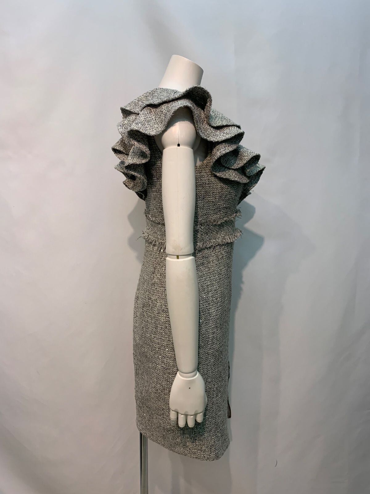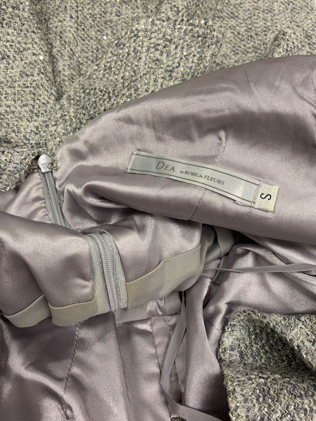 2042 DEA by ROBE de FLEURS ディアバイローブドフルール キャバクラ ドレス ツイード ラメ フリル ジップ ノースリーブ タイト キャバドレス S