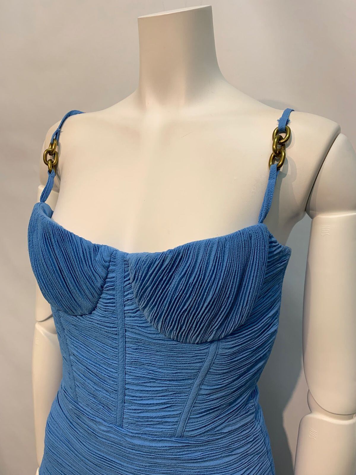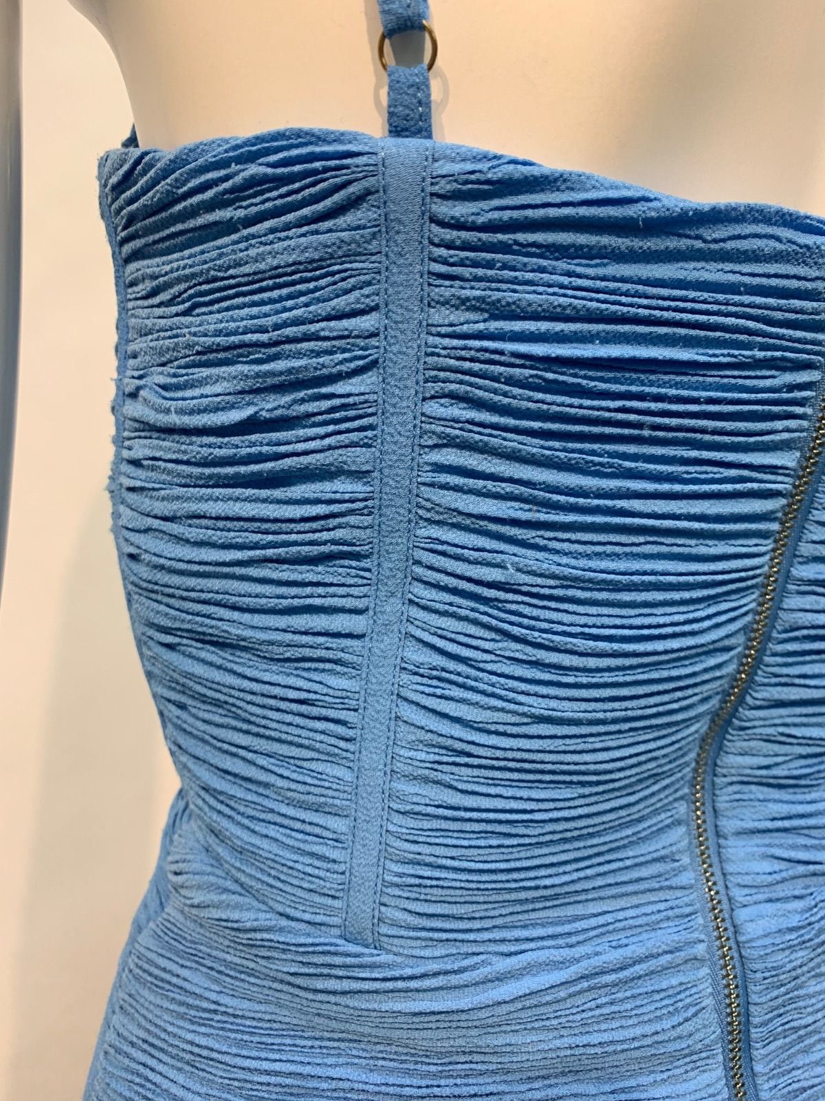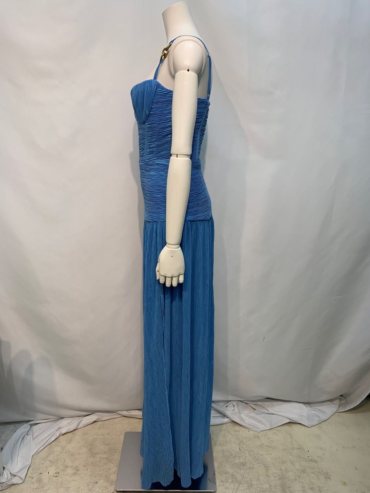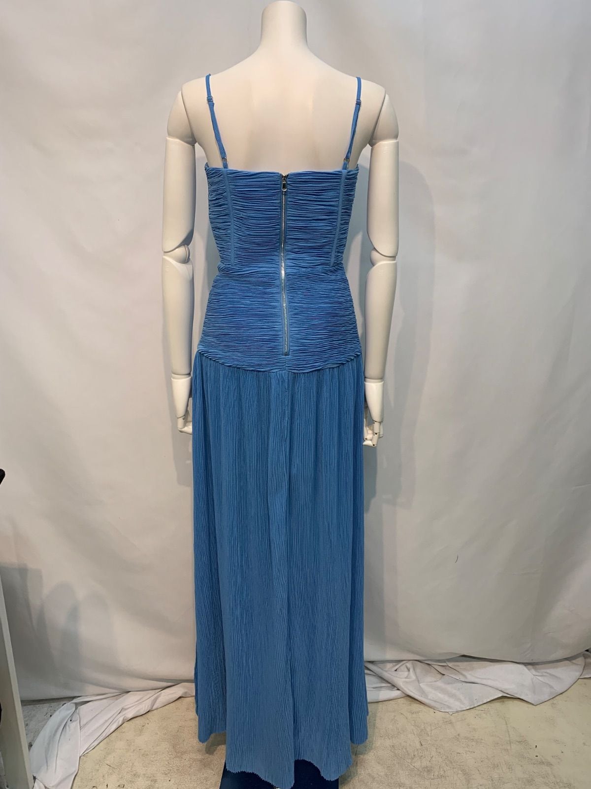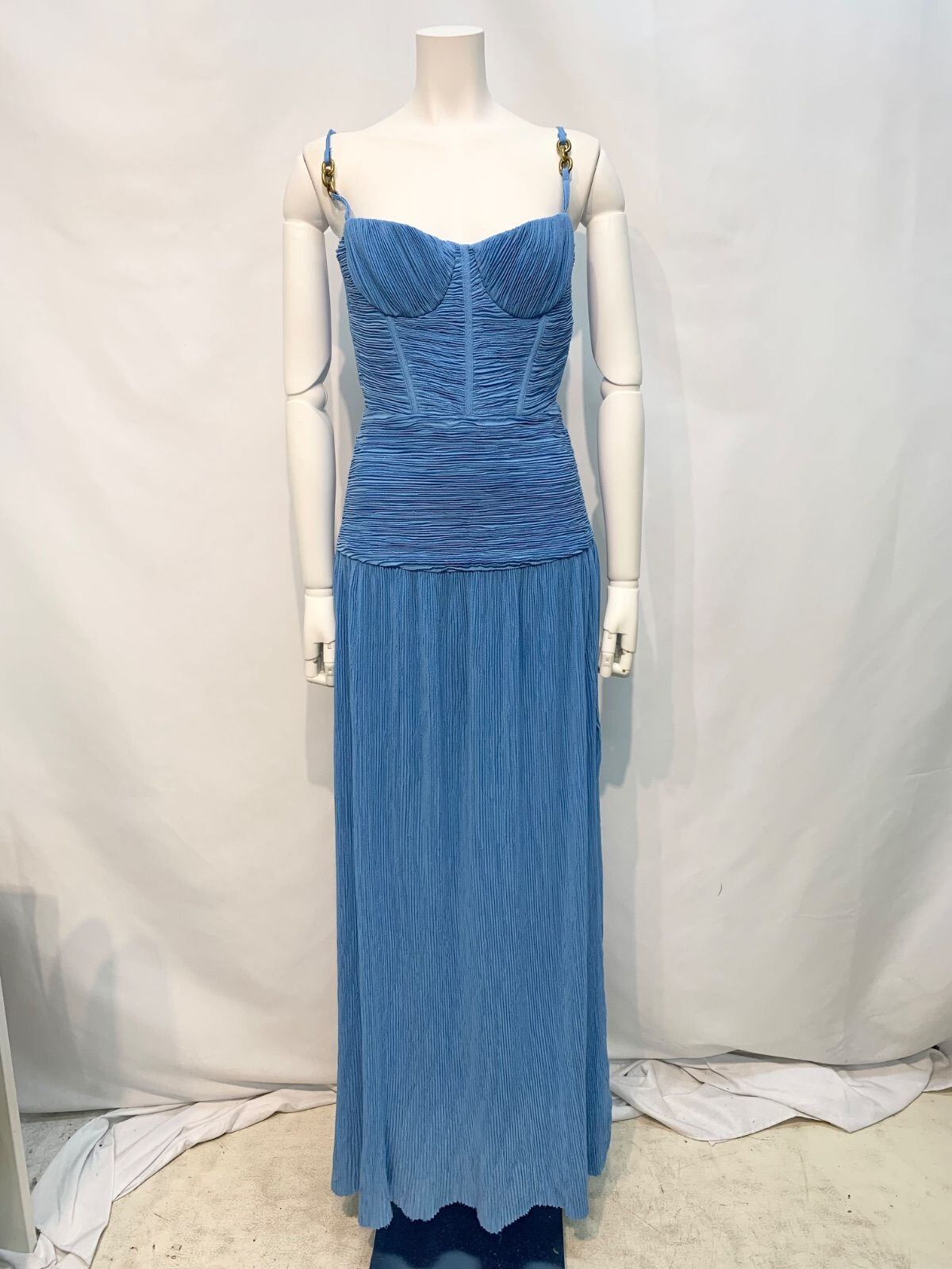 2049 MANNiNGCARTELL キャバクラ ドレス プリーツ スリット ブルー シルバー チャック ゴールド チェーン キャミドレス ロング キャバドレス 6サイズ