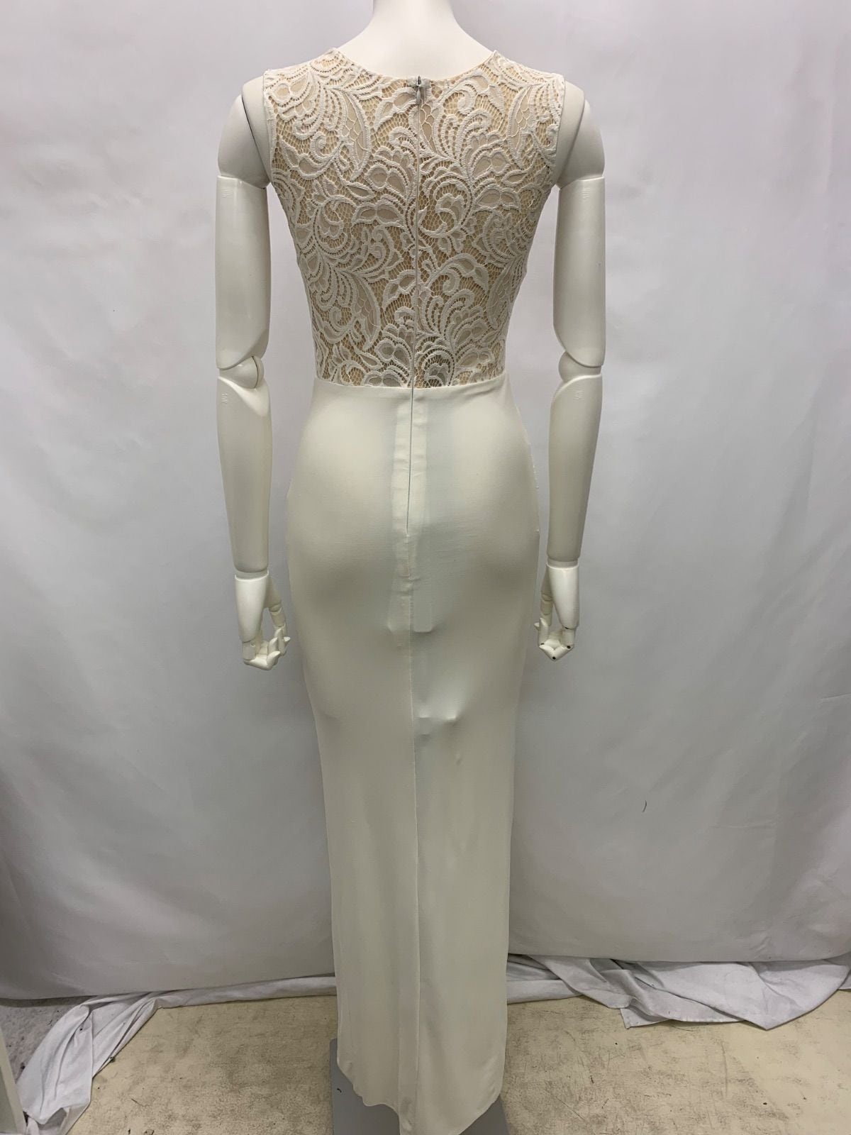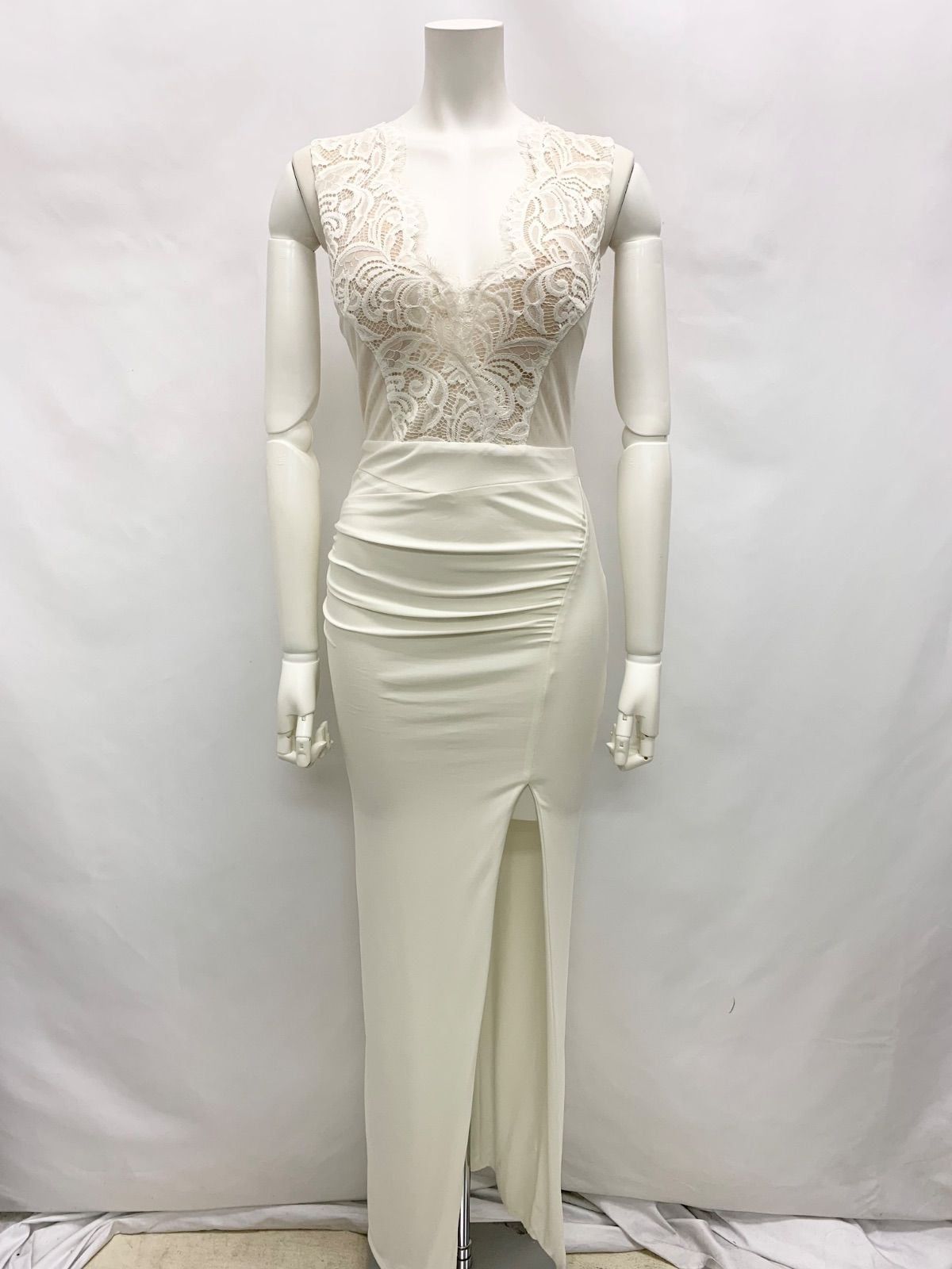 2061 immanuel キャバクラ ドレス スリット タイト ノースリーブ レース ウエストオープン クロシェ シースルー キャバドレス S