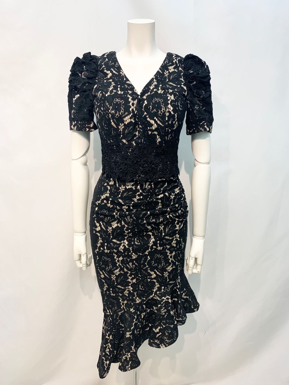 2078 VANESSA HEART ヴァネッサハート キャバクラ ドレス 総レース マーメイド アシンメトリー ミディ タイト キャバドレス S