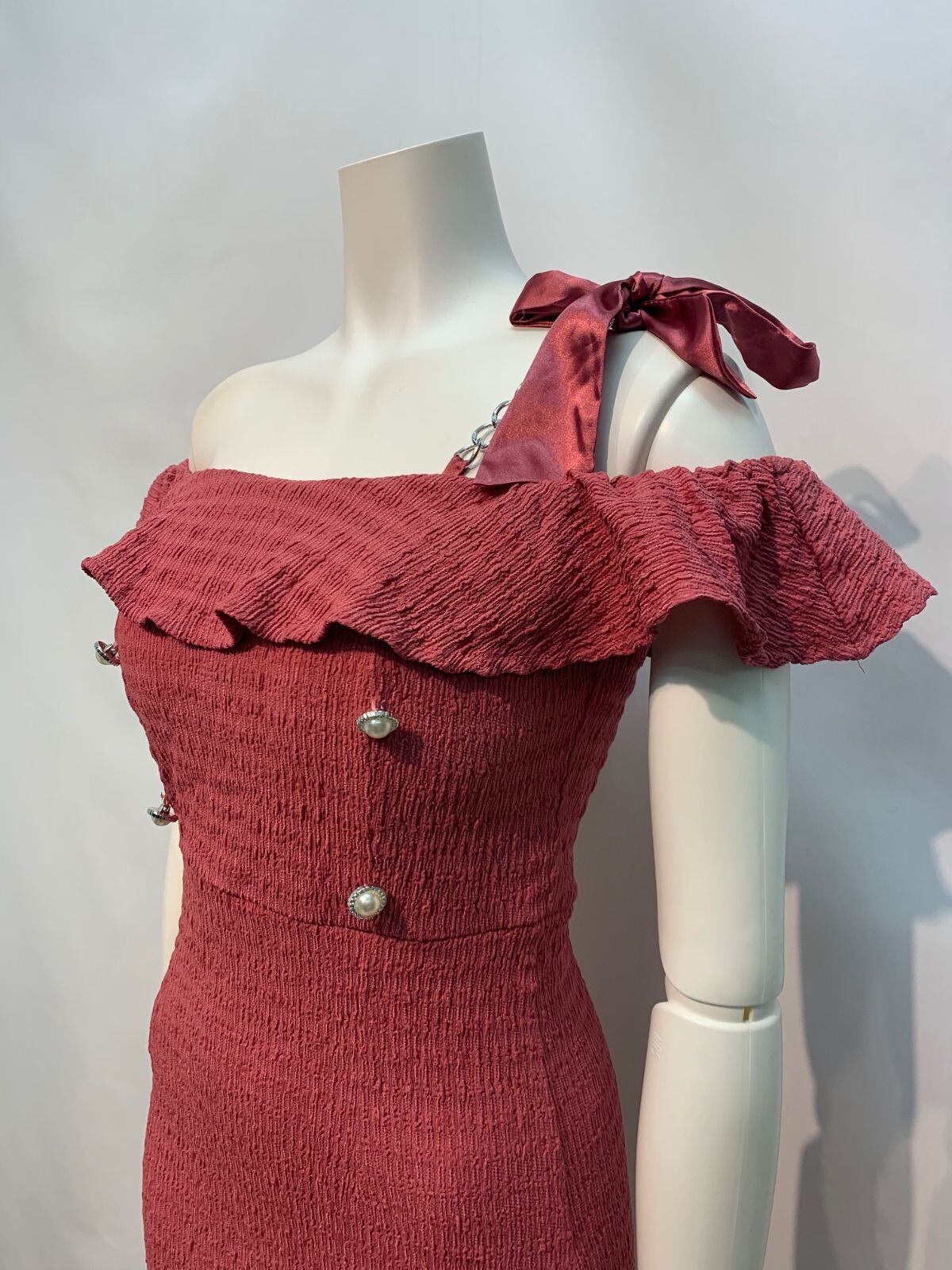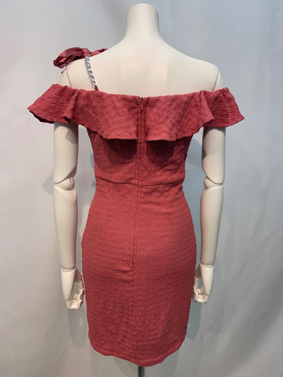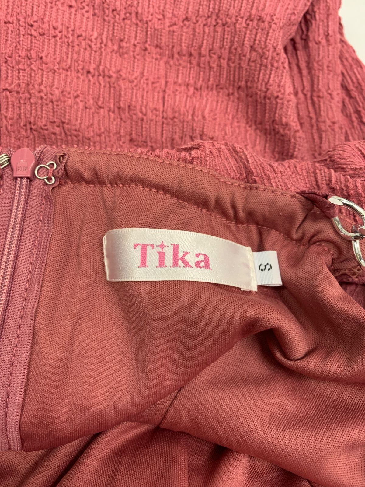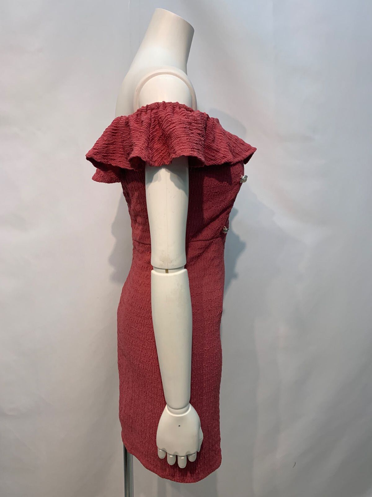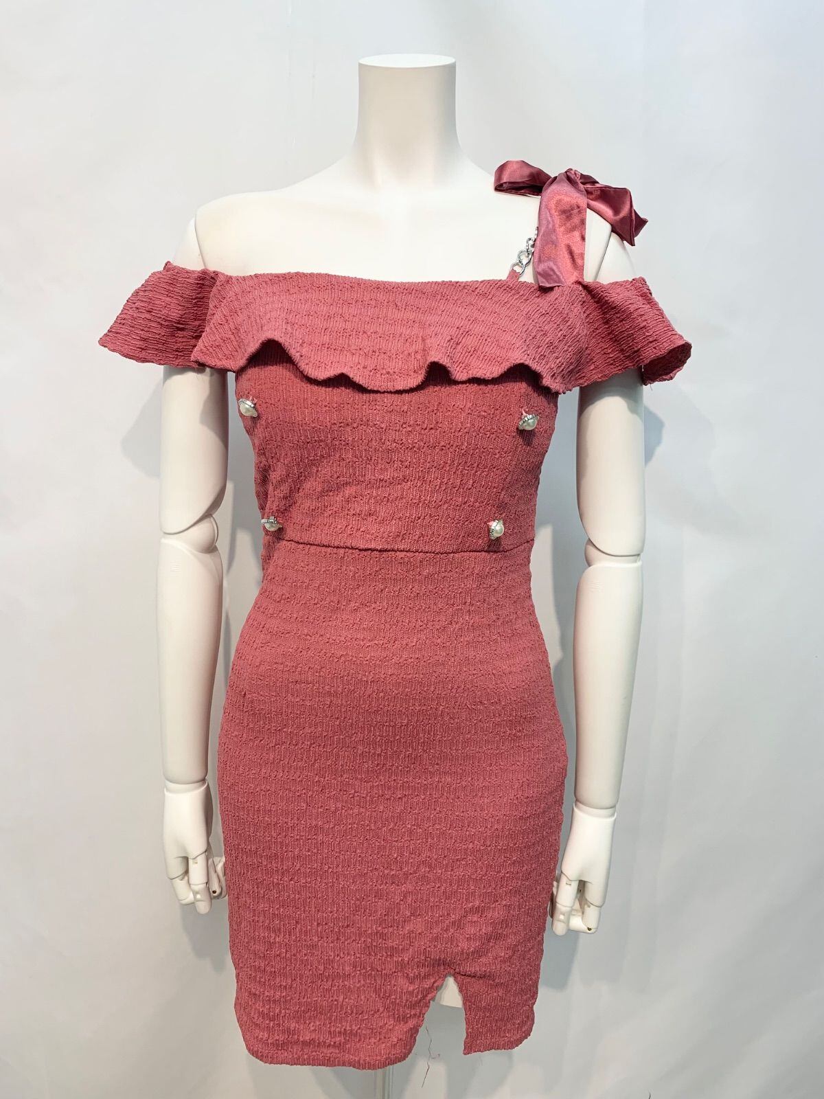 2083 Tika ティカ キャバクラ ドレス オフショル パール タイト ミニ フリル チェーン 伸縮性 キャバドレス S