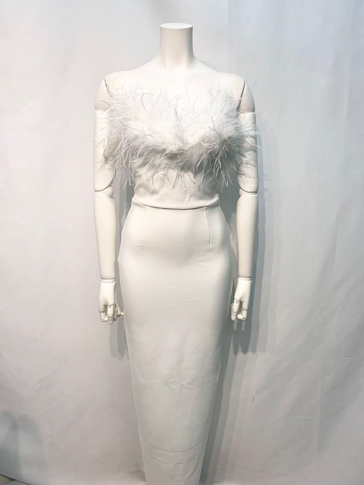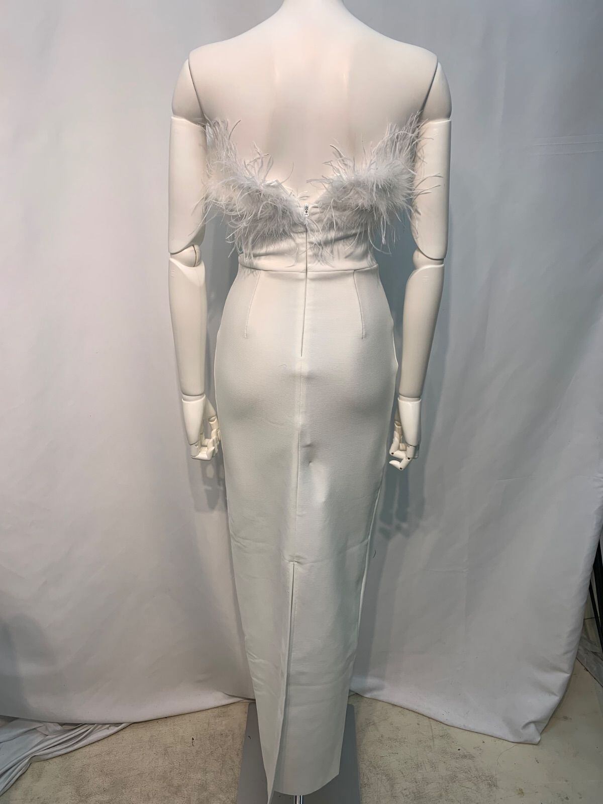 2101 キャバクラ ドレス ロング フェザー 伸縮性 チューブトップ スリット シンプル キャバドレス XS