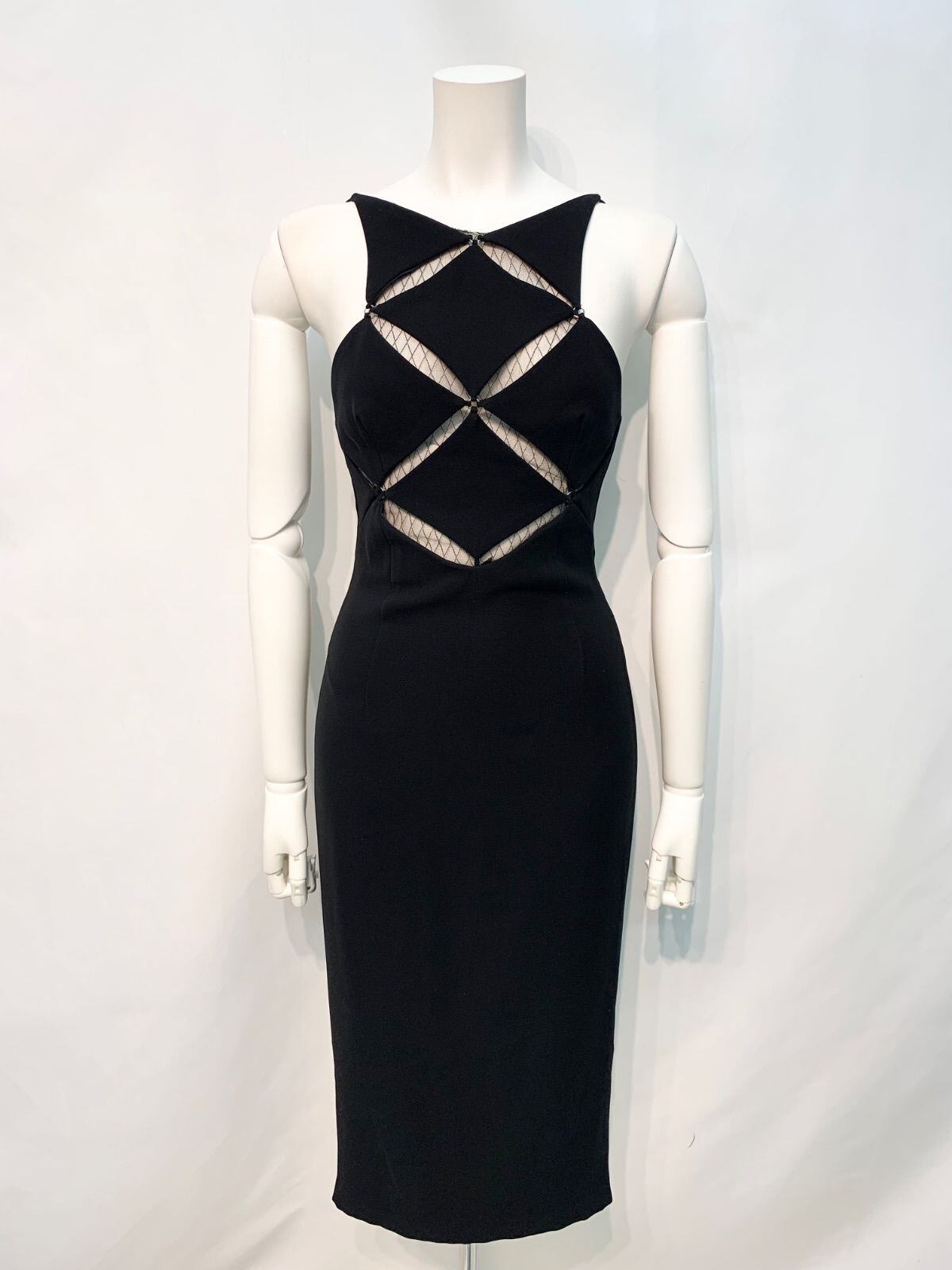 2113 ELPIS キャバクラ ドレス シースルー 伸縮性 ミディ タイト キャバドレス XS