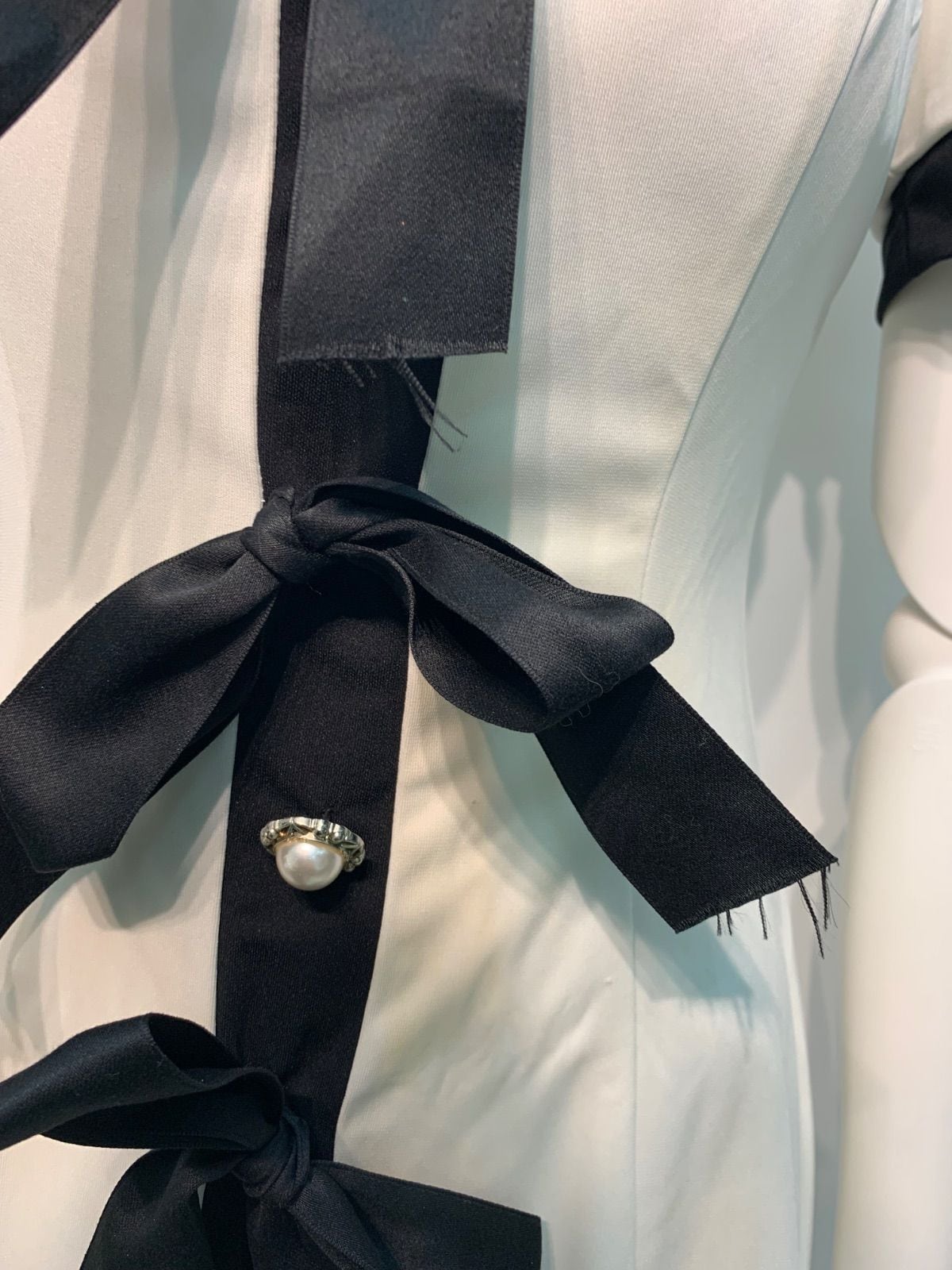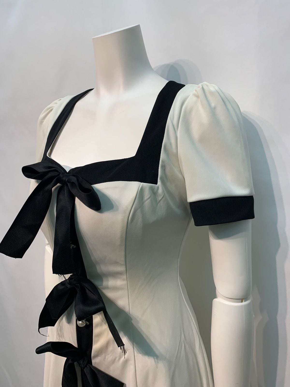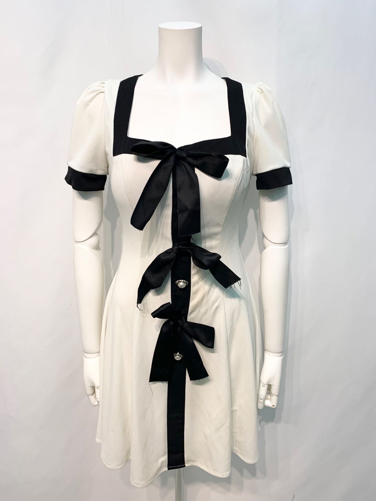 2118 Tika ティカ キャバクラ ドレス フレア リボン パール パイピング 伸縮性 キャバドレス S
