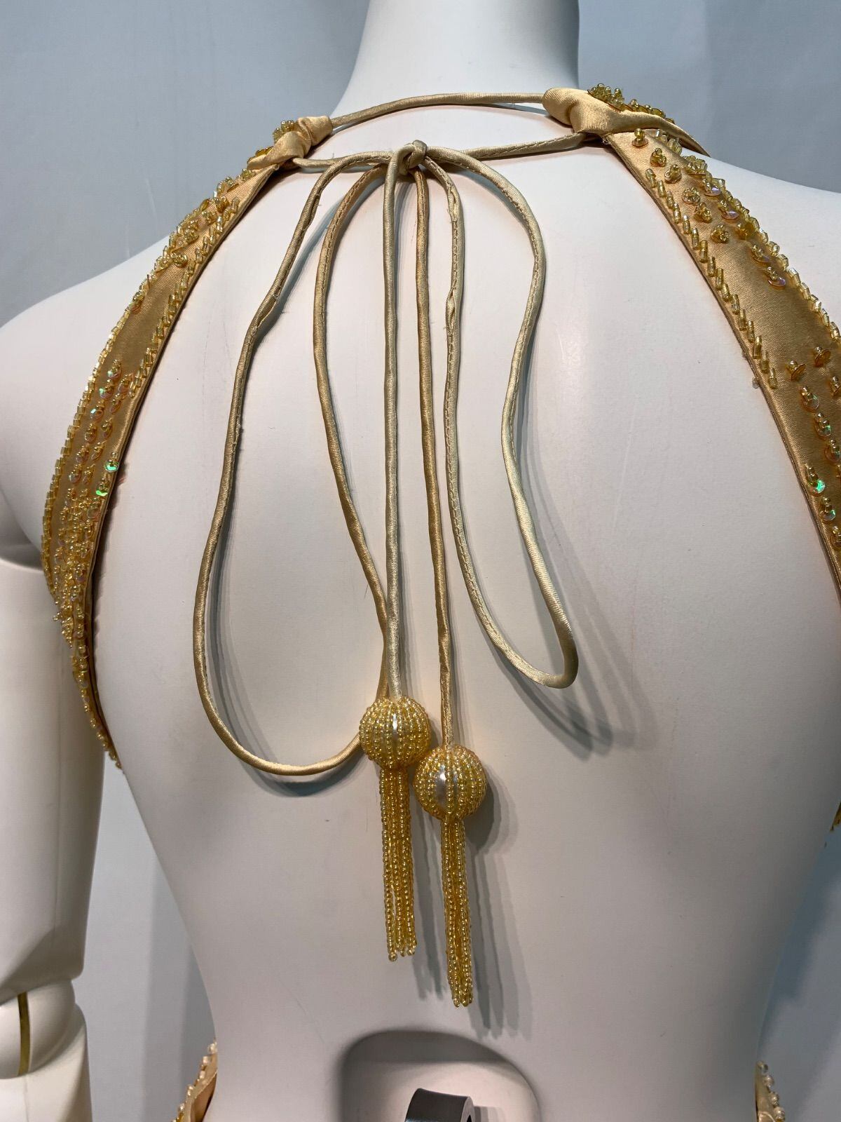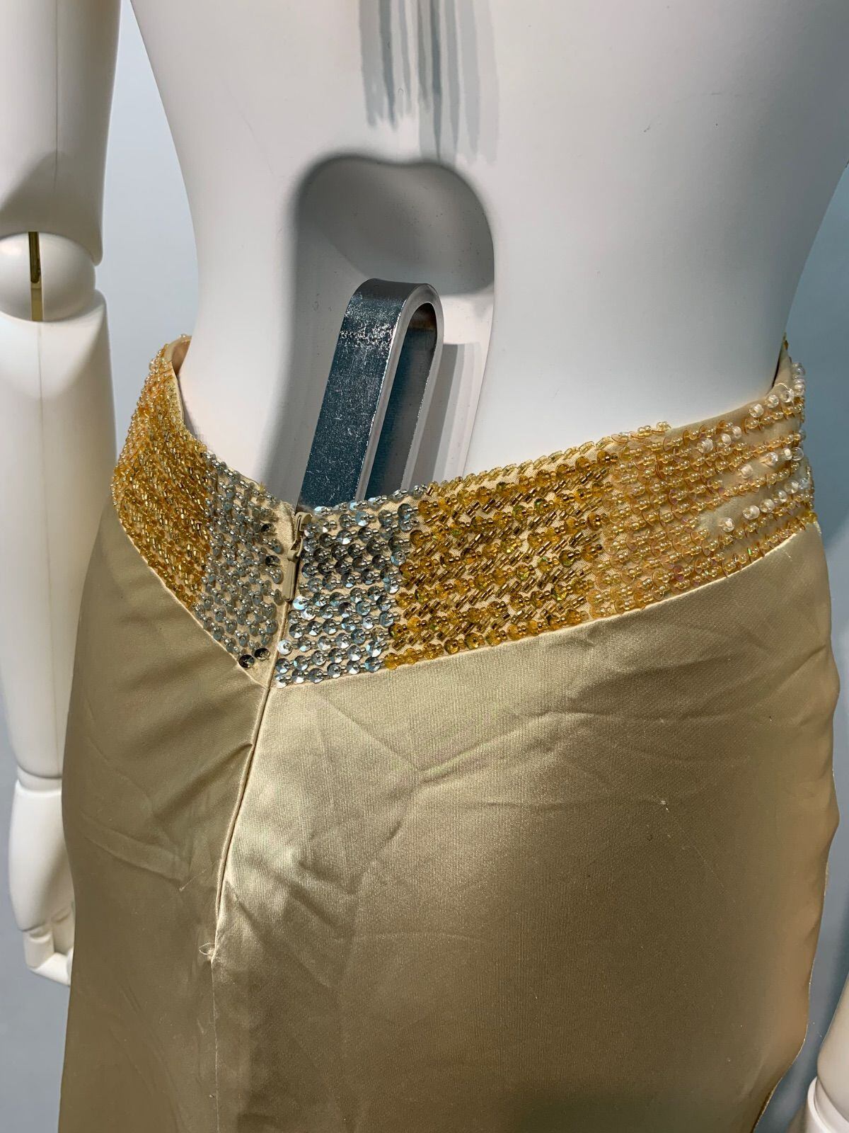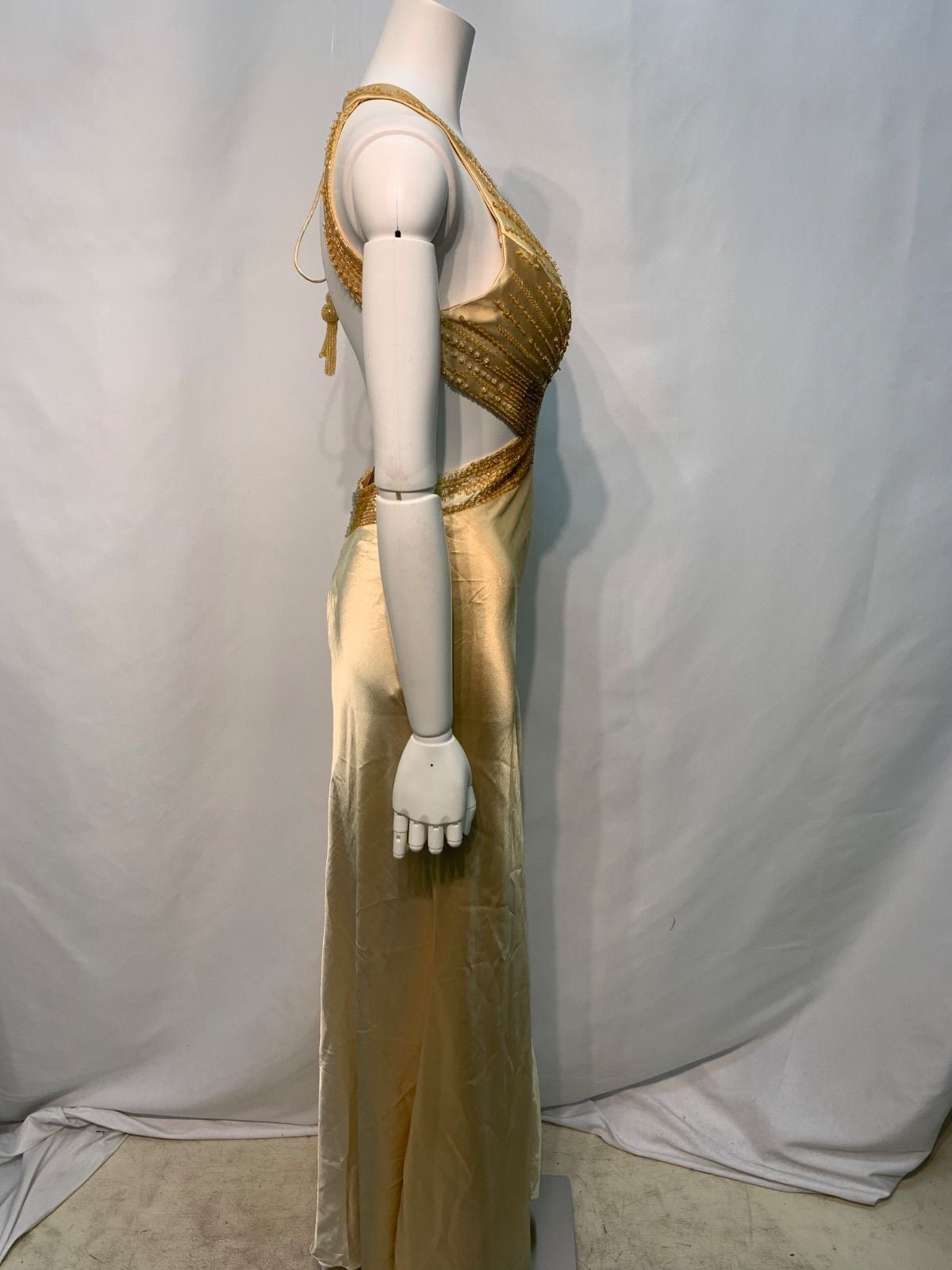 2133 IRMA イルマ キャバクラ ロングドレス サテン ホルターネック バックオープン ストーン ビーズ スパンコール スリット イベント キャバドレス M