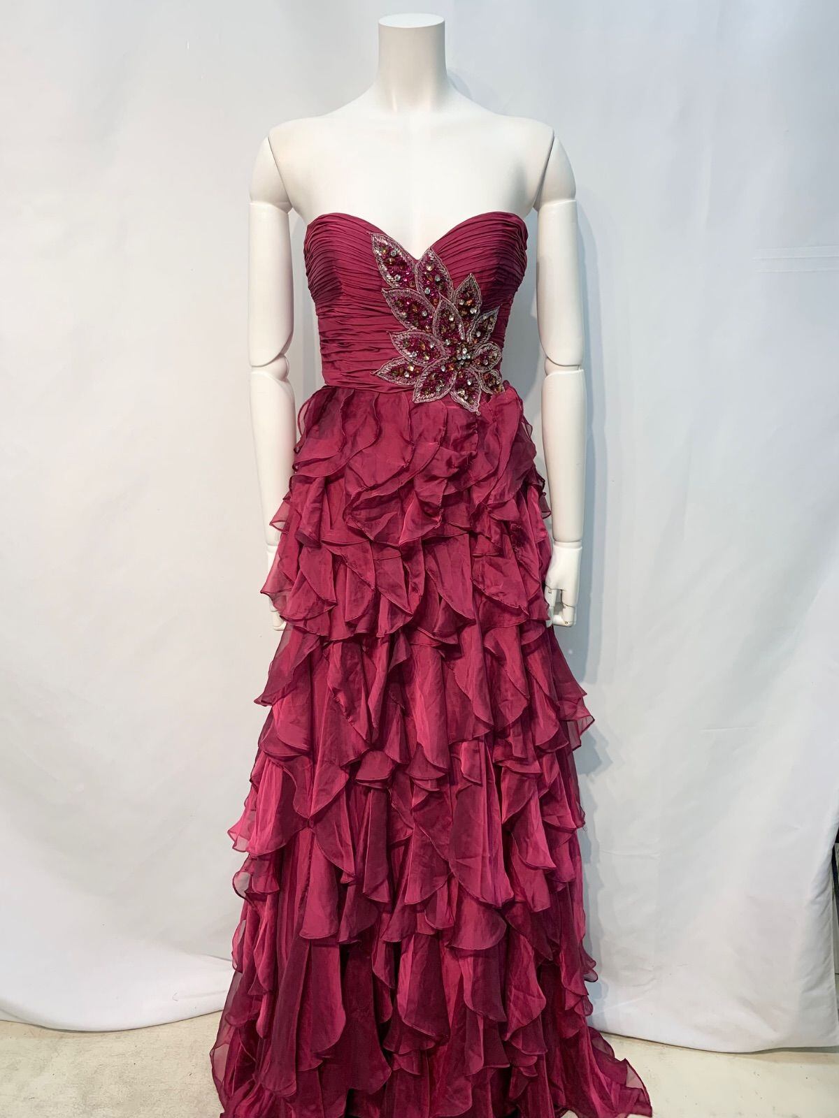 2152 キャバクラ ロングドレス フリル タイト ビジュー イベント バースデー キャバドレス XS