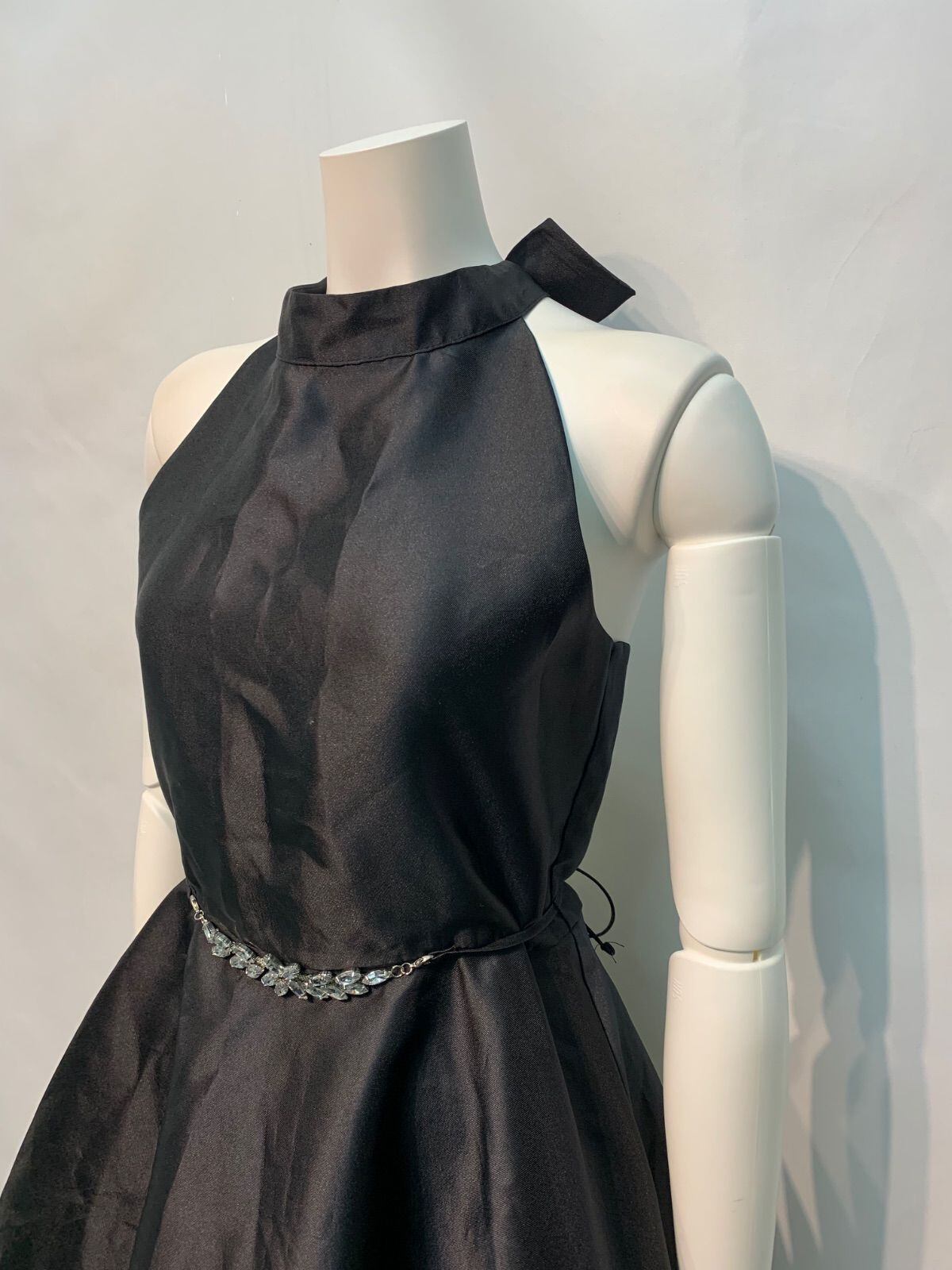 2168 ZUnie キャバクラ ドレス ミディ ホルターネック パックリボン ワンピース 光沢 ビジュー ストーン 二次会 パーティ イベント バースデー キャバドレス 16サイズ
