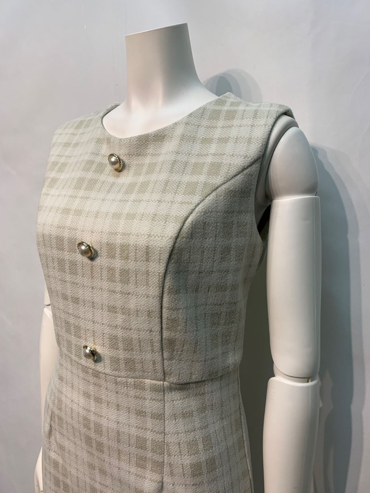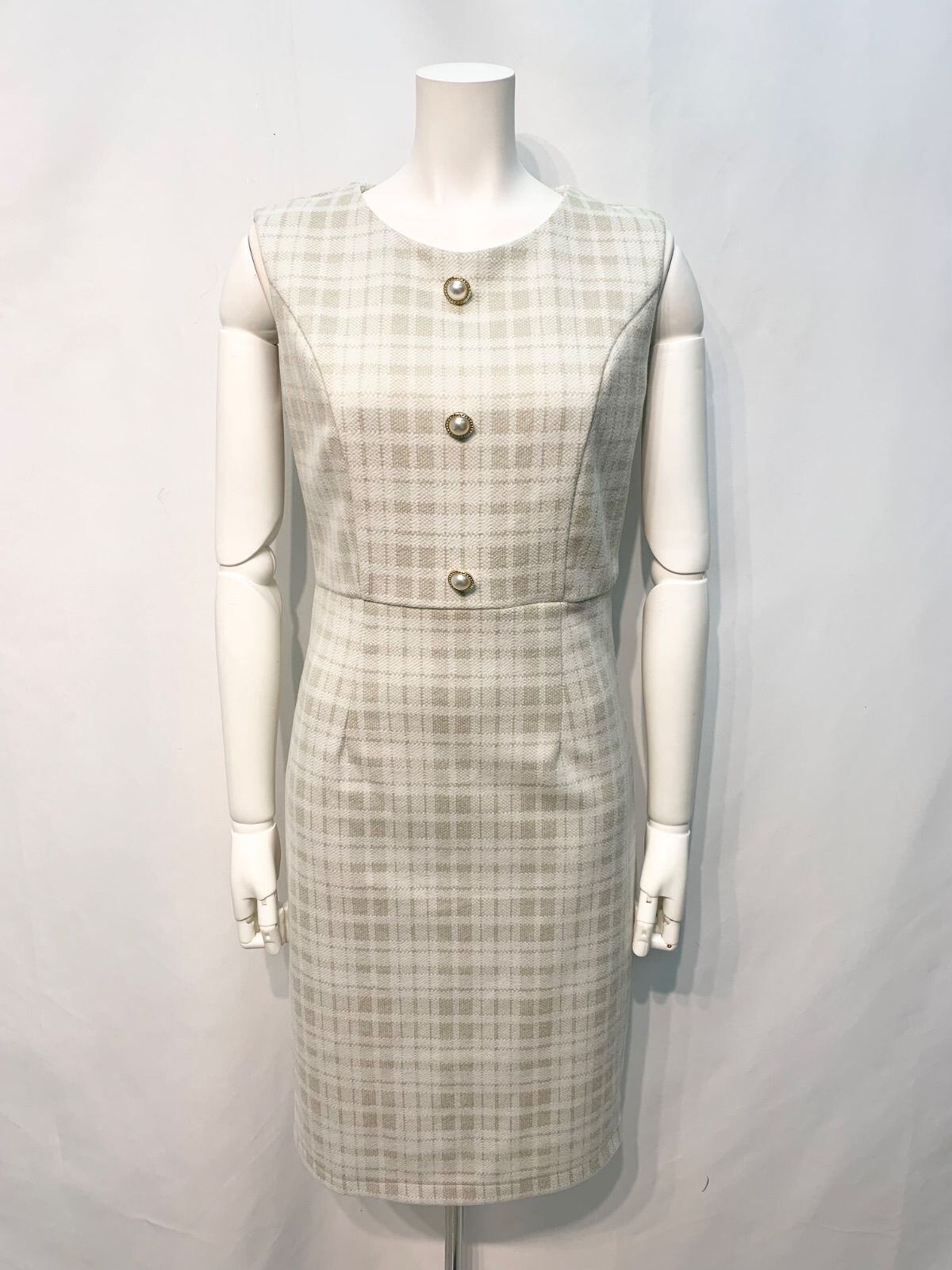 2182 JEWELS ジュエルズ キャバクラ ドレス ミディ ワンピース ノースリーブ チェック フリース キャバドレス M