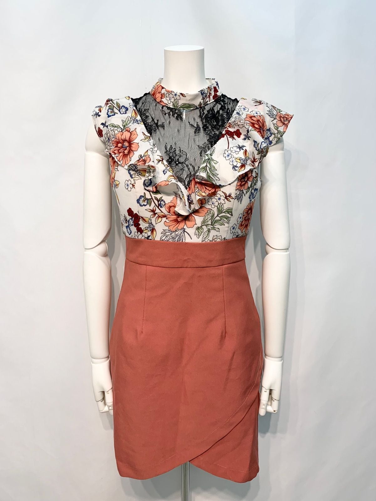 2184 JEWELS ジュエルズ キャバクラ ドレス ミニ ノースリーブ 花柄 シースルー 二次会 パーティー キャバドレス M