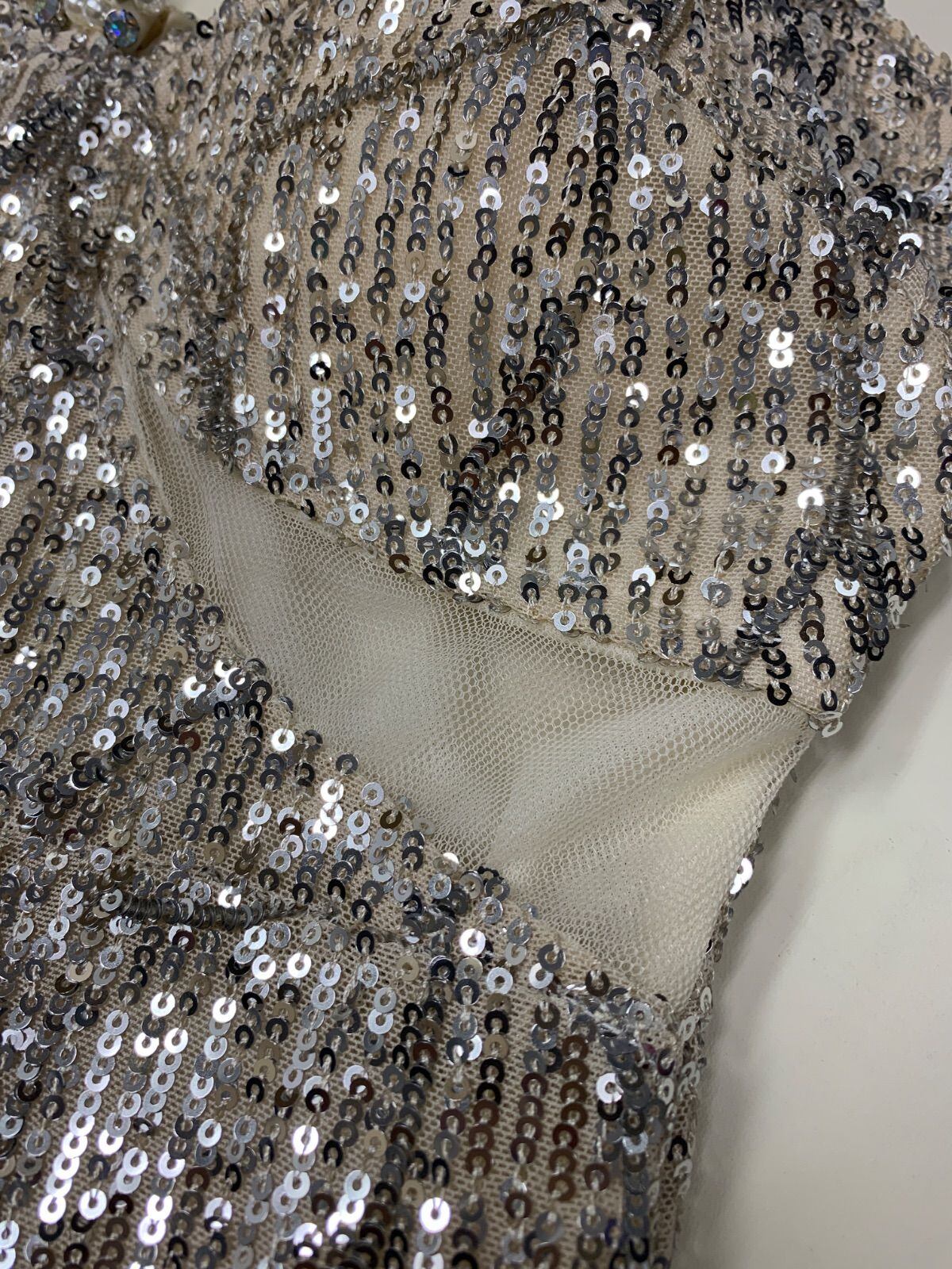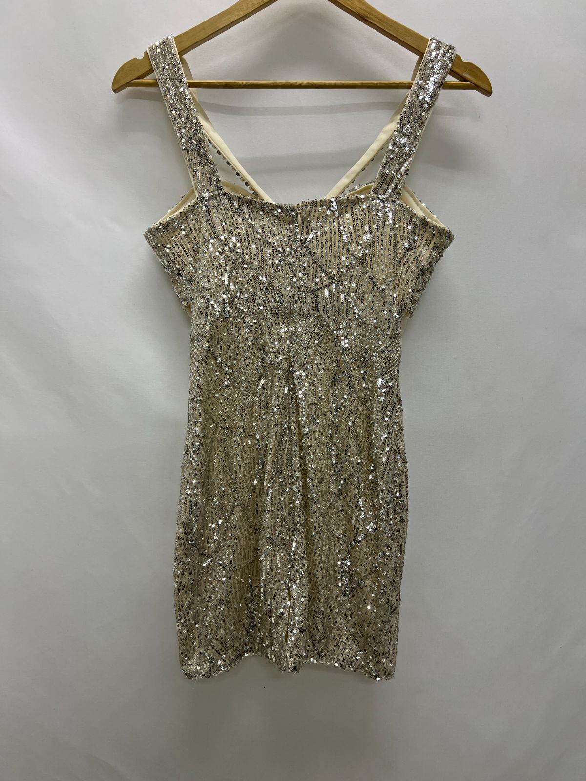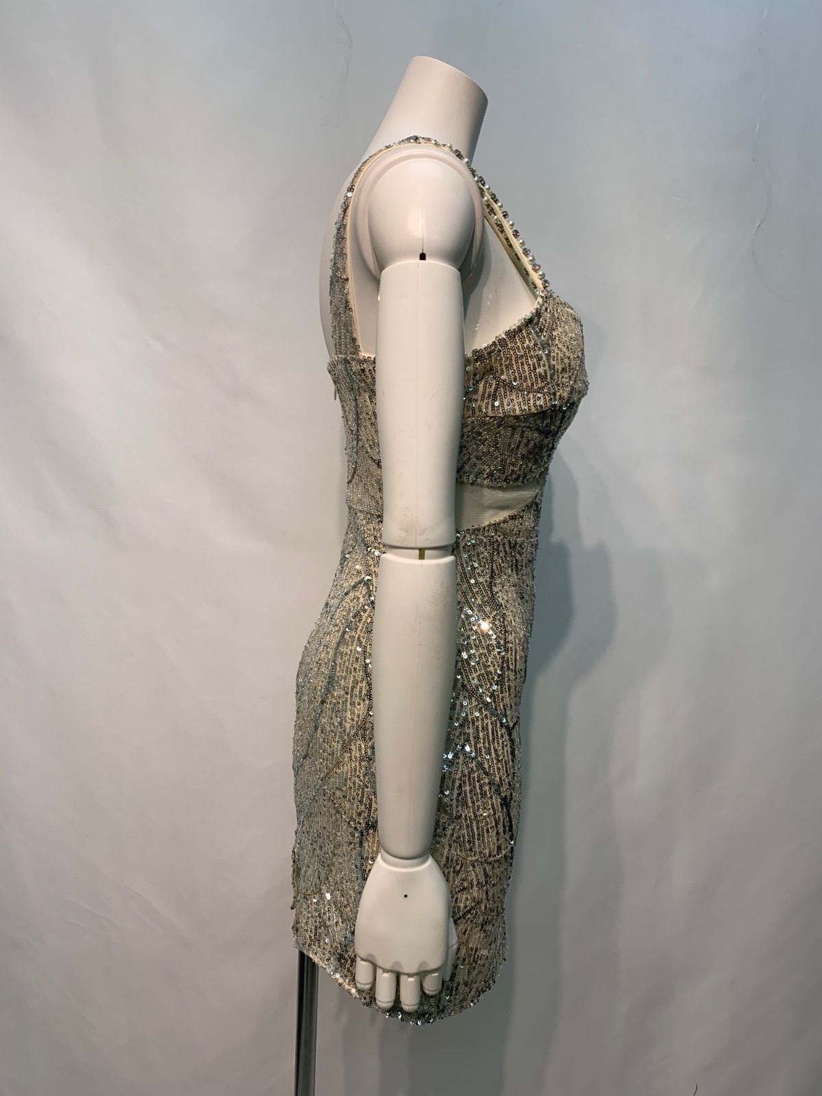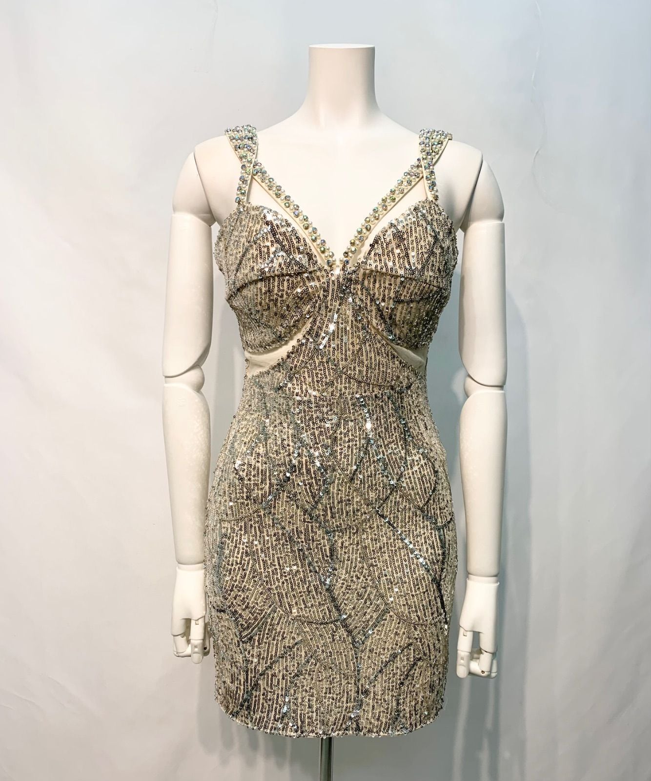 2199 Tika ティカ キャバクラ ドレス ミニ キャミ タイト シースルー ストレッチ スパンコール キャバドレス M