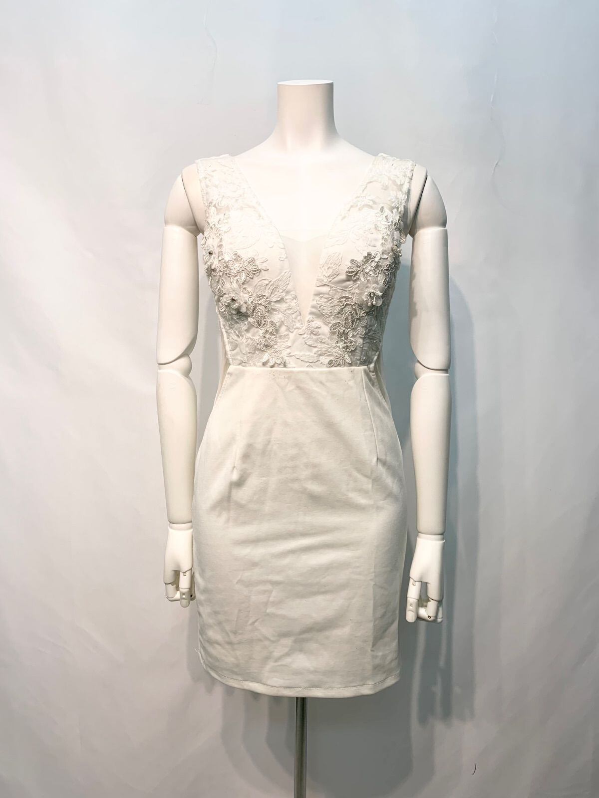 2200 DAZZY デイジー キャバクラ ドレス ミニ ノースリーブ サイドスリット シースルー ストレッチ キャバドレス S