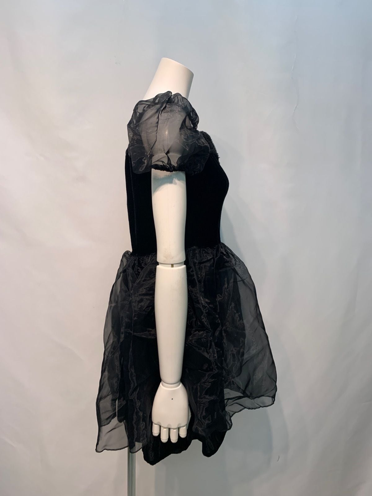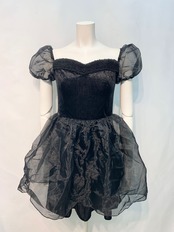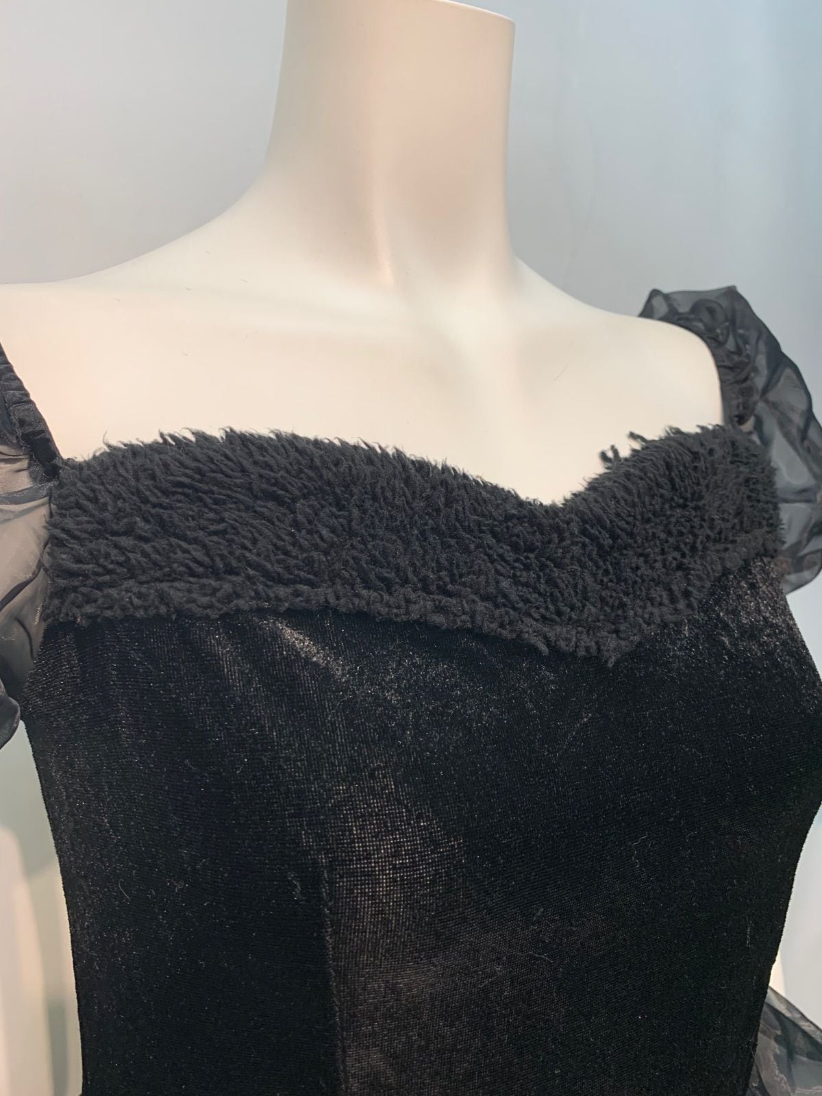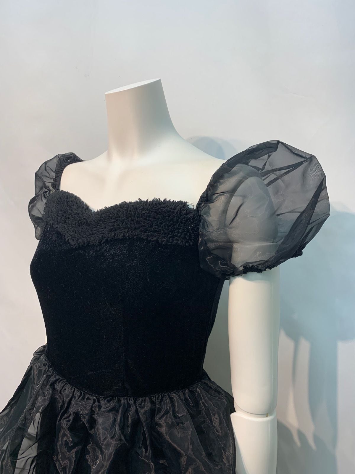 2205 キャバクラ ドレス ベロア ボア フレア ミニ コスプレ イベント パフスリーブ シアー キャバドレス