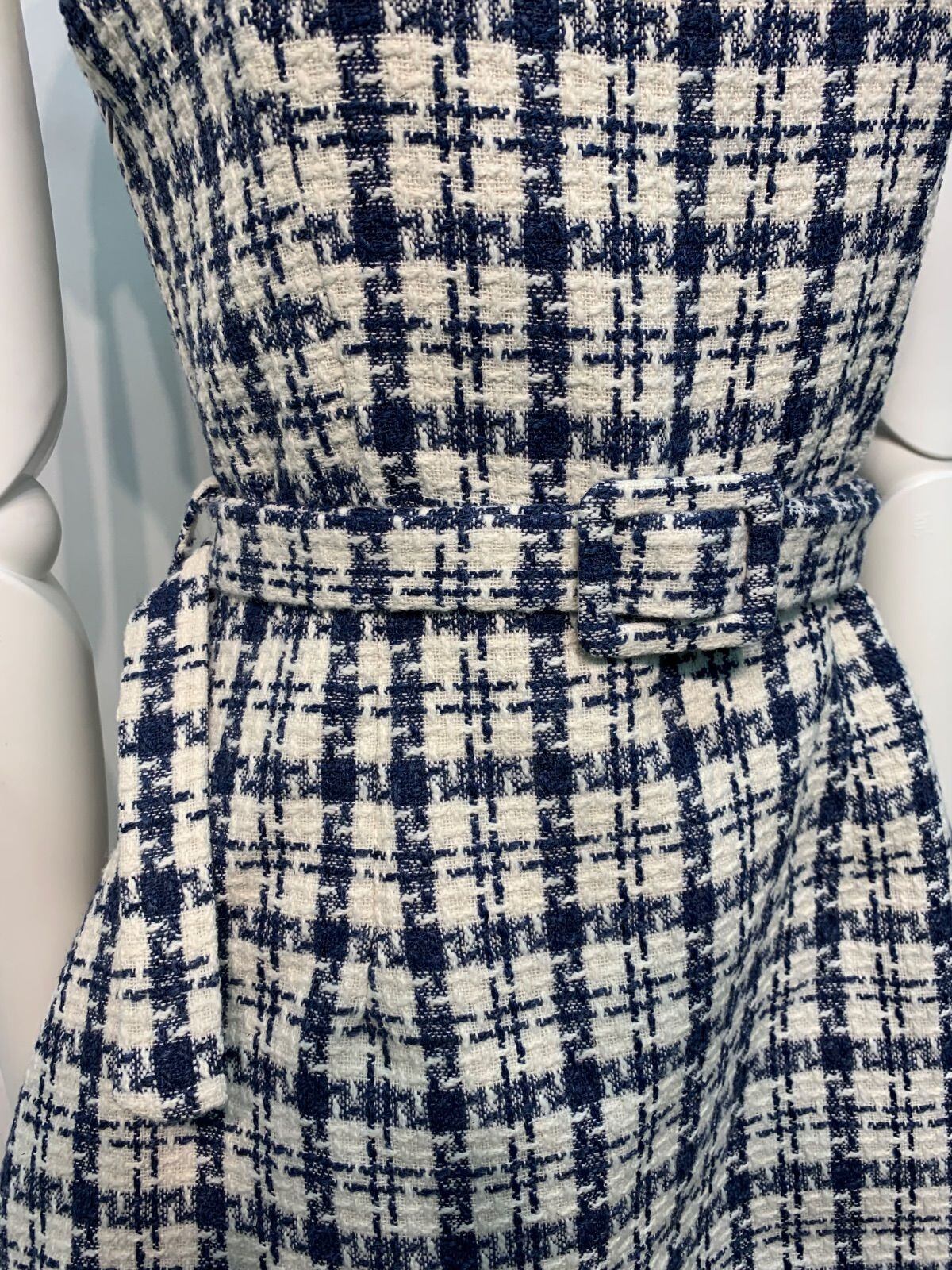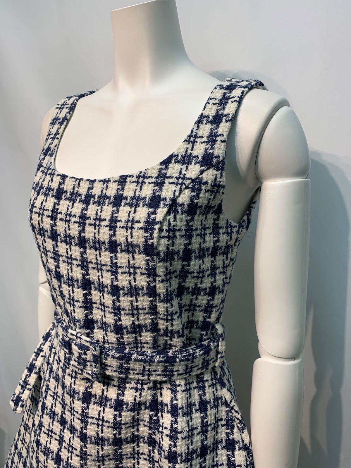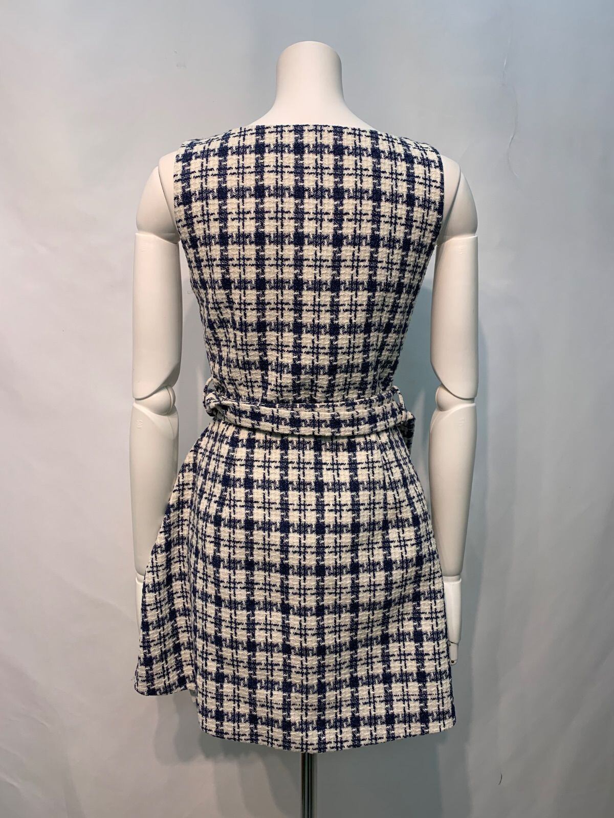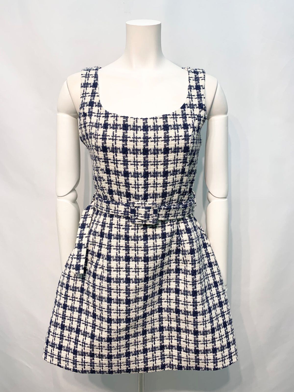2212 キャバクラ ドレス ツイード チェック ウエストベルト フレア ミニ ノースリーブ タイト キャバドレス S