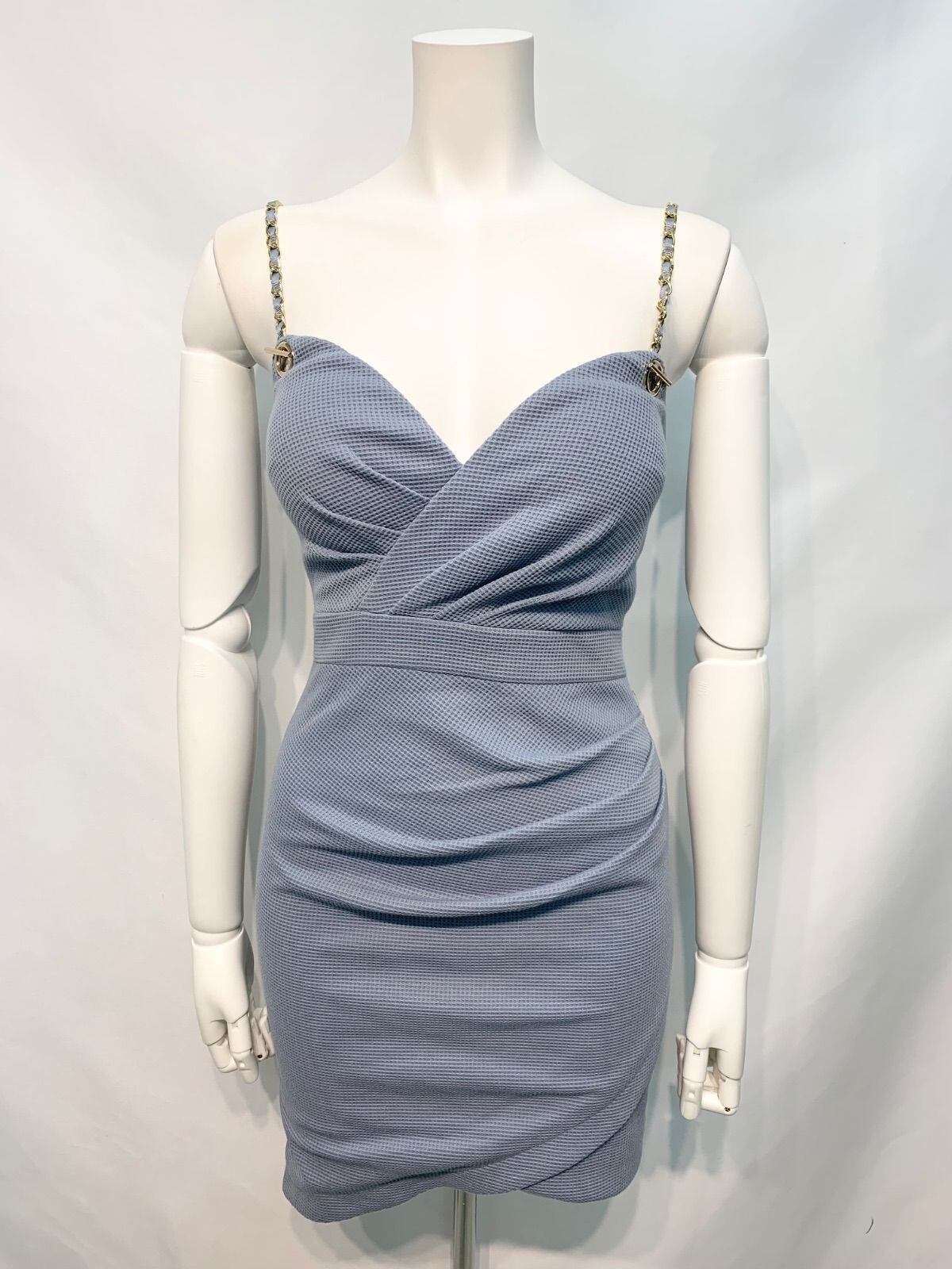 2282 タグ付き JEWELS ジュエルズ キャバクラ ドレス ワッフル タイト 伸縮性 ミニ チェーンストラップ キャバドレス S