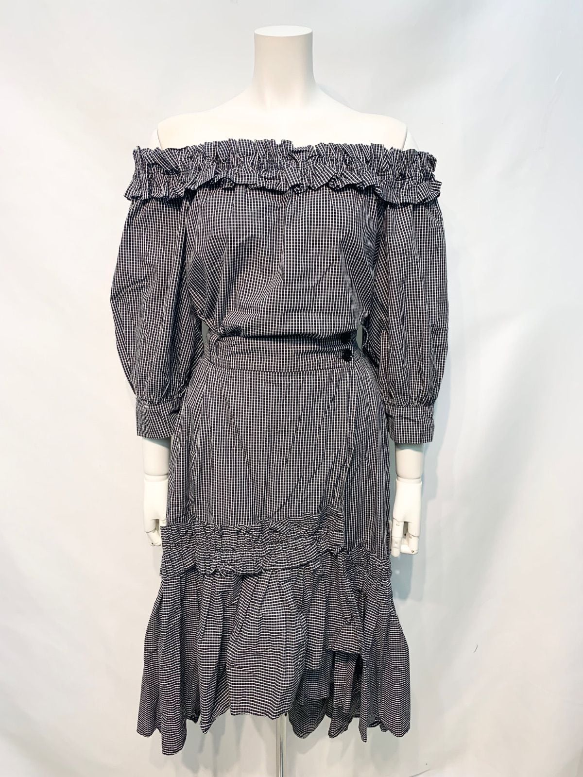 2278 ANNARITA N TWENTY 4H アンナリタ エンネ ギンガムチェック セットアップ オフショル スカート アシンメトリー フリル