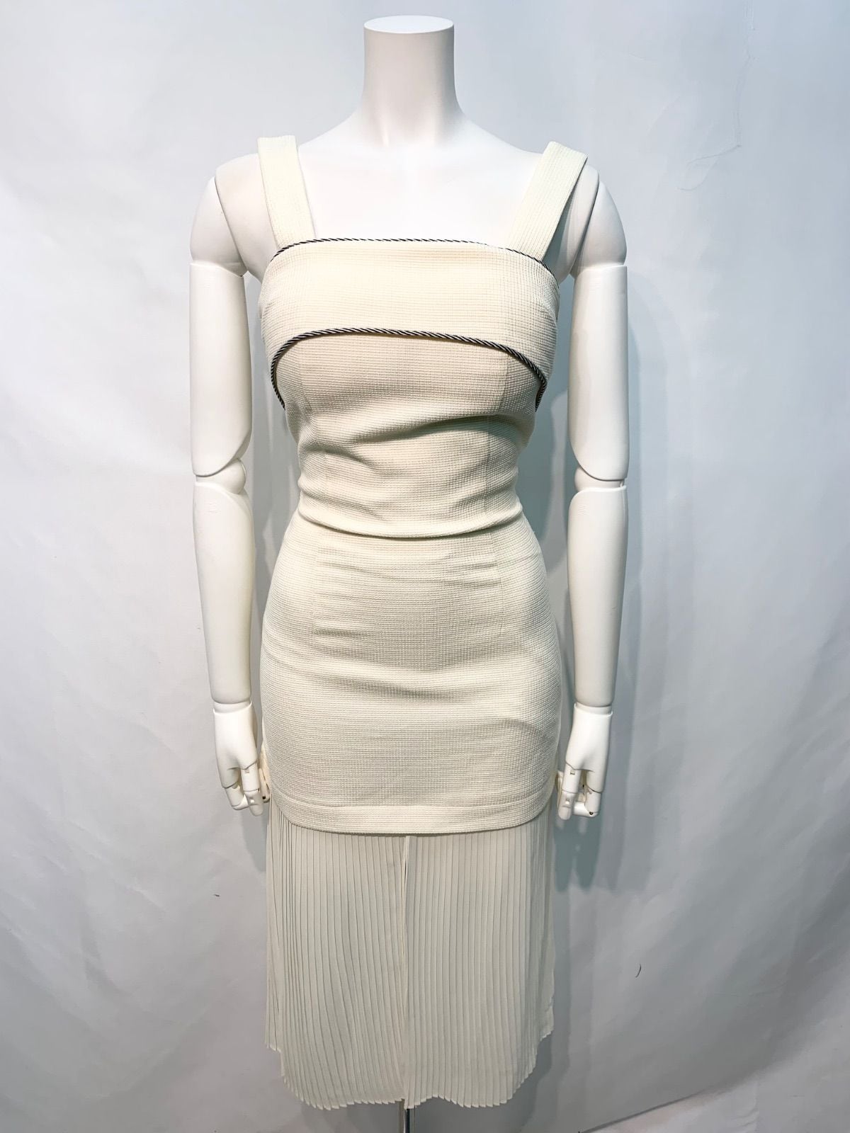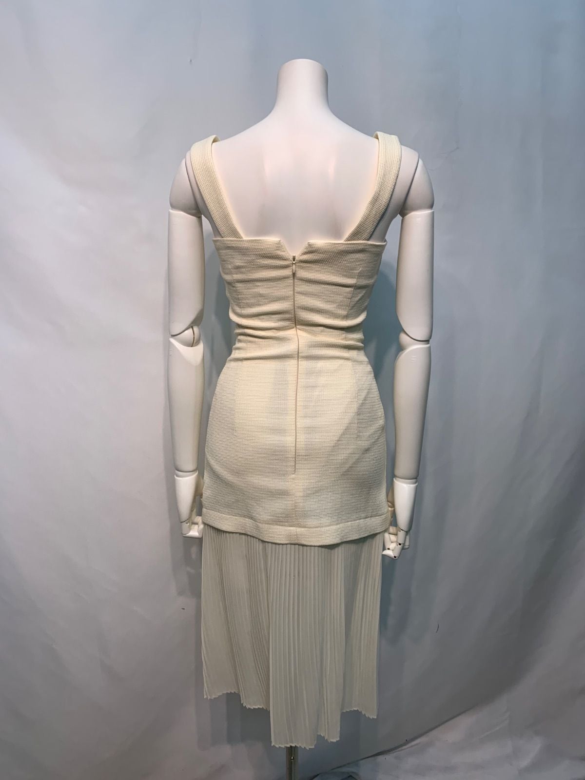 2269 キャバクラ ドレス ツイード タイト ラメ シフォン プリーツ ミディ スリット キャバドレス S