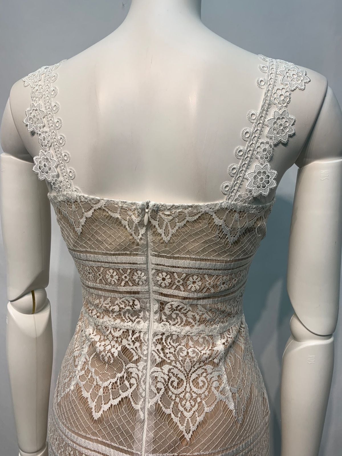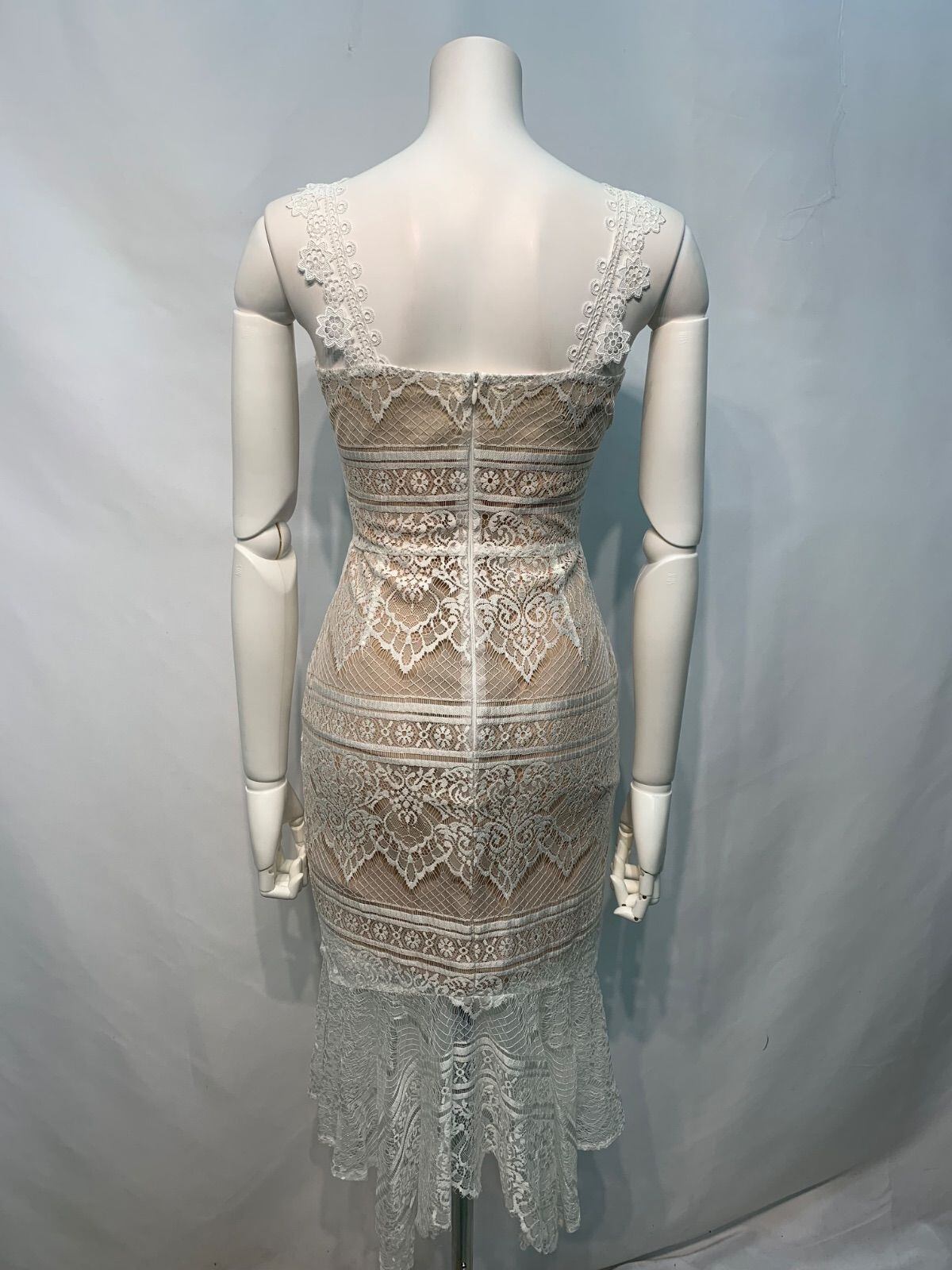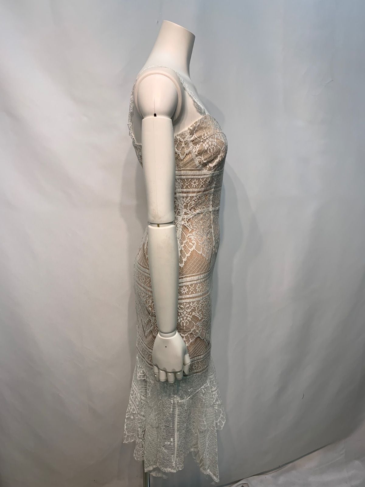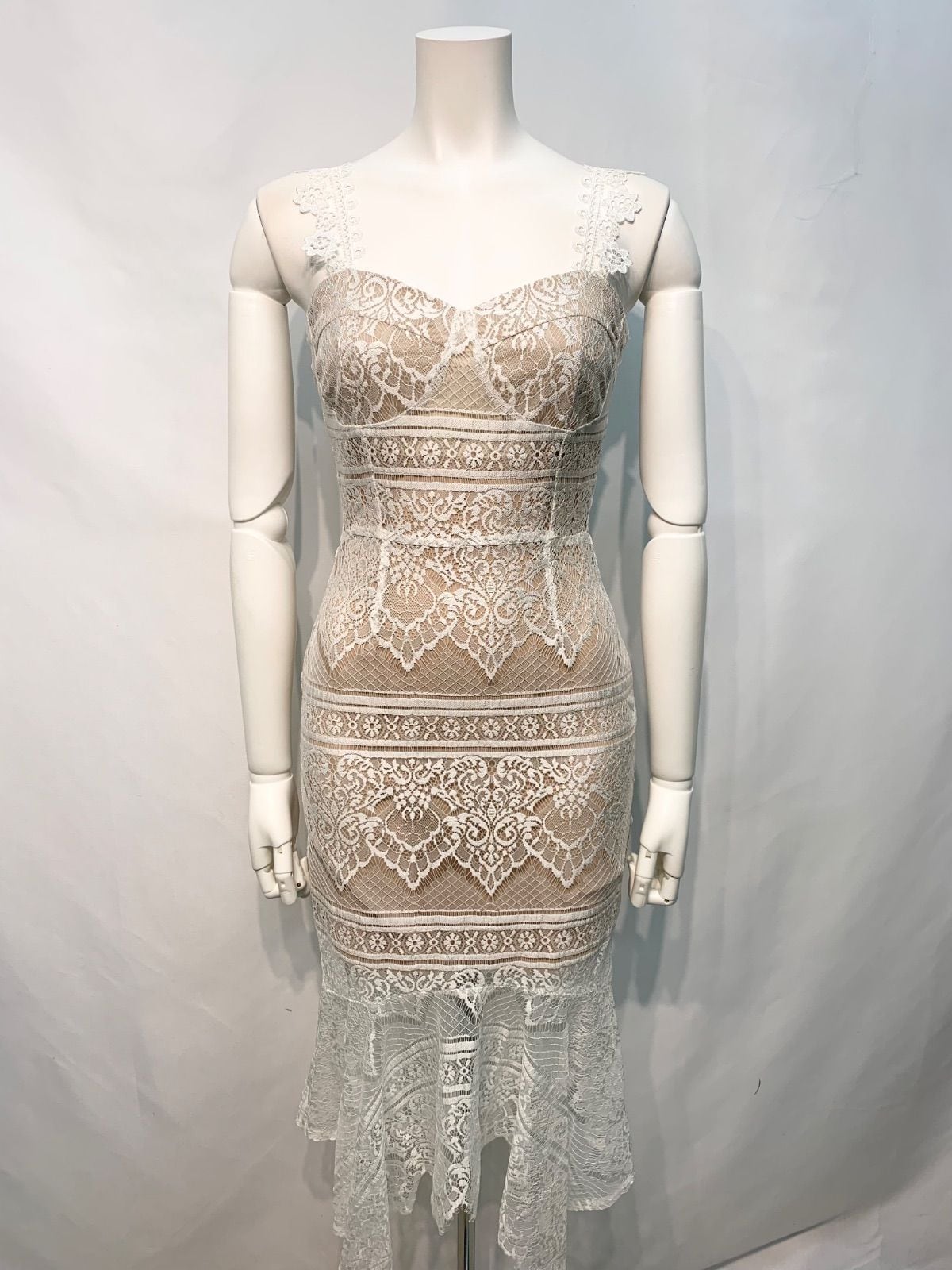 2263 キャバクラ ドレス 総レース タイト ミディ マーメイド スリット キャバドレス M