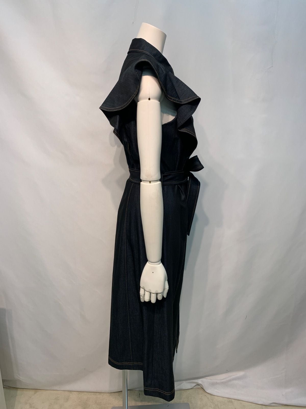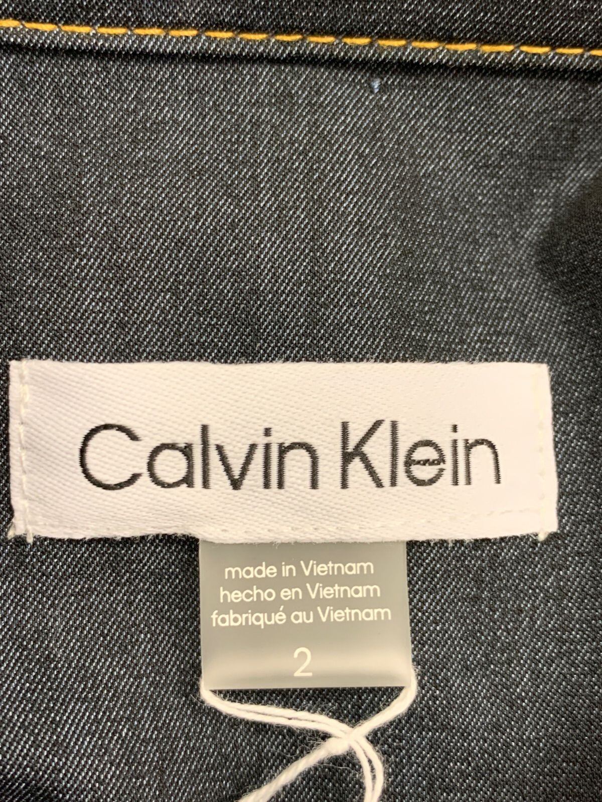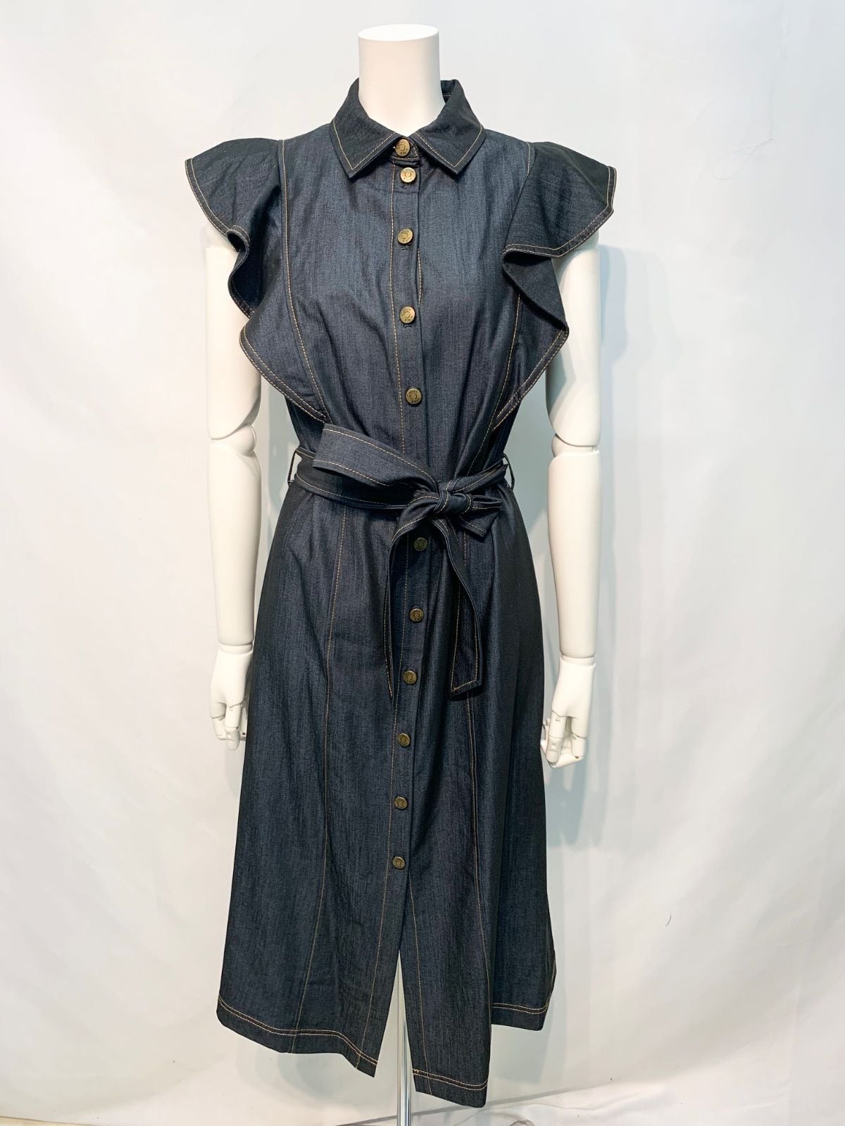 2260 Ck Calvin Klein カルバン・クライン デニム風 ノースリーブ シャツワンピース フリル ロング ウエストリボン インディゴ キャバドレス 2サイズ