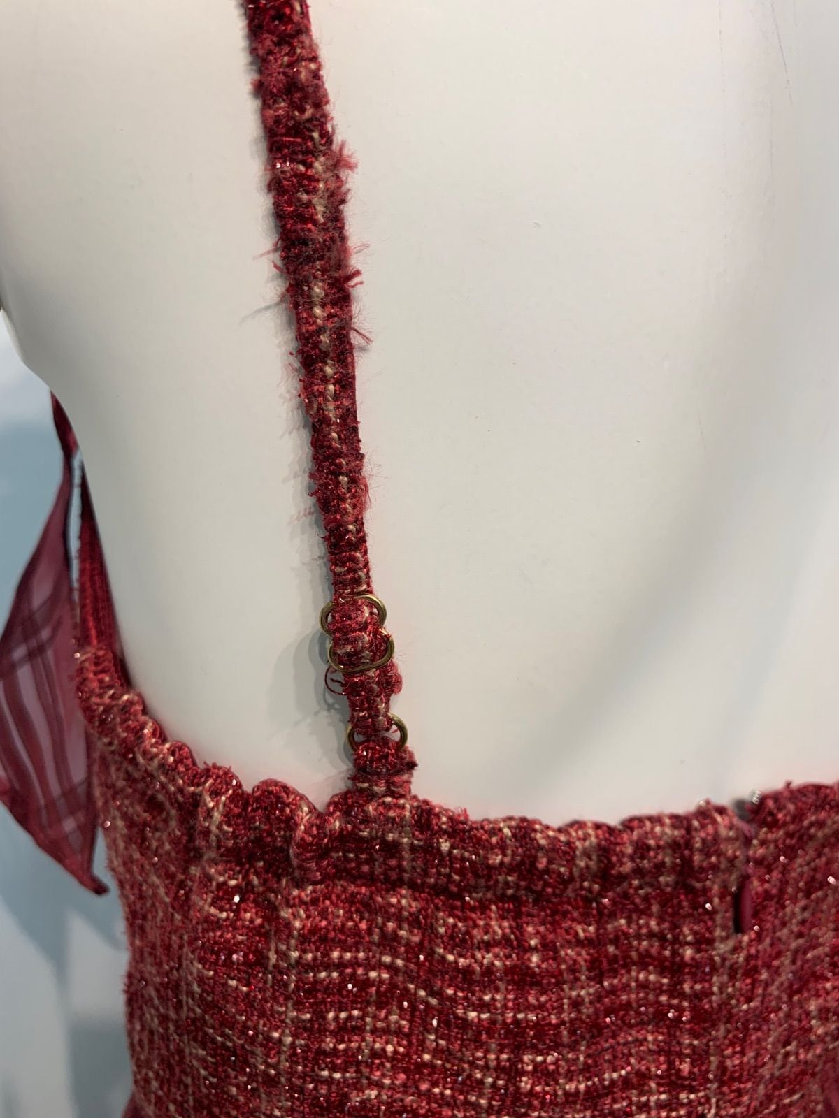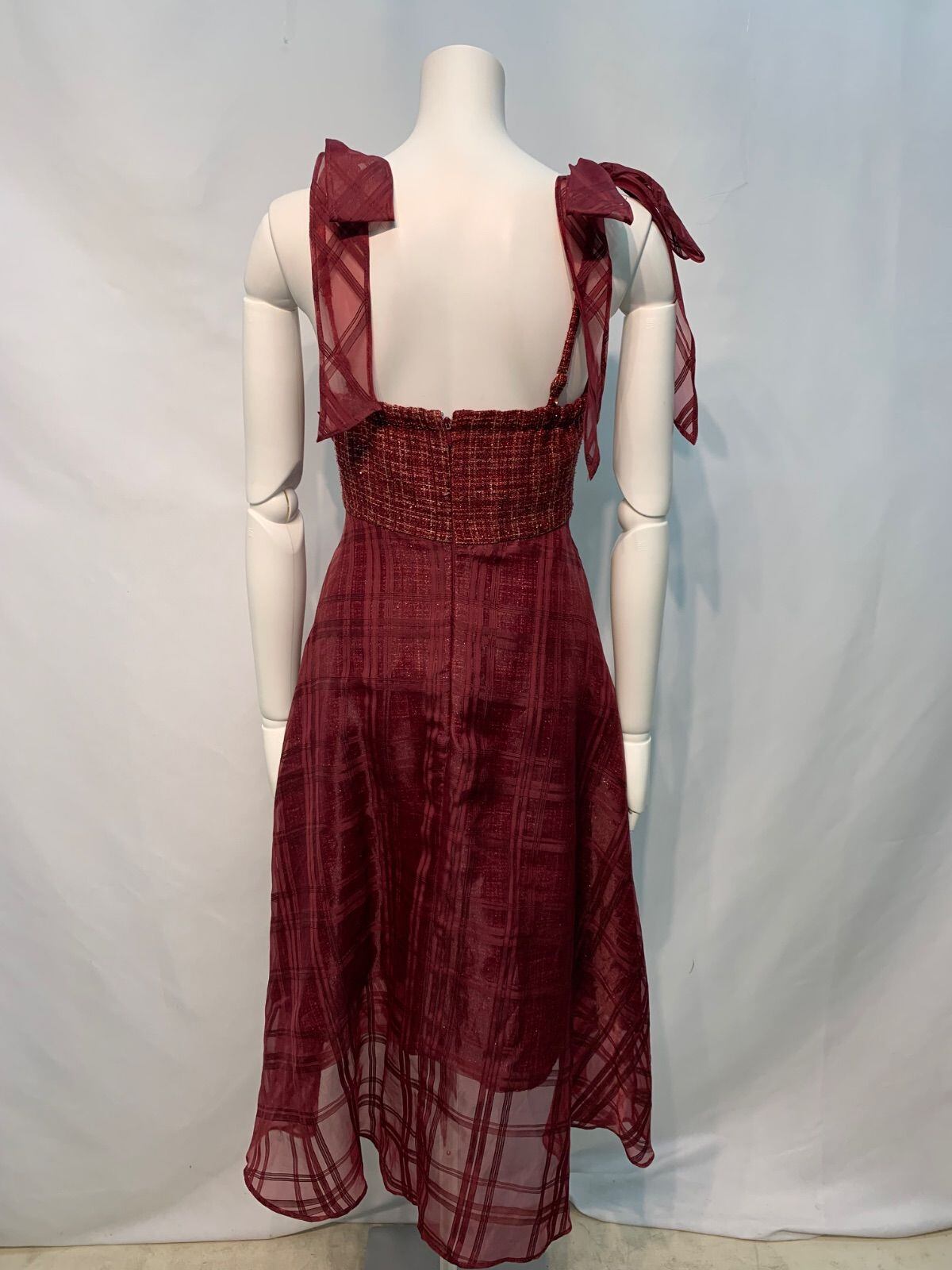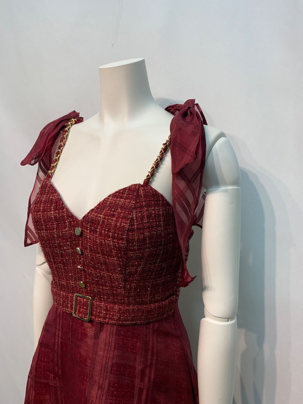 2258 DEA by ROBE de FLEURS ディアバイローブドフルール キャバクラ ドレス ラメツイード チェックオーガンジー ロング ストラップリボン チュール キラキラ キャバドレス S